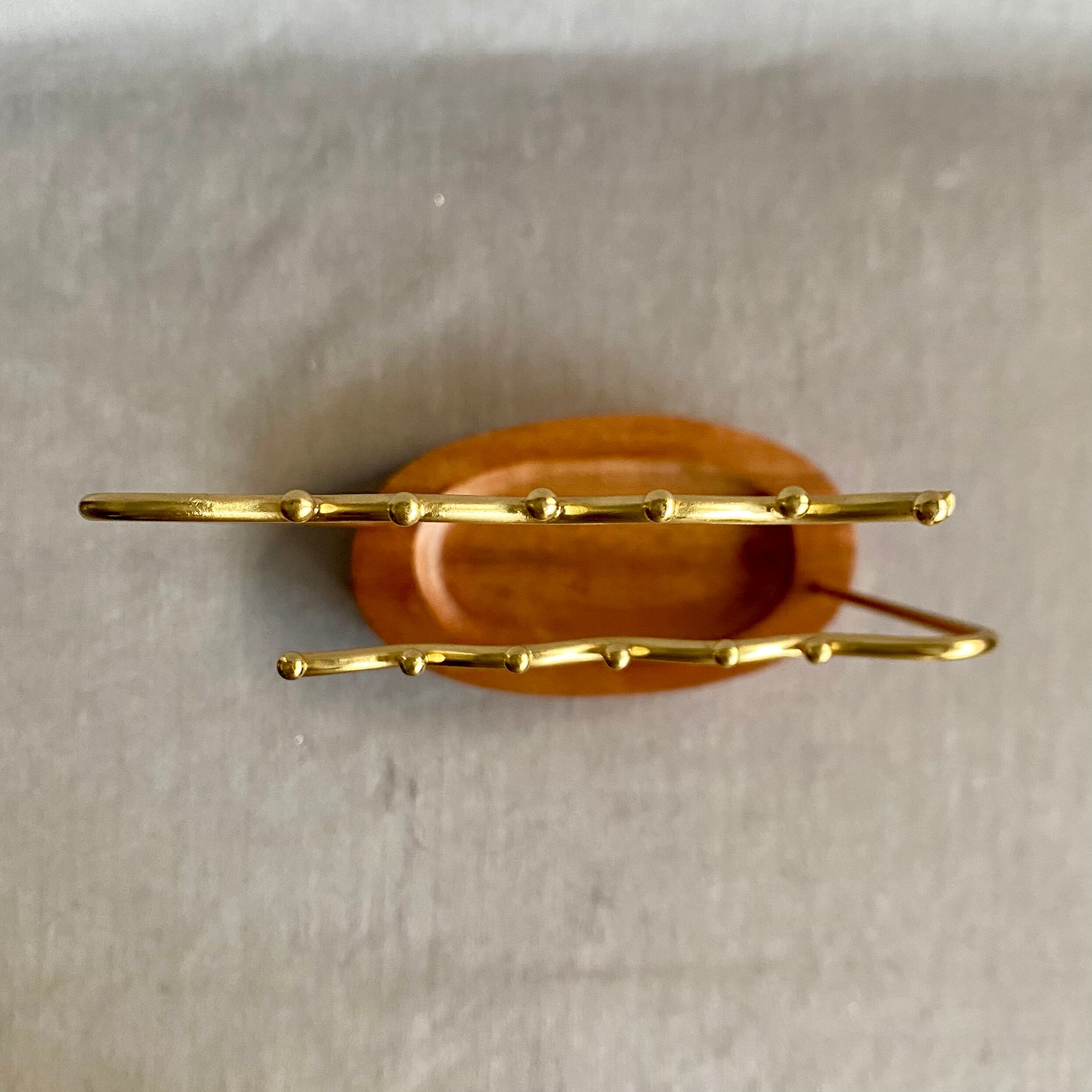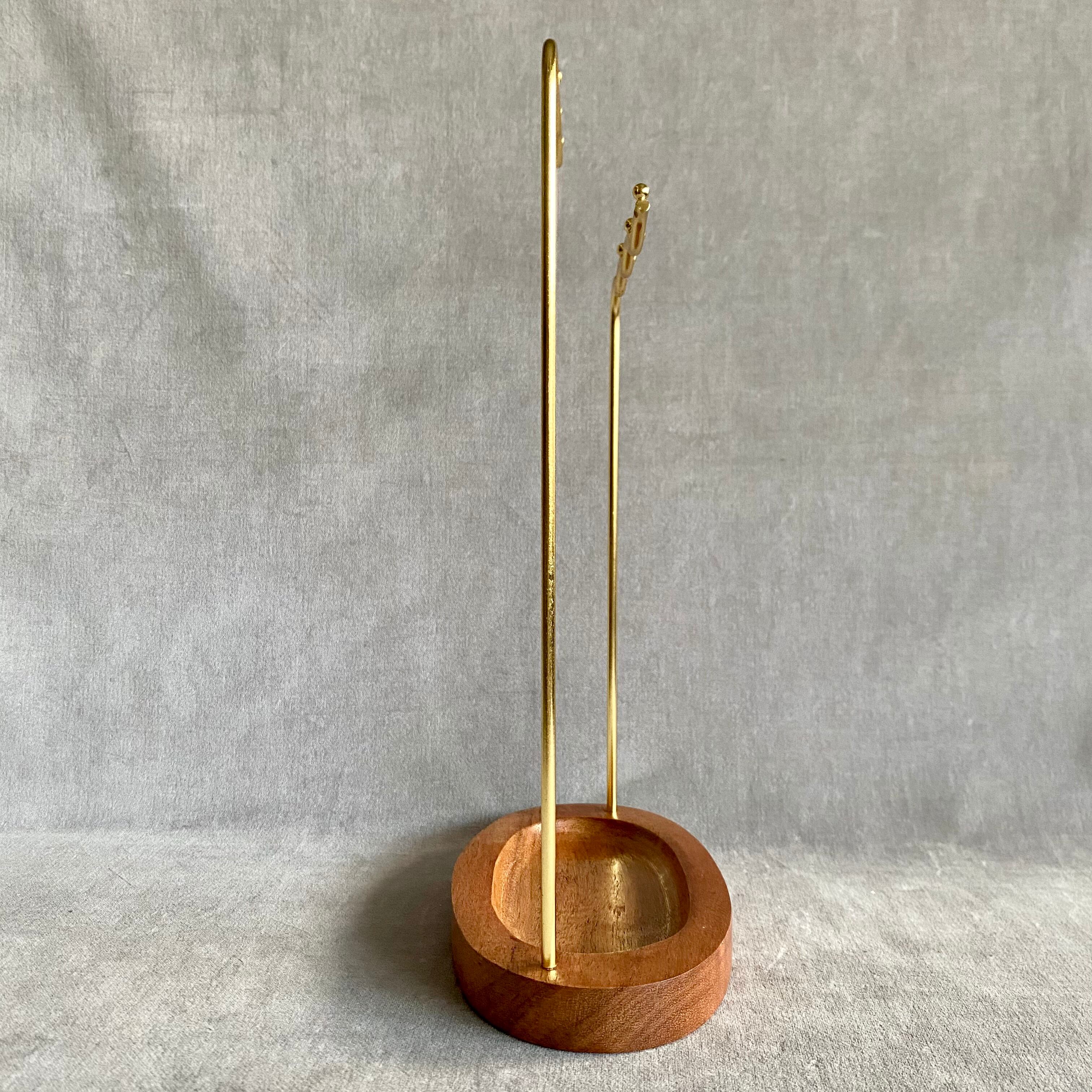 木目が美しいアカシアの台座とゴールド仕上げのアイアンがどこか懐かしいアンティークのような雰囲気を感じさせます。
