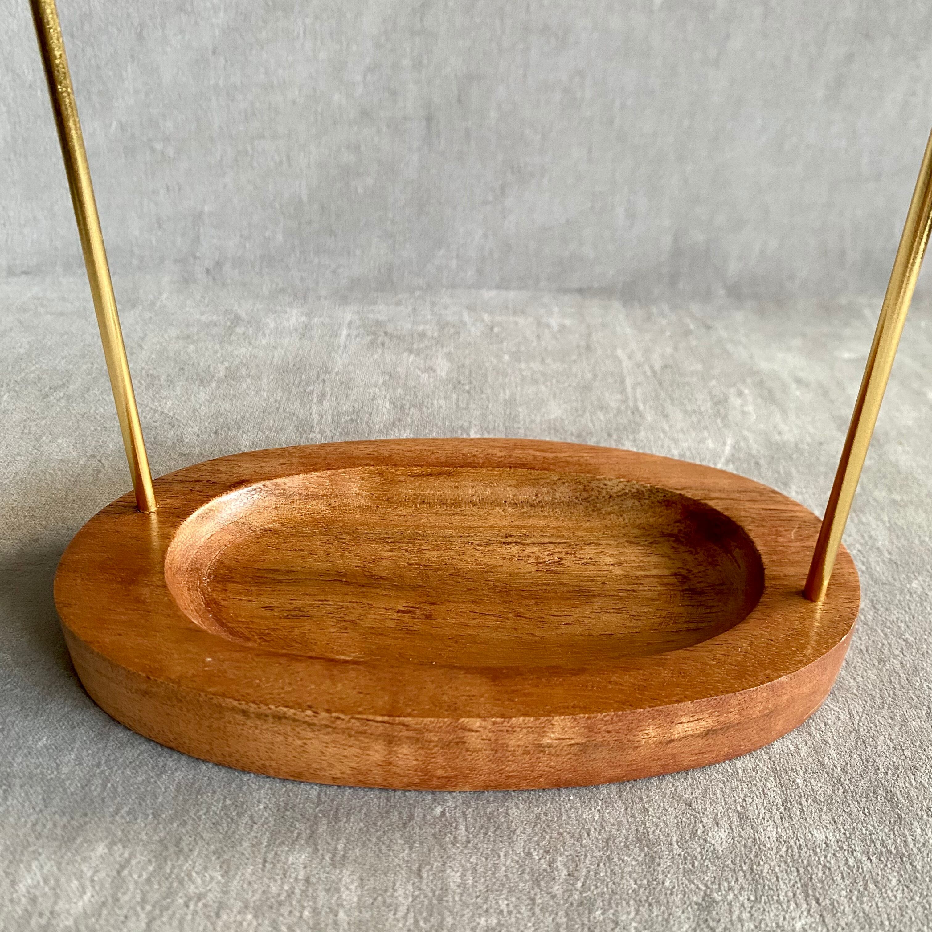 アカシアで出来た台座部分はトレーになっており、時計や鍵などお出掛けに必要なアイテムの収納が可能です。