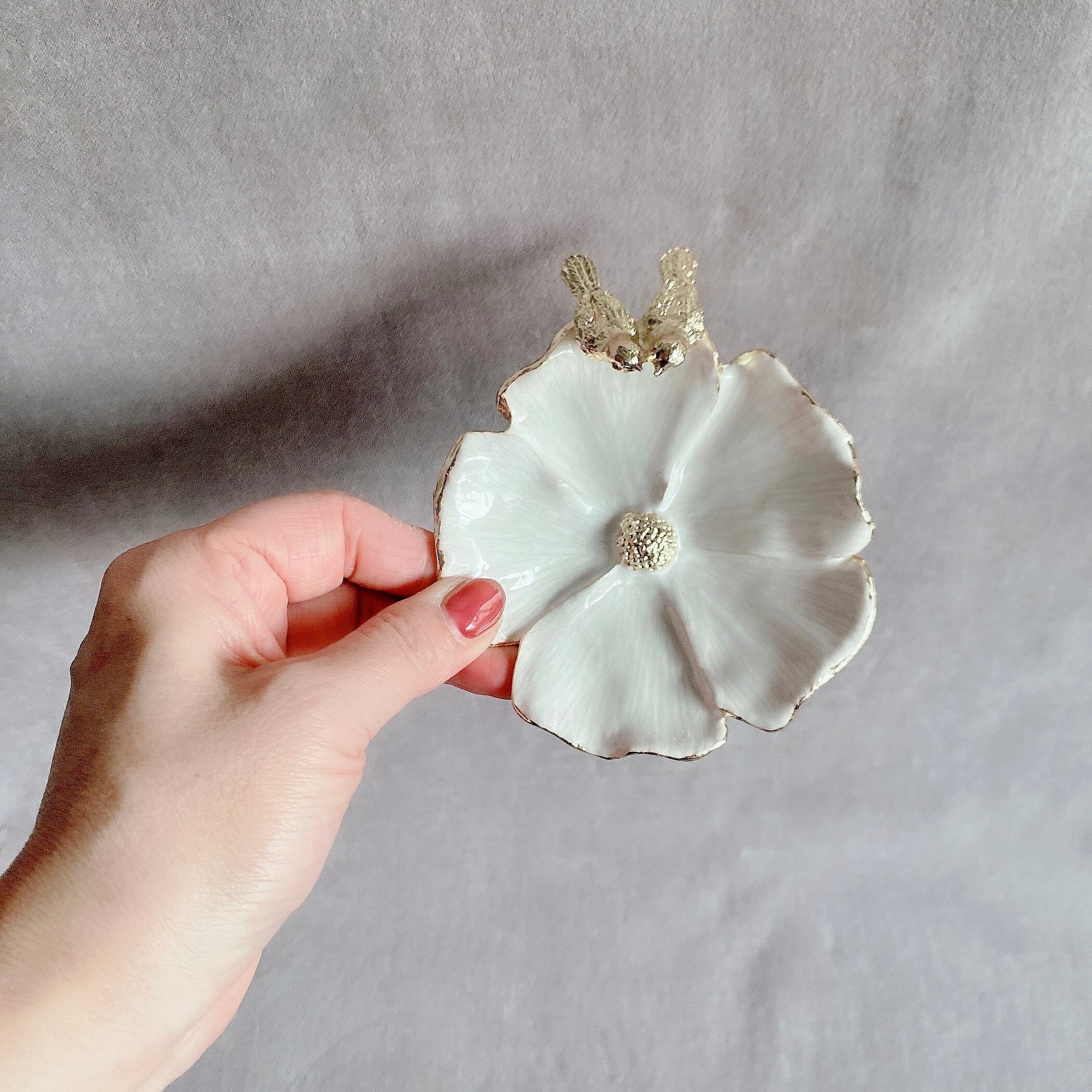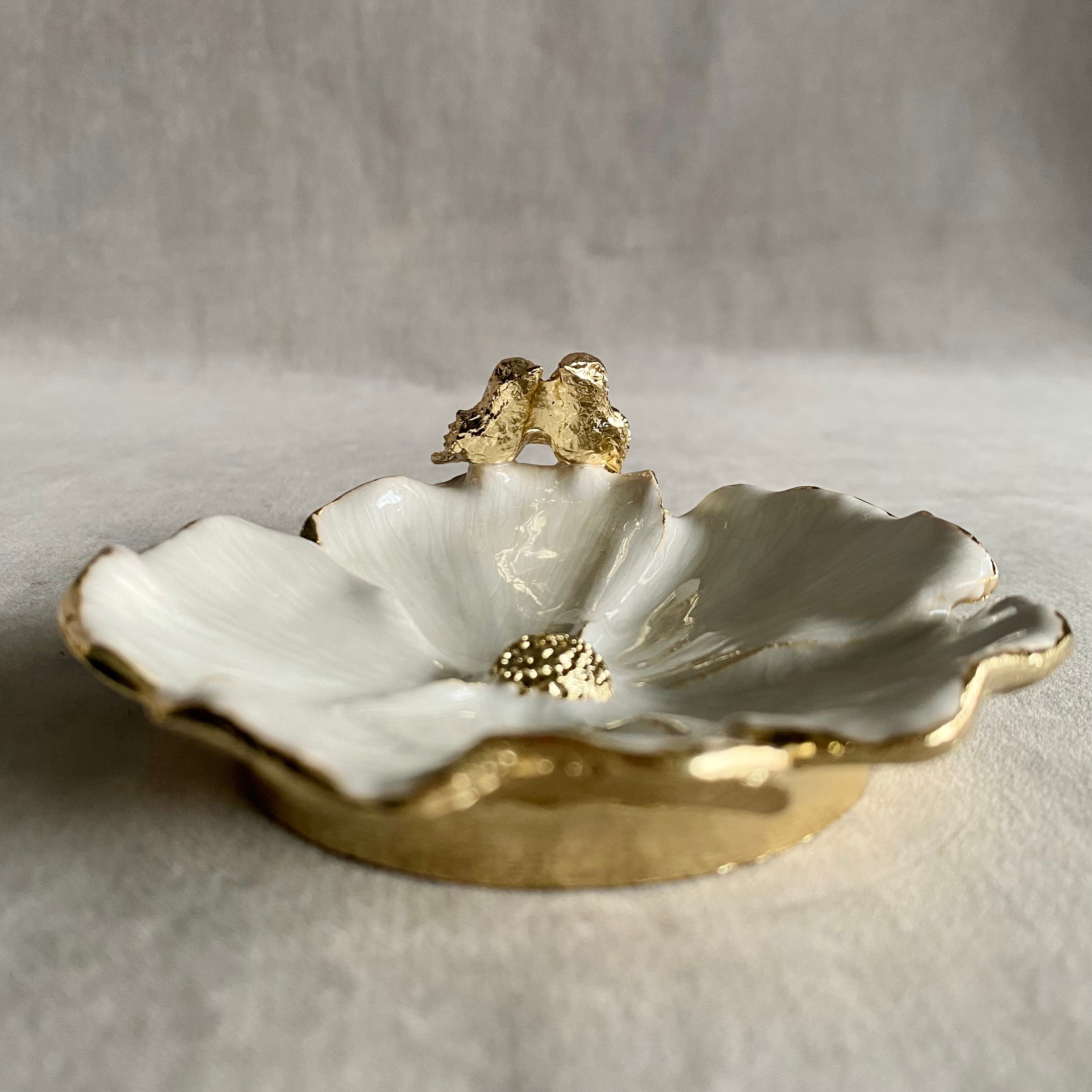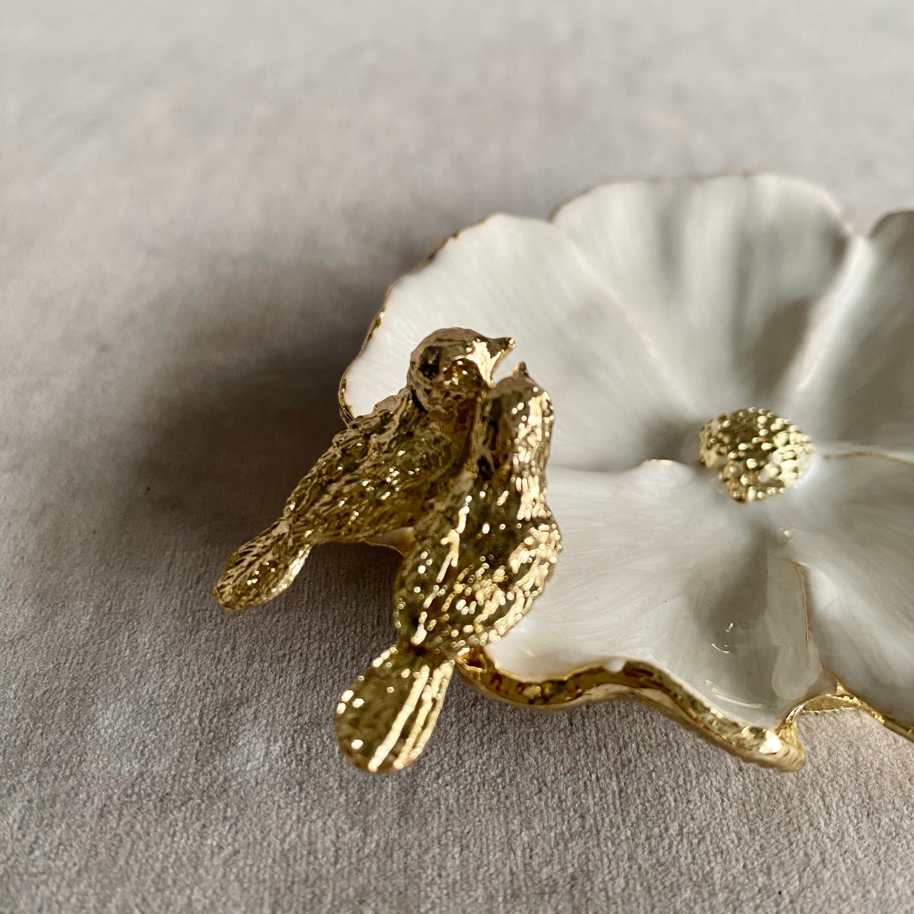 花の縁に小鳥がとまって囀りあっているような小さなトレイ。