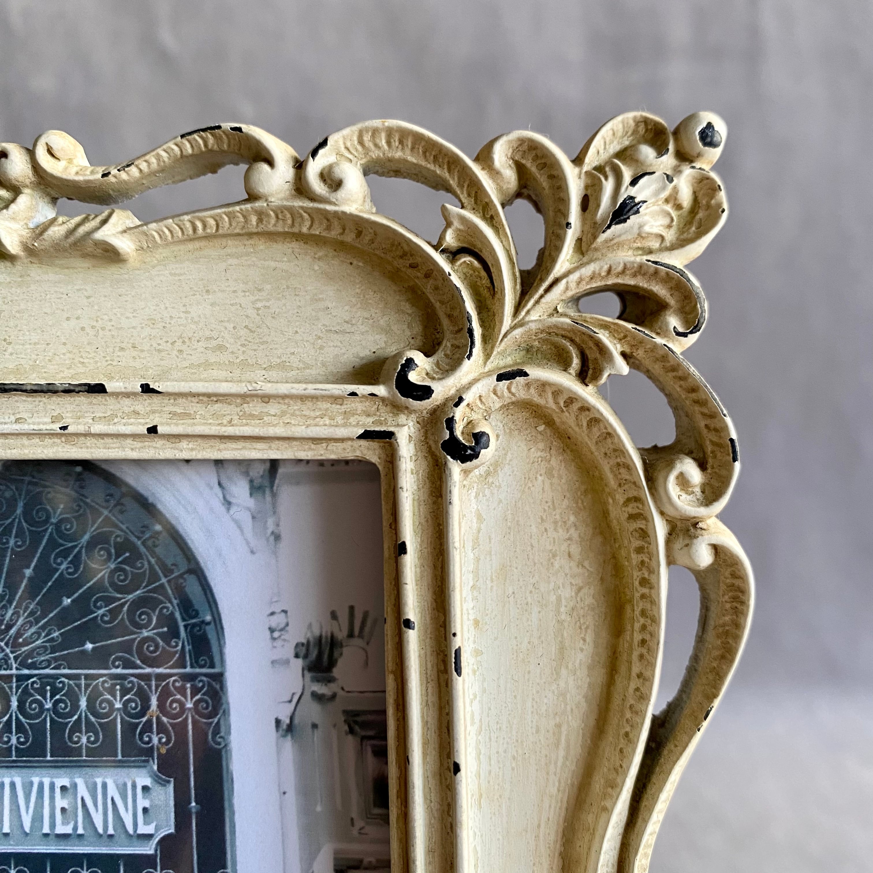 アンティーク風のクラッシックなホワイトシャビーフレーム。