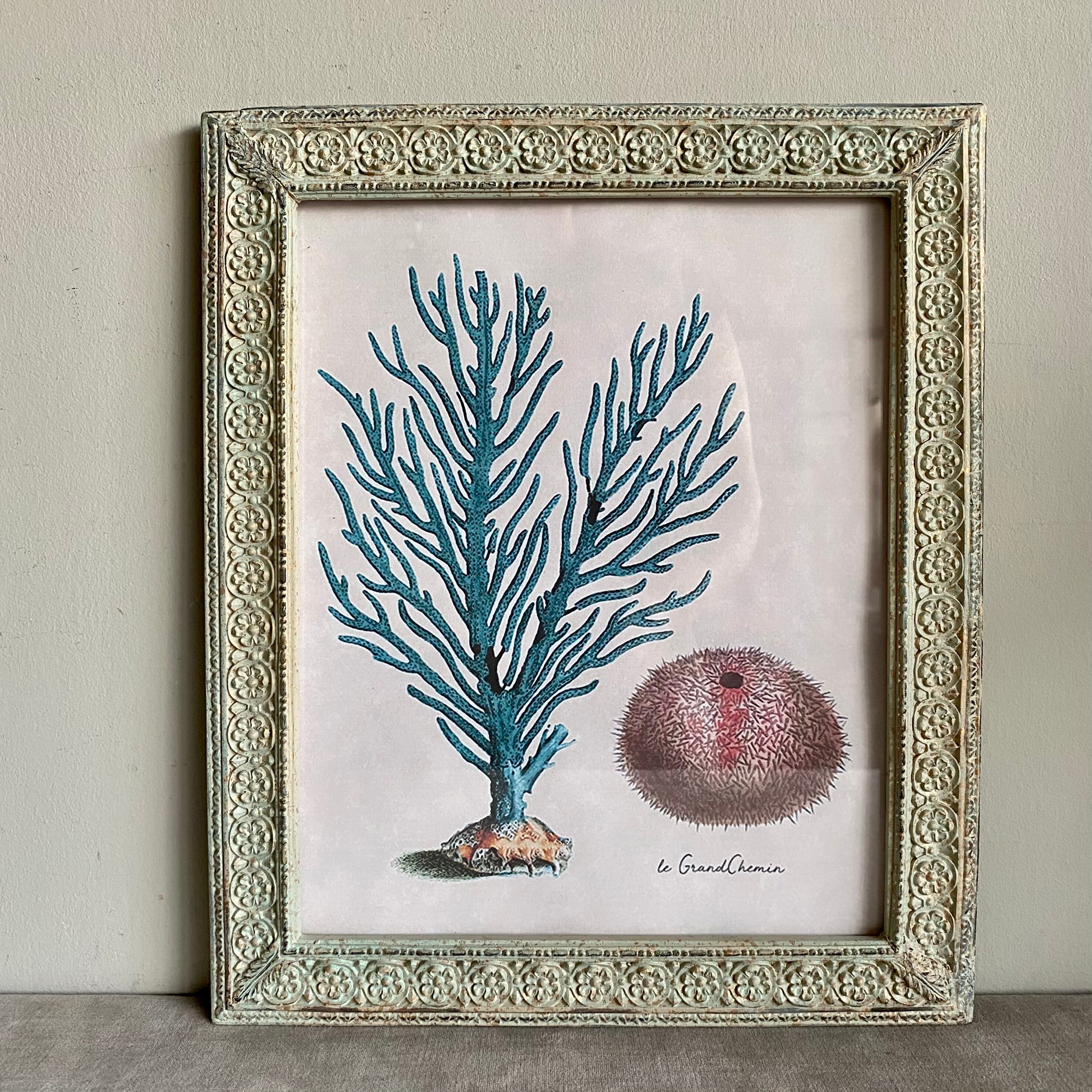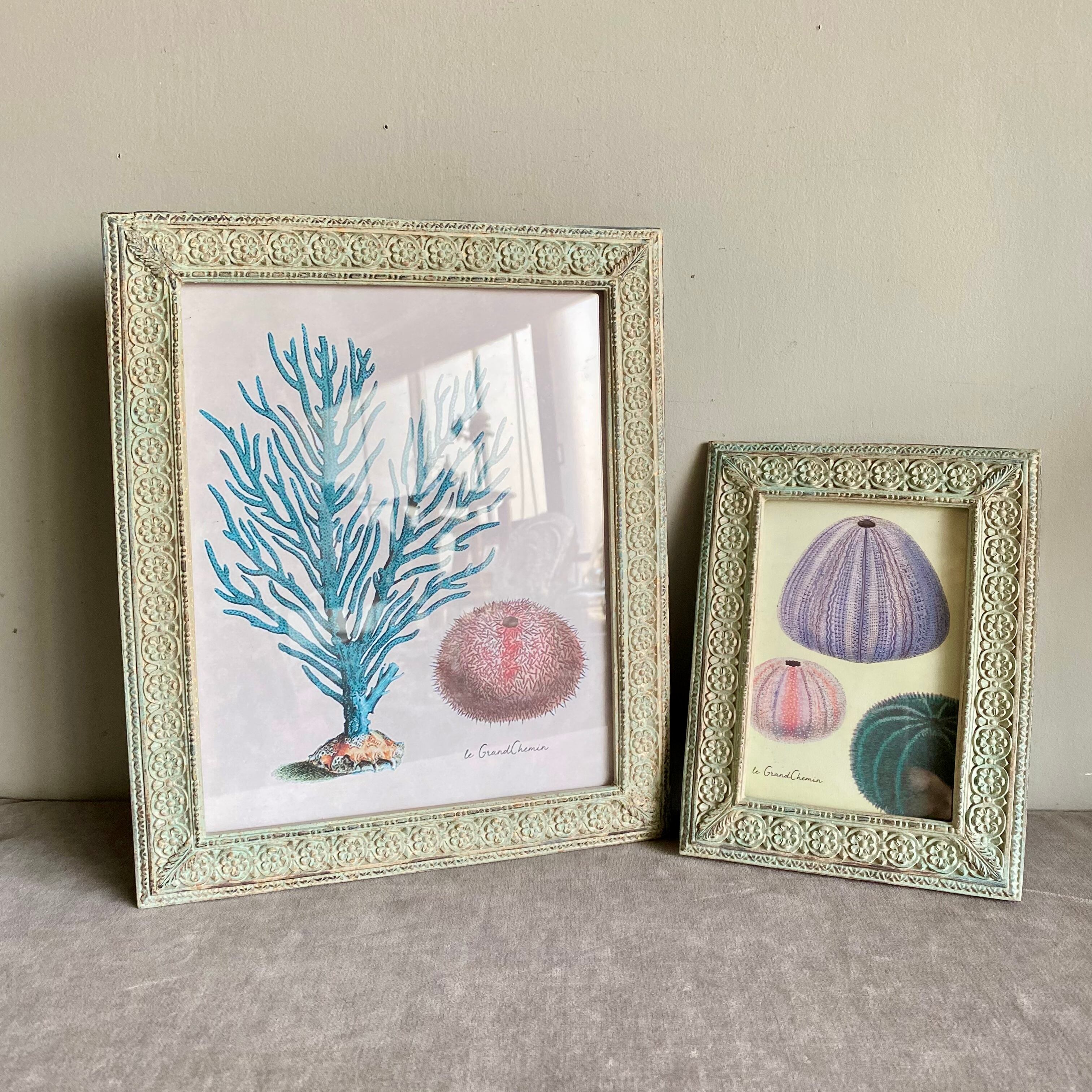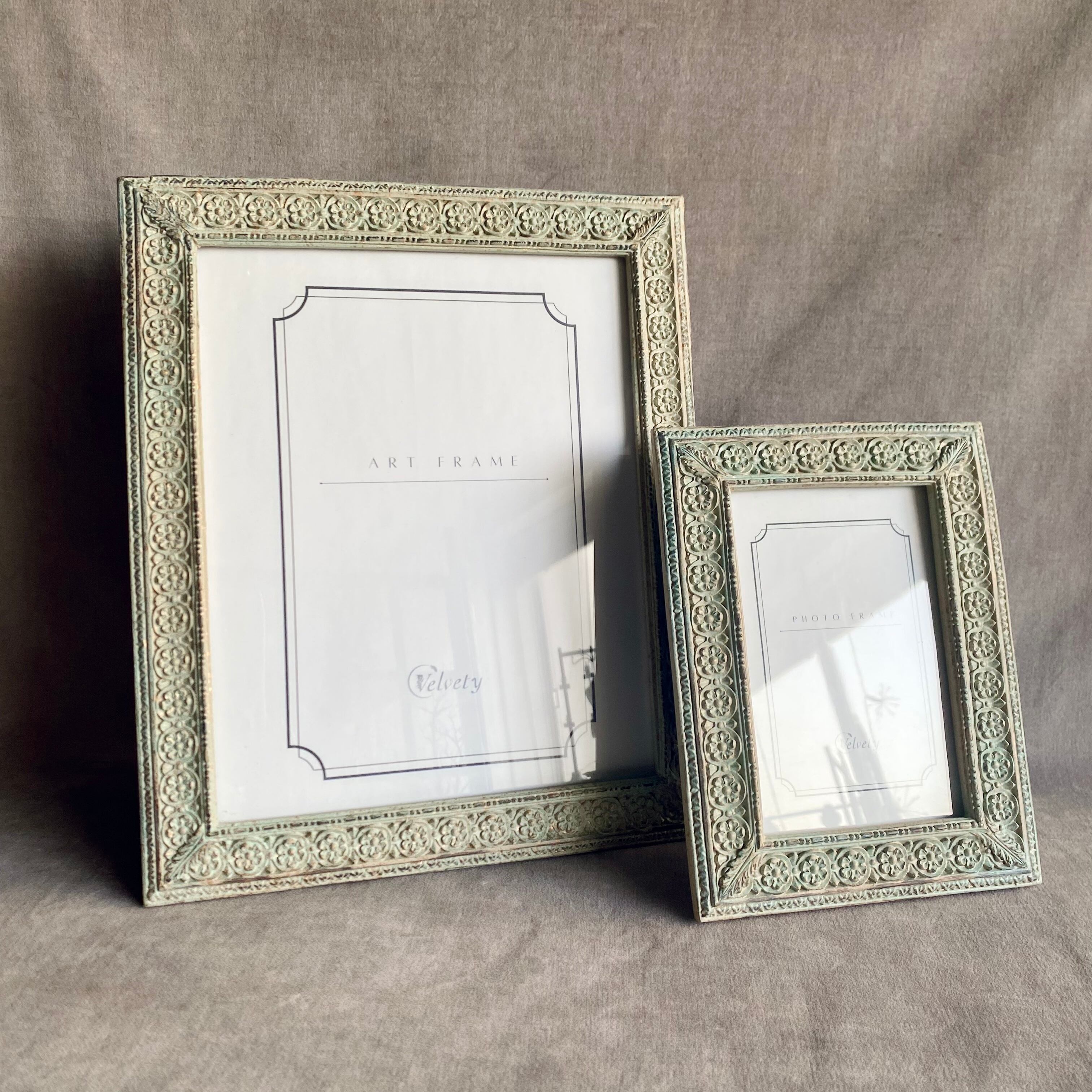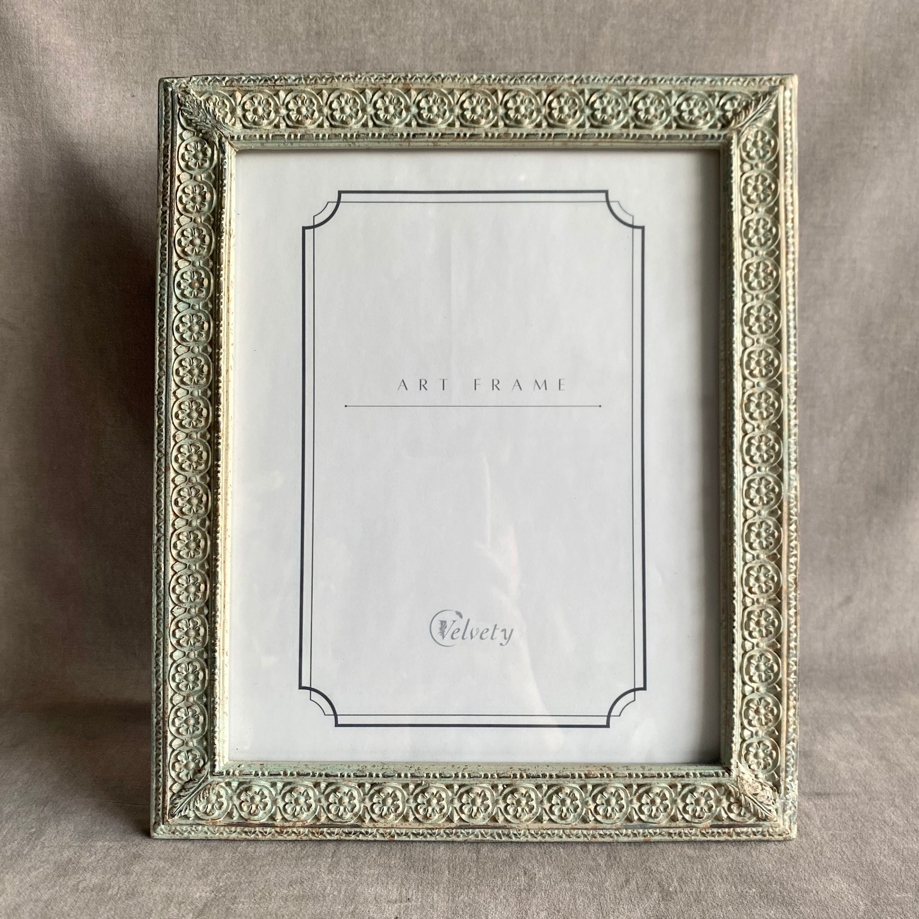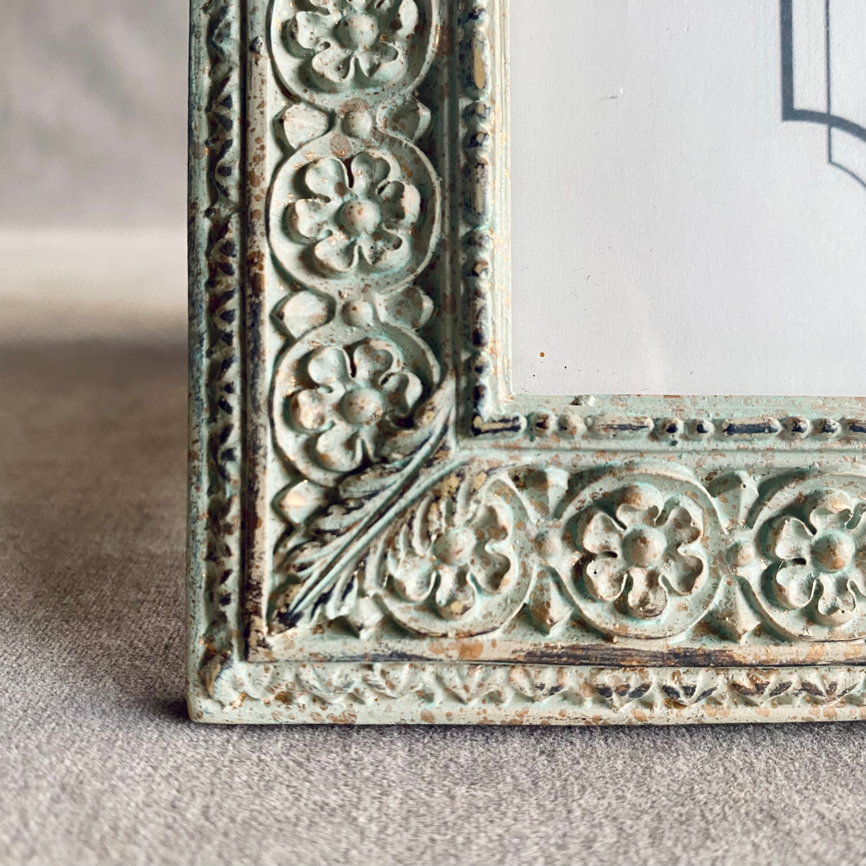 薄めのミントグリーンカラーの花模様が可愛いらしいですが、エイジング塗装でシックな雰囲気です。