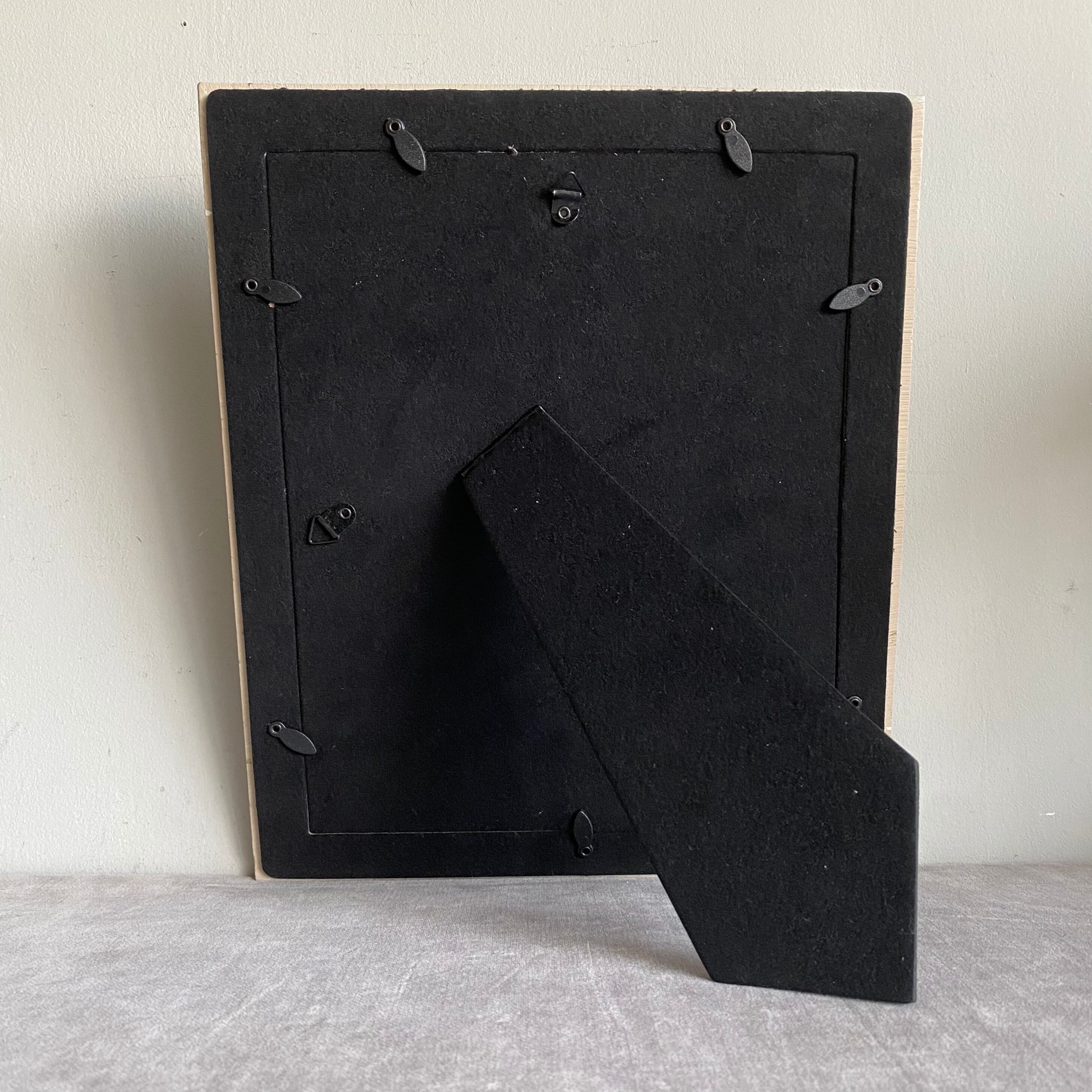 大きめのフレームでスタンド付きはあまりないので、壁に穴を開けられない場所に飾るのにお勧めです。