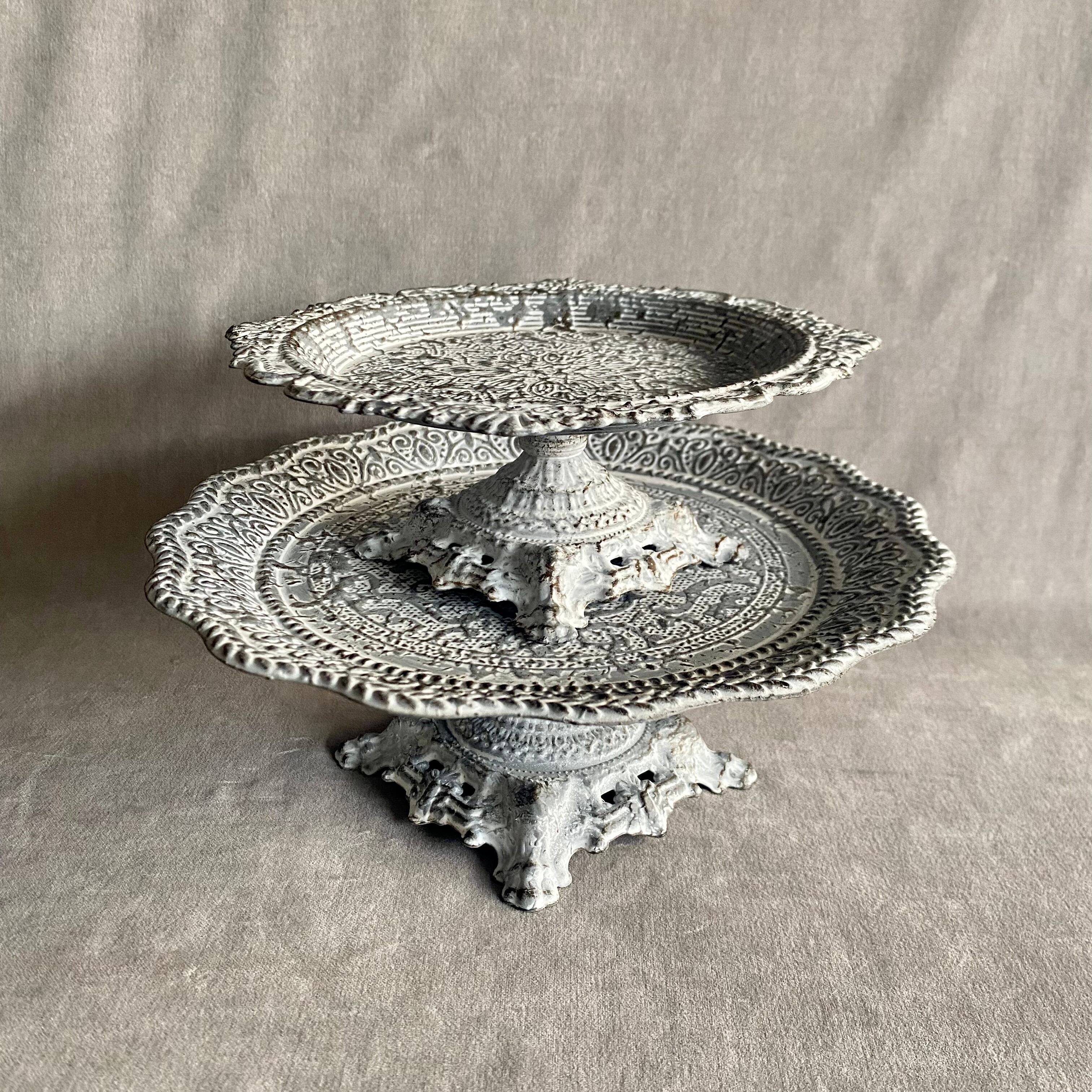 エンボスされたダマスク柄にシャビー感ある塗装でアンティークな雰囲気を醸し出しています。