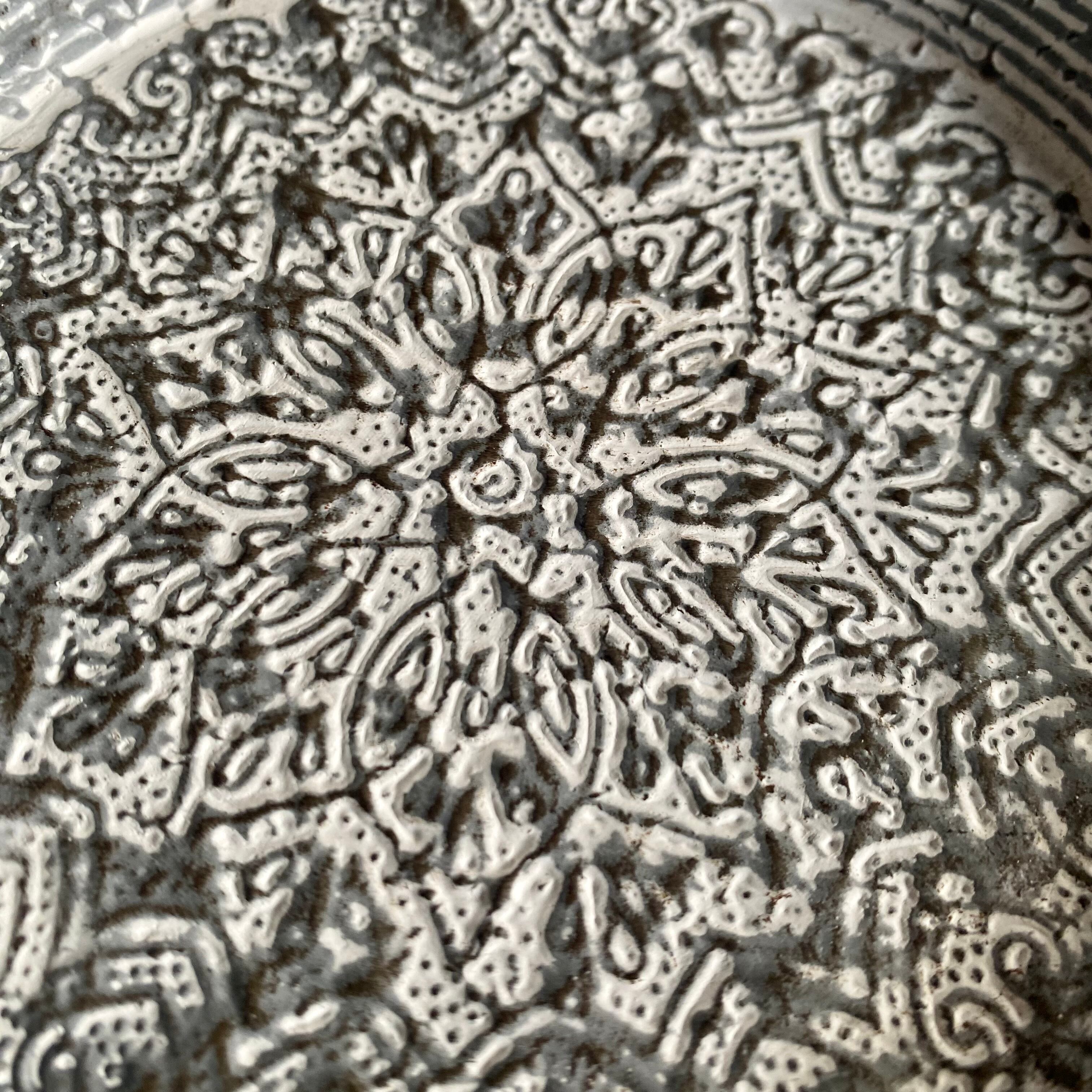 エンボスされたダマスク柄にシャビー感ある塗装でアンティークな雰囲気を醸し出しています。