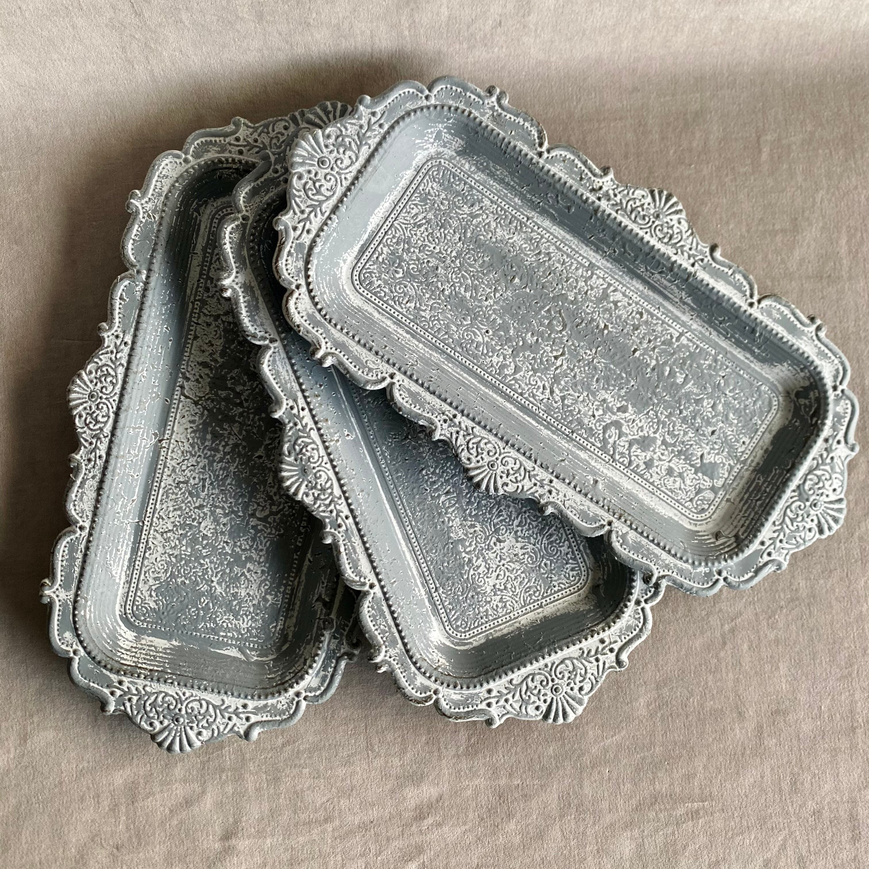 ※写真最後に「ダマスク シャビー トレイ【S】」とのサイズ比較がありますので大きさの他、色の個体差の参考にしてください。