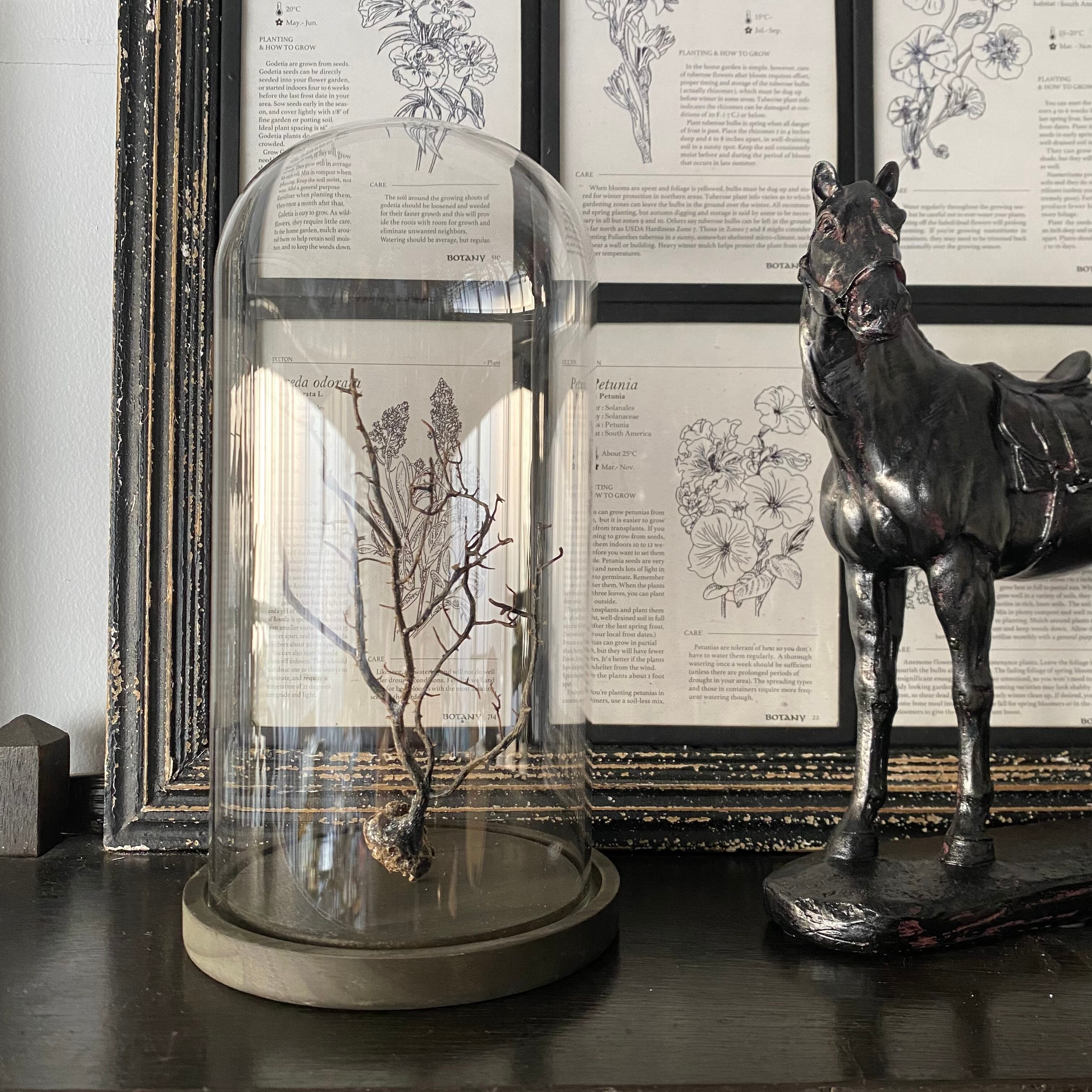 木製ベース付きのガラスドーム。