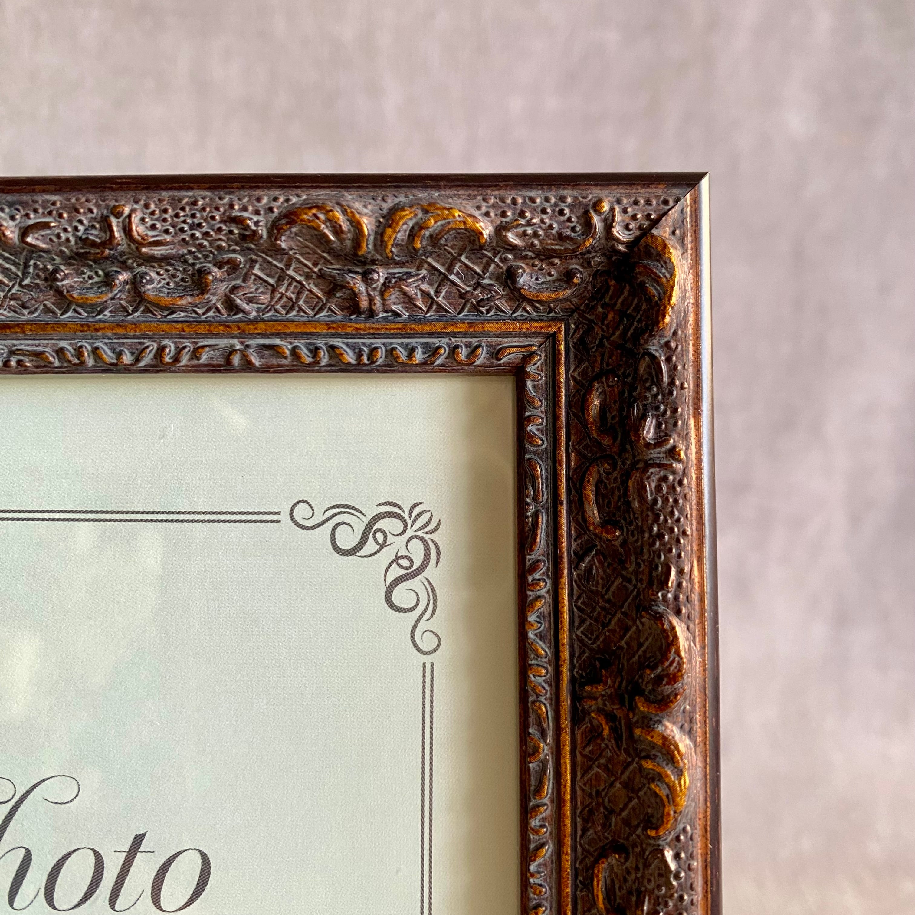 高級感のあるデコレーションが施されたスタンド付きの写真立て。
