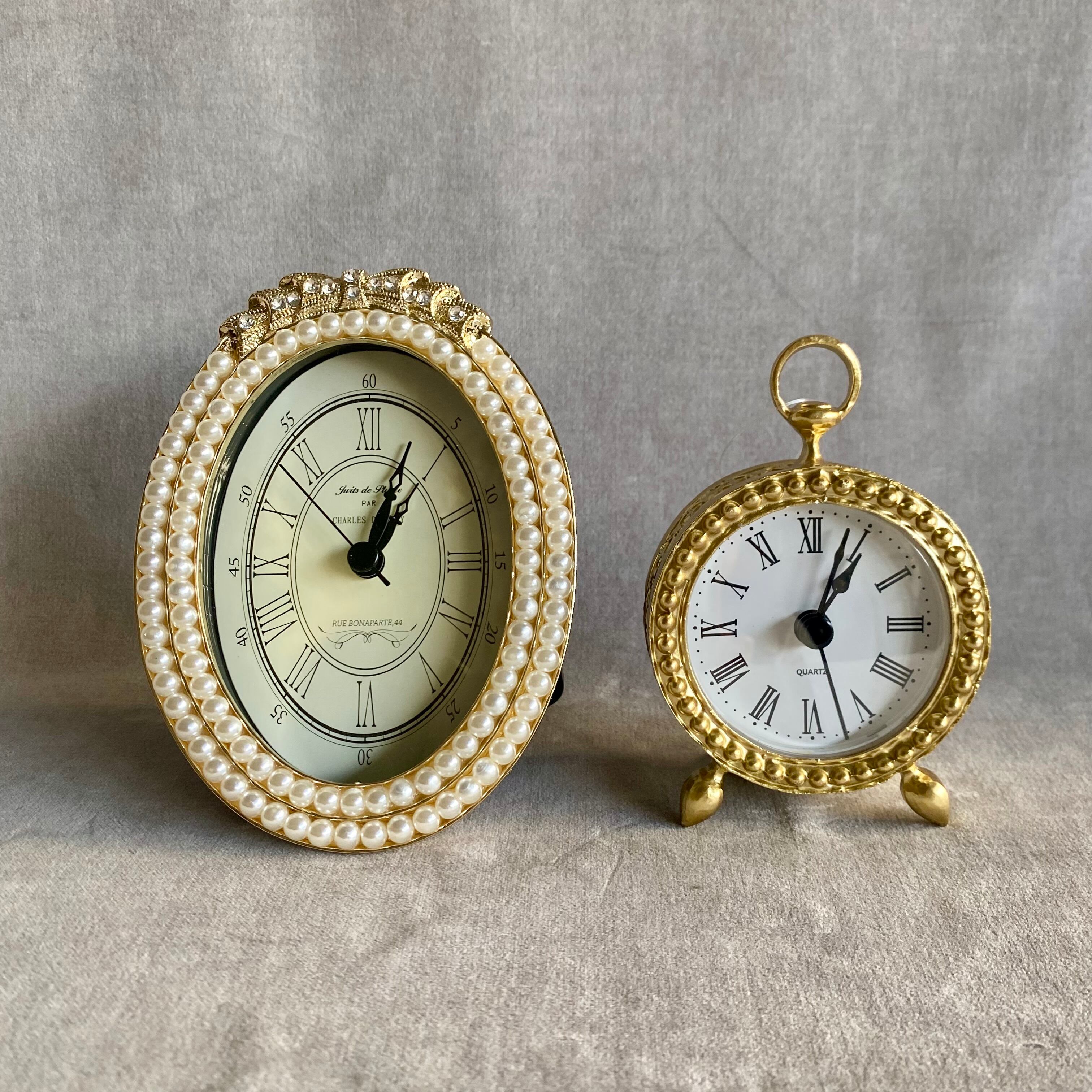 テーブル クロック パールリボン GD/SV