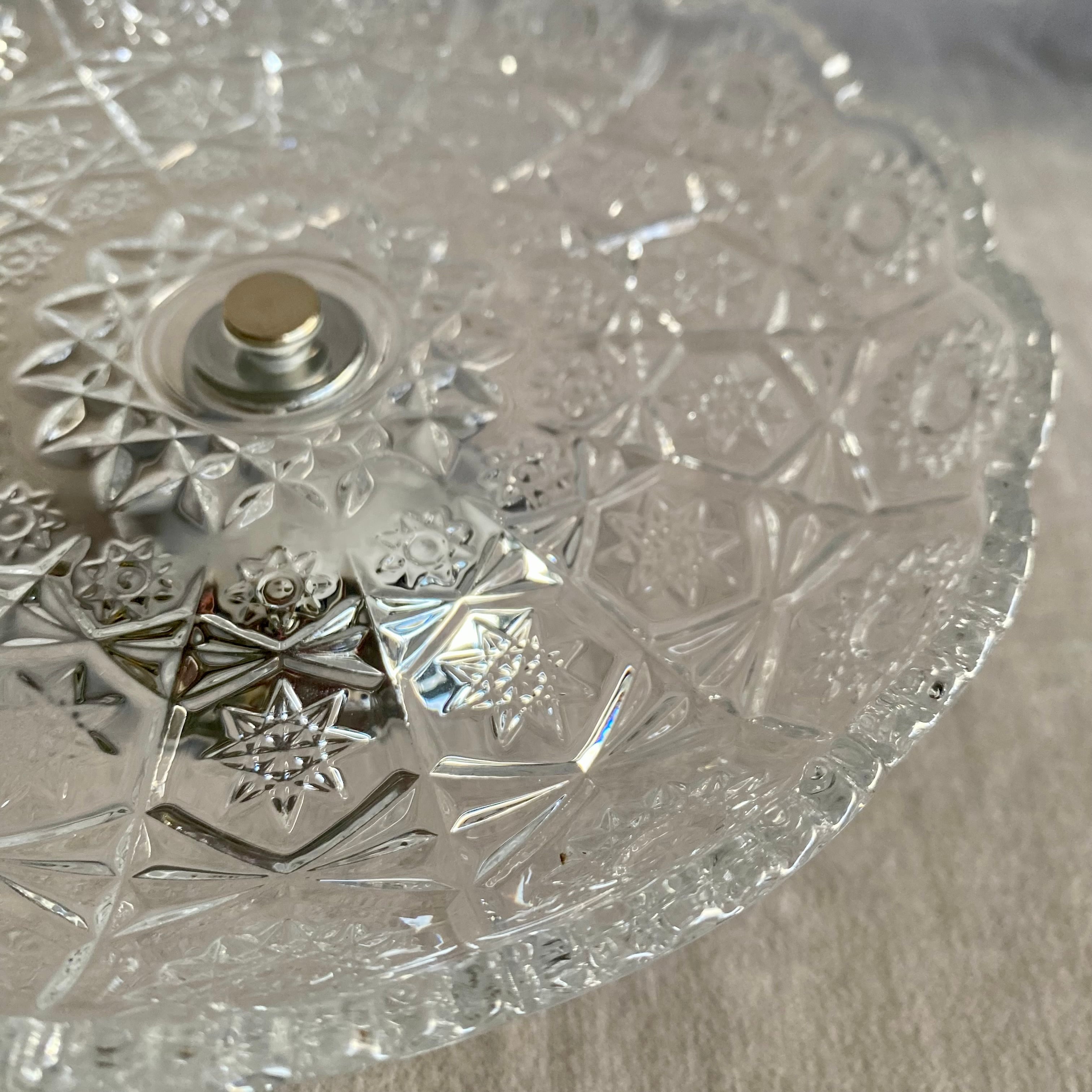 お皿部分は光を受けてきらめき、アクセサリーやラッピングされたお菓子を優雅に演出します。