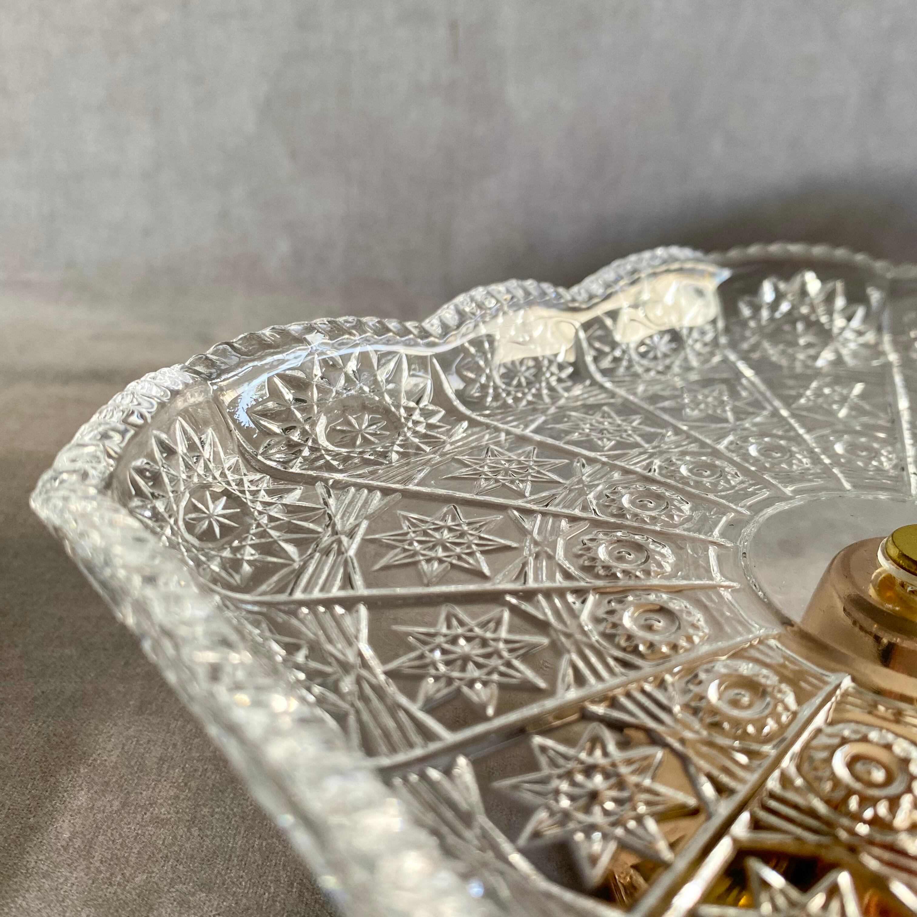 お皿部分は光を受けてきらめき、アクセサリーやラッピングされたお菓子を優雅に演出します。