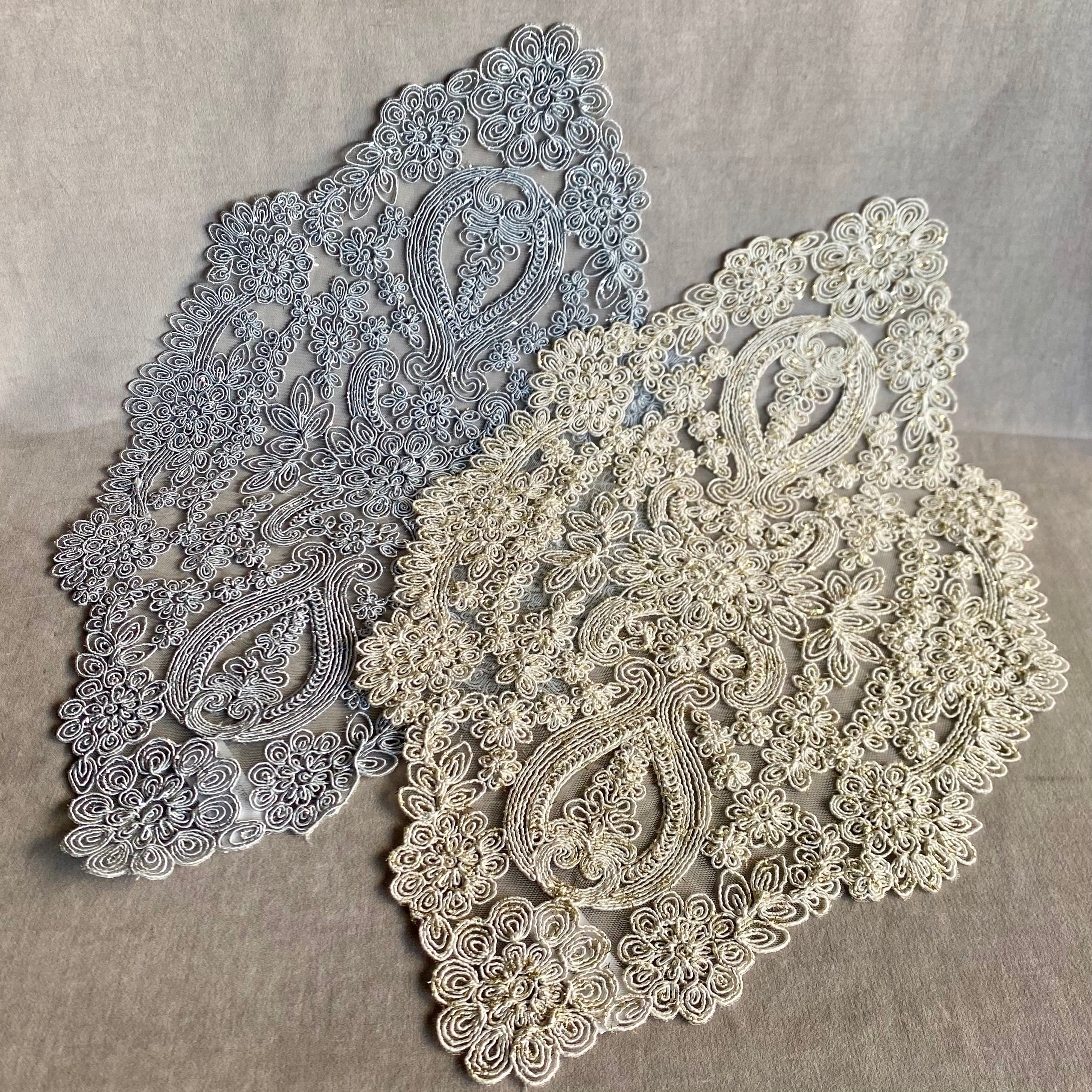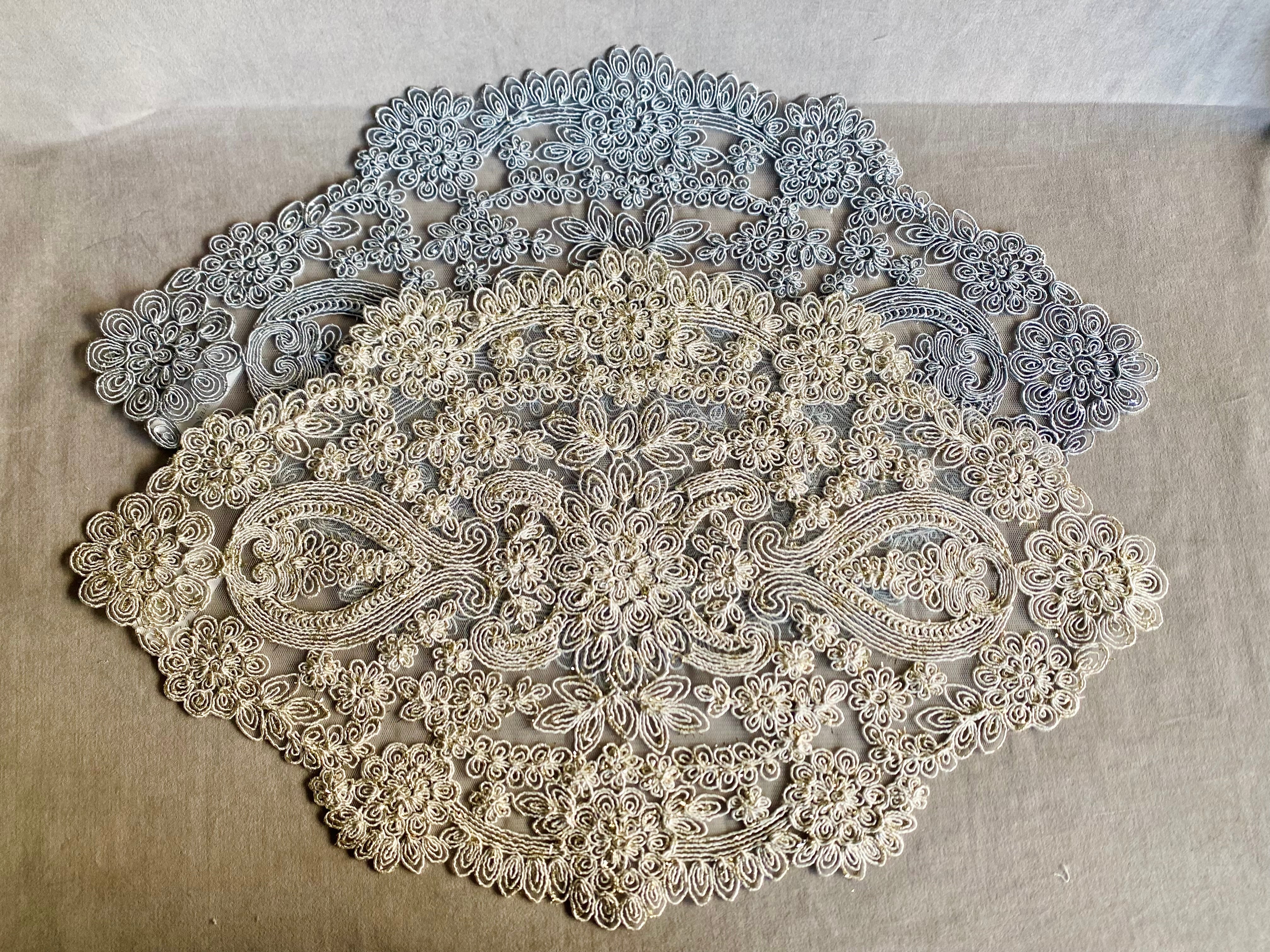 繊細でゴージャスな刺繍をあしらったレースのプレイスマット。