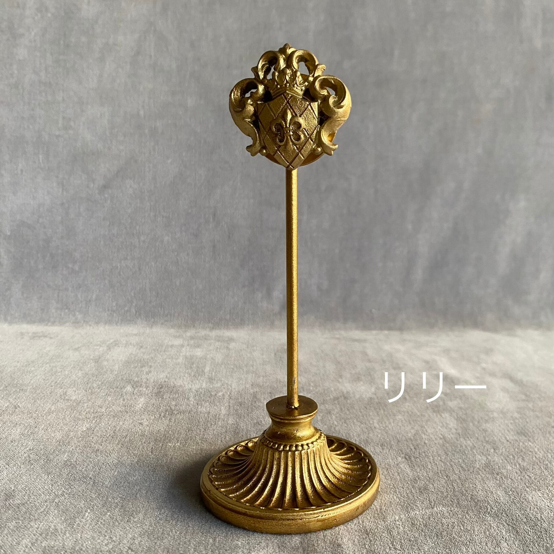 クラシカルな王冠とフルールドリスの紋章のレリーフの、マグネット式カードスタンド。