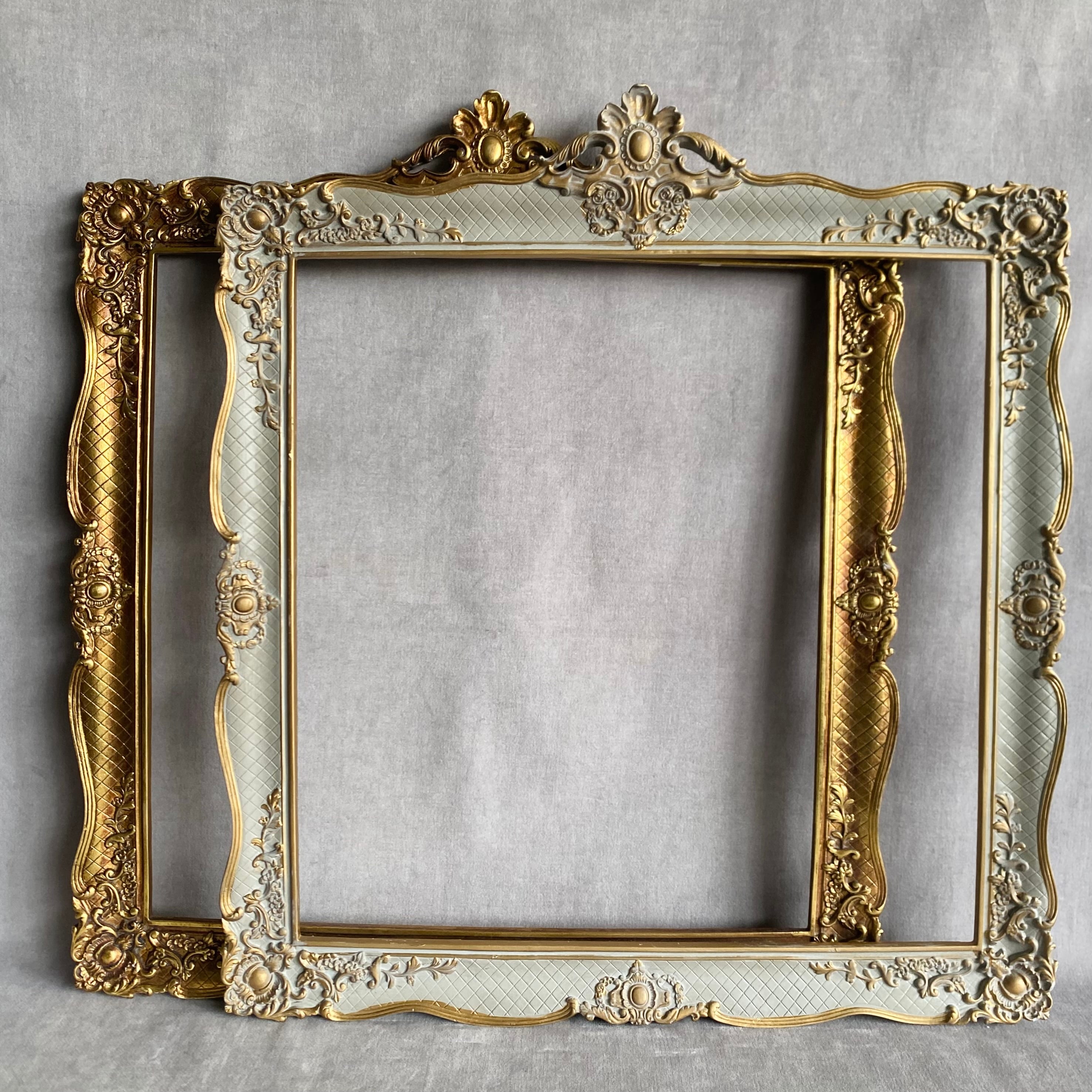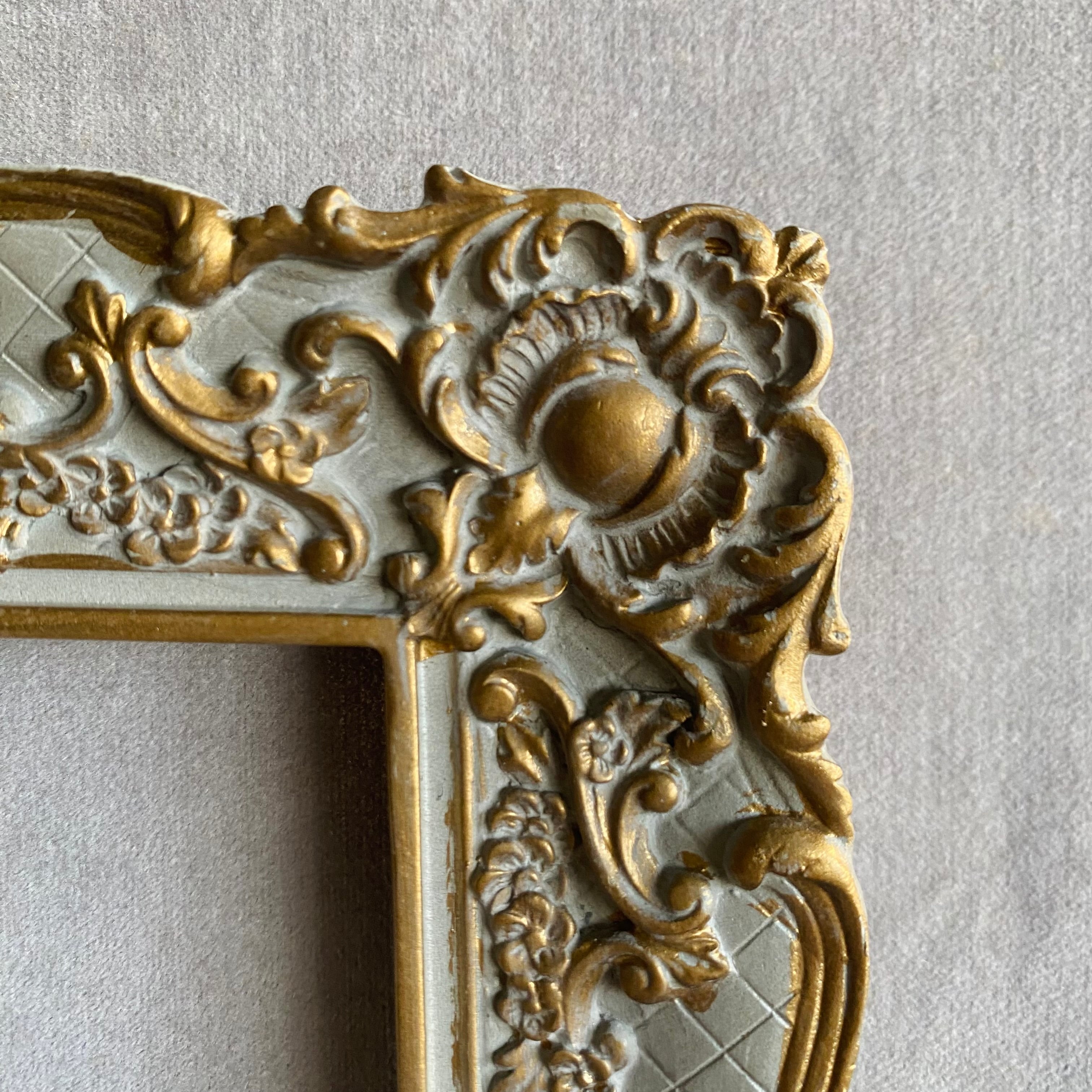 シャビーシックなグレーのクラシカルな壁掛けフレーム。