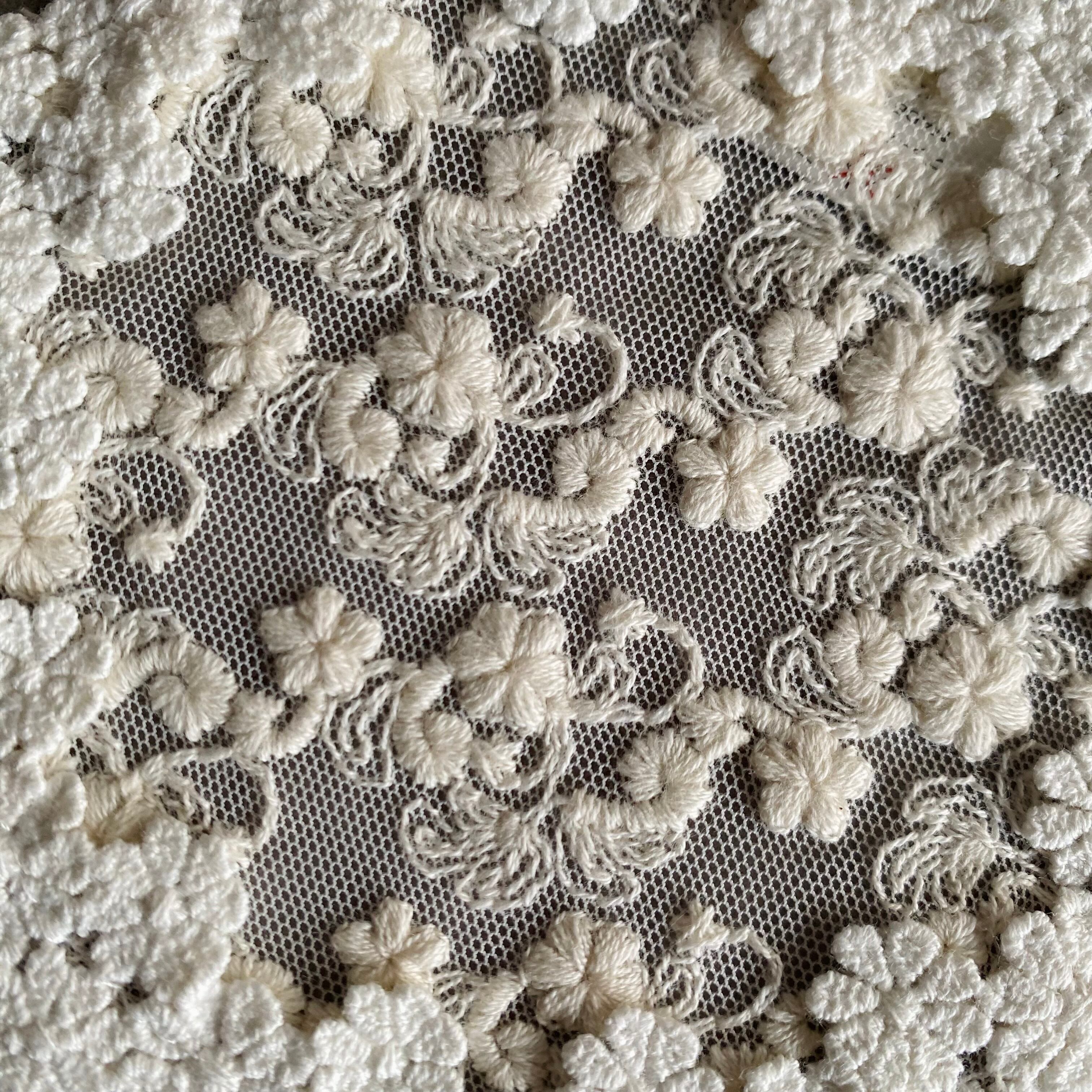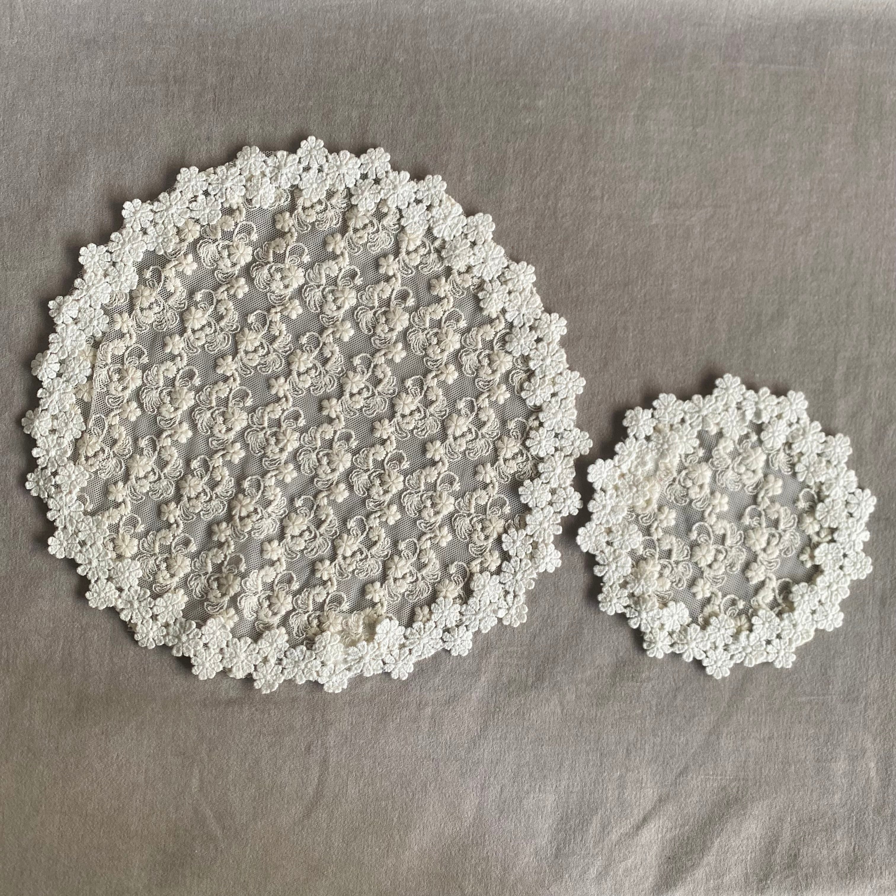 密集度の高いコットン刺繍にチュールレースをあしらったコースター。