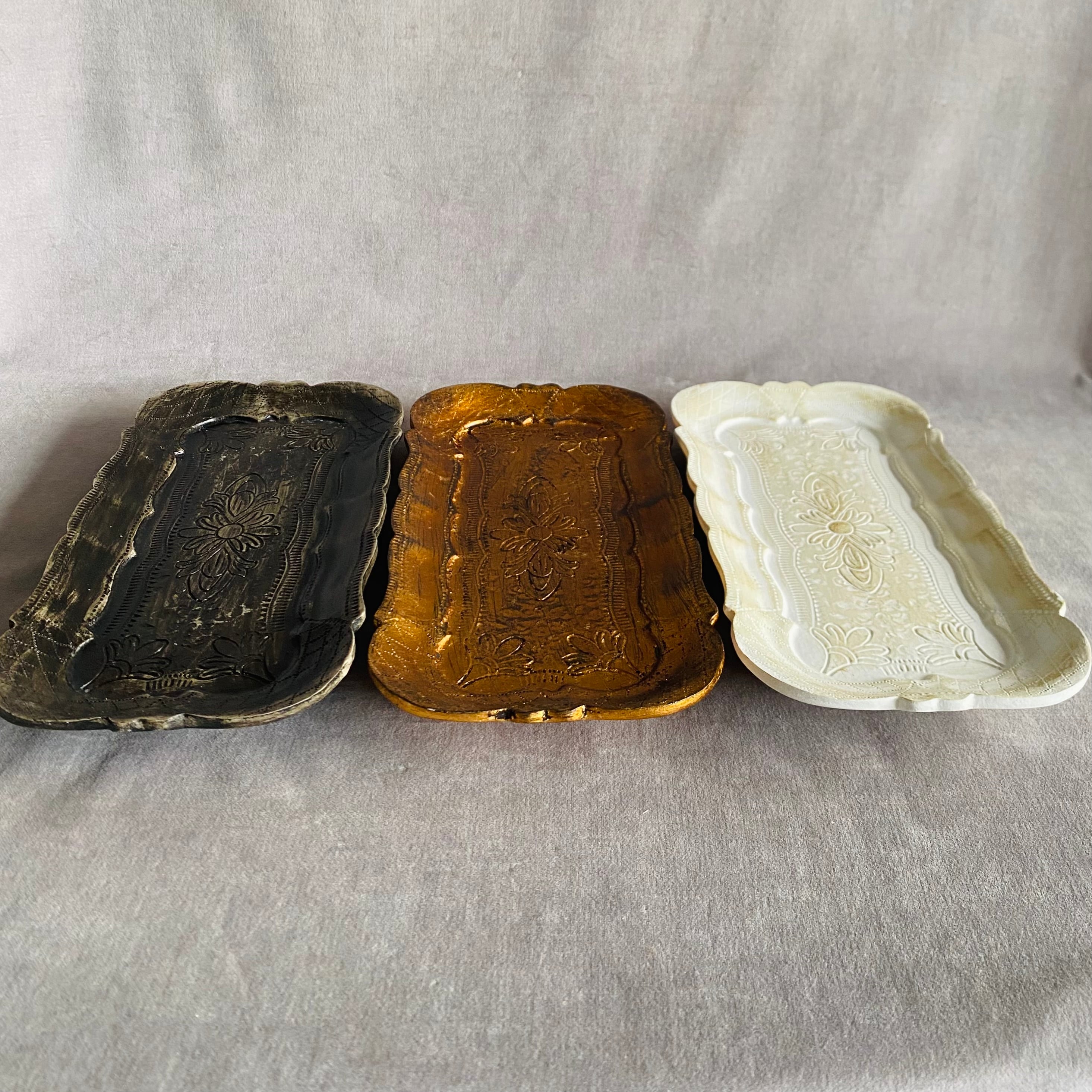 やわらかな曲線の縁取りと立体的なレリーフが、置くだけで空間を上品に引き立てます。