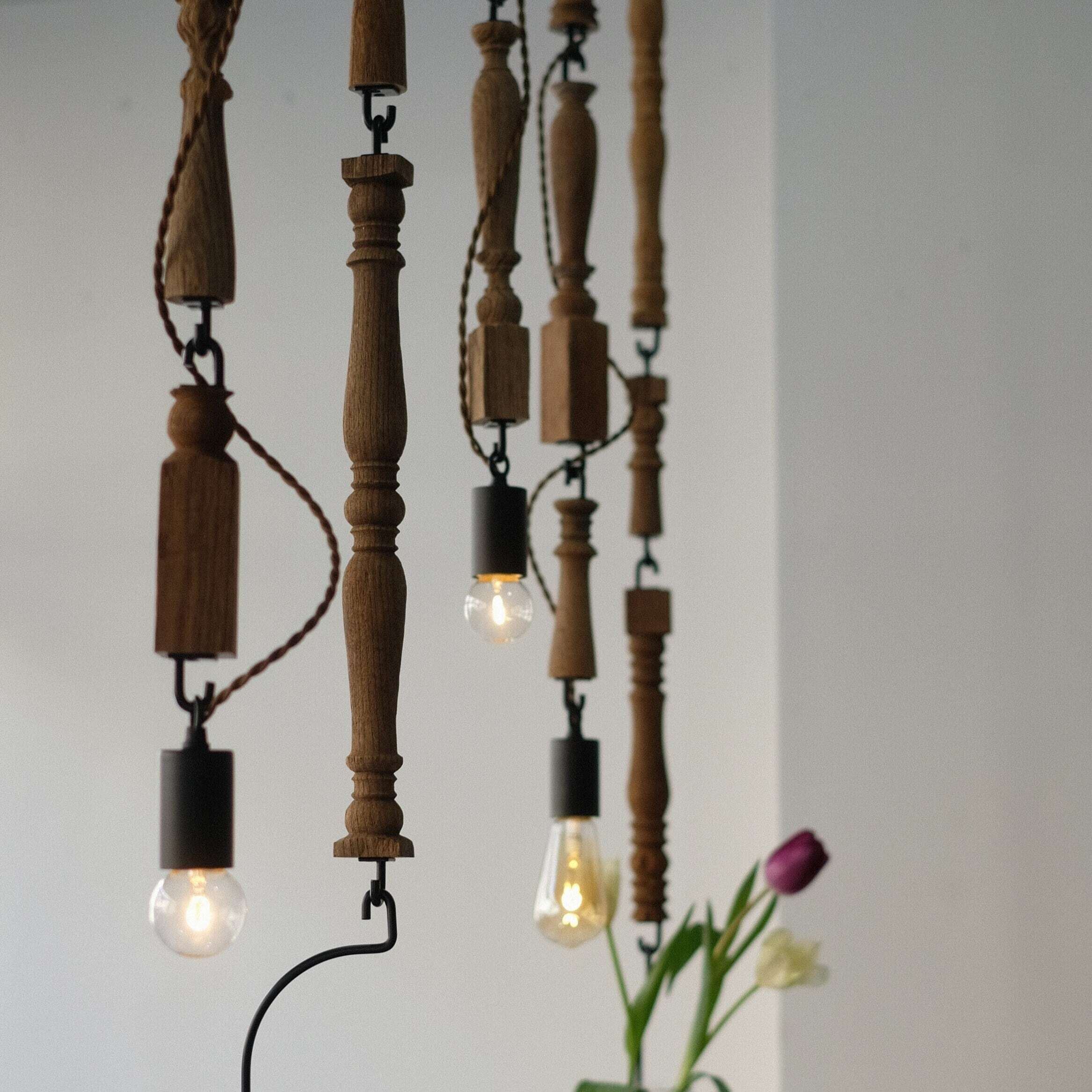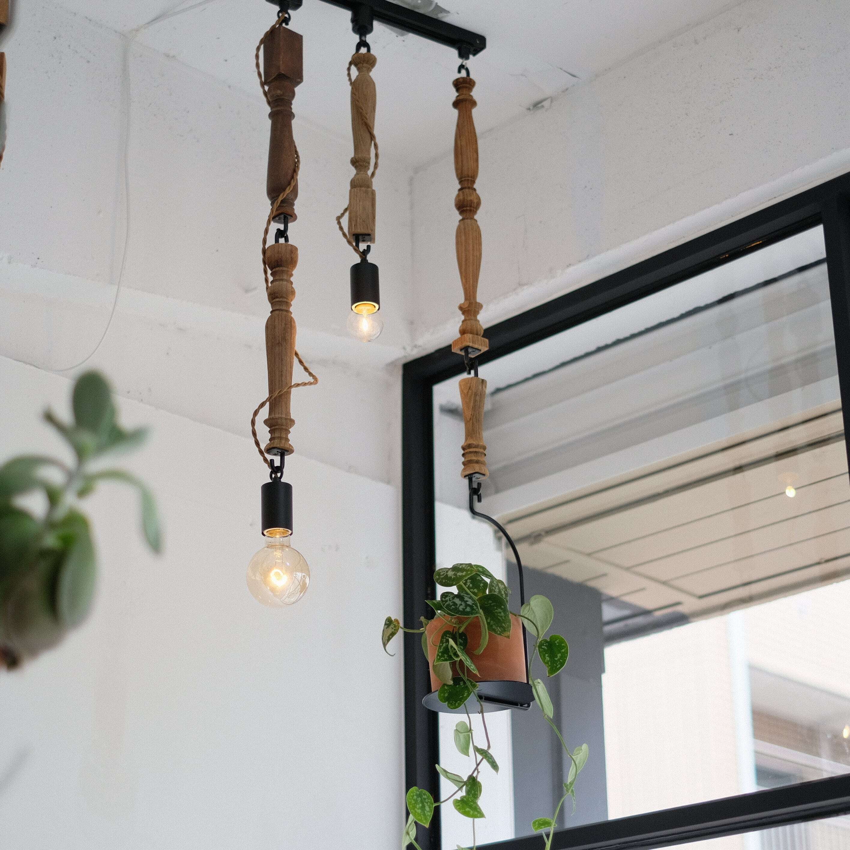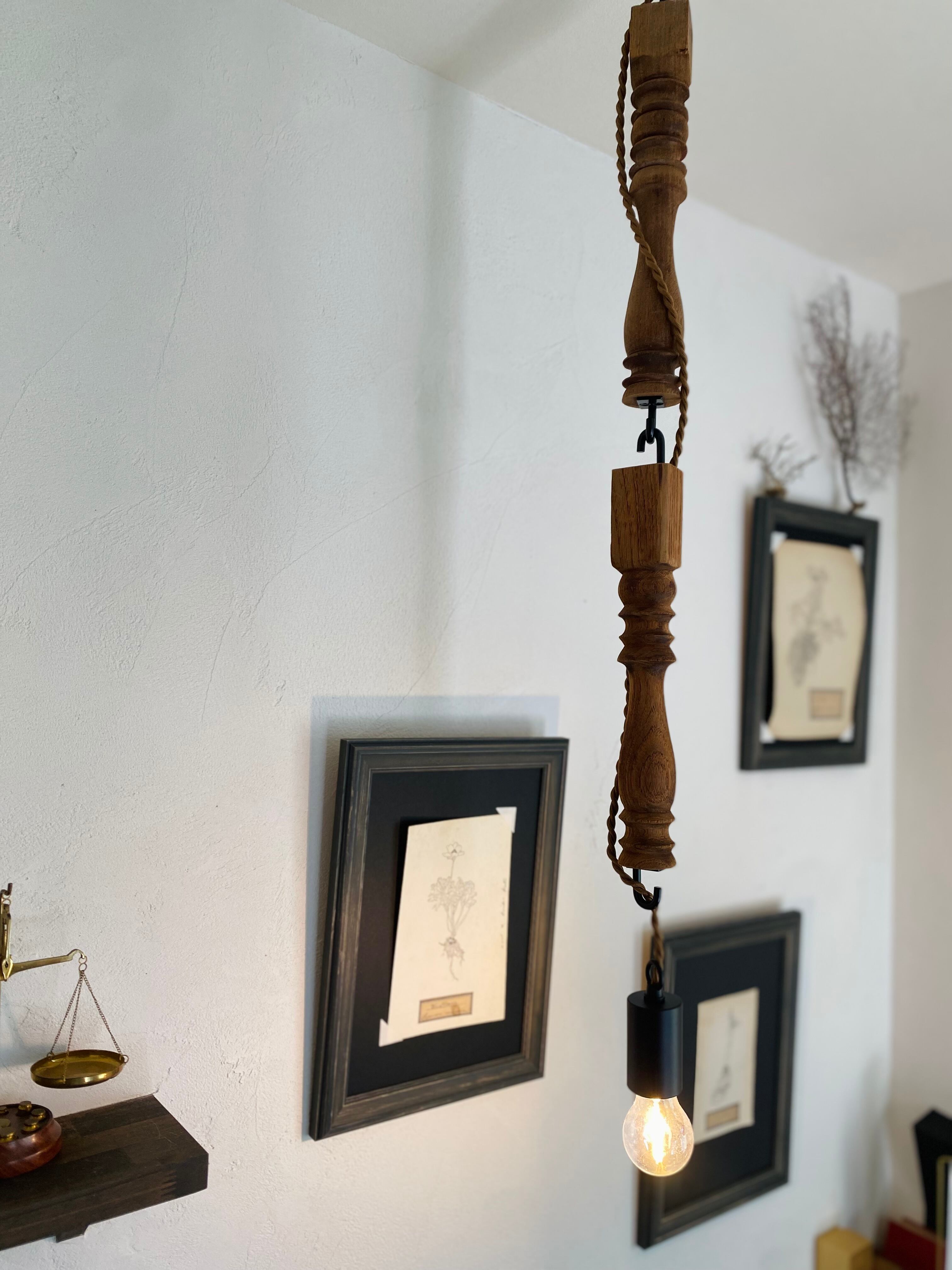 フックに巻き付けたコードが植物の蔦のようなペンダントランプ。