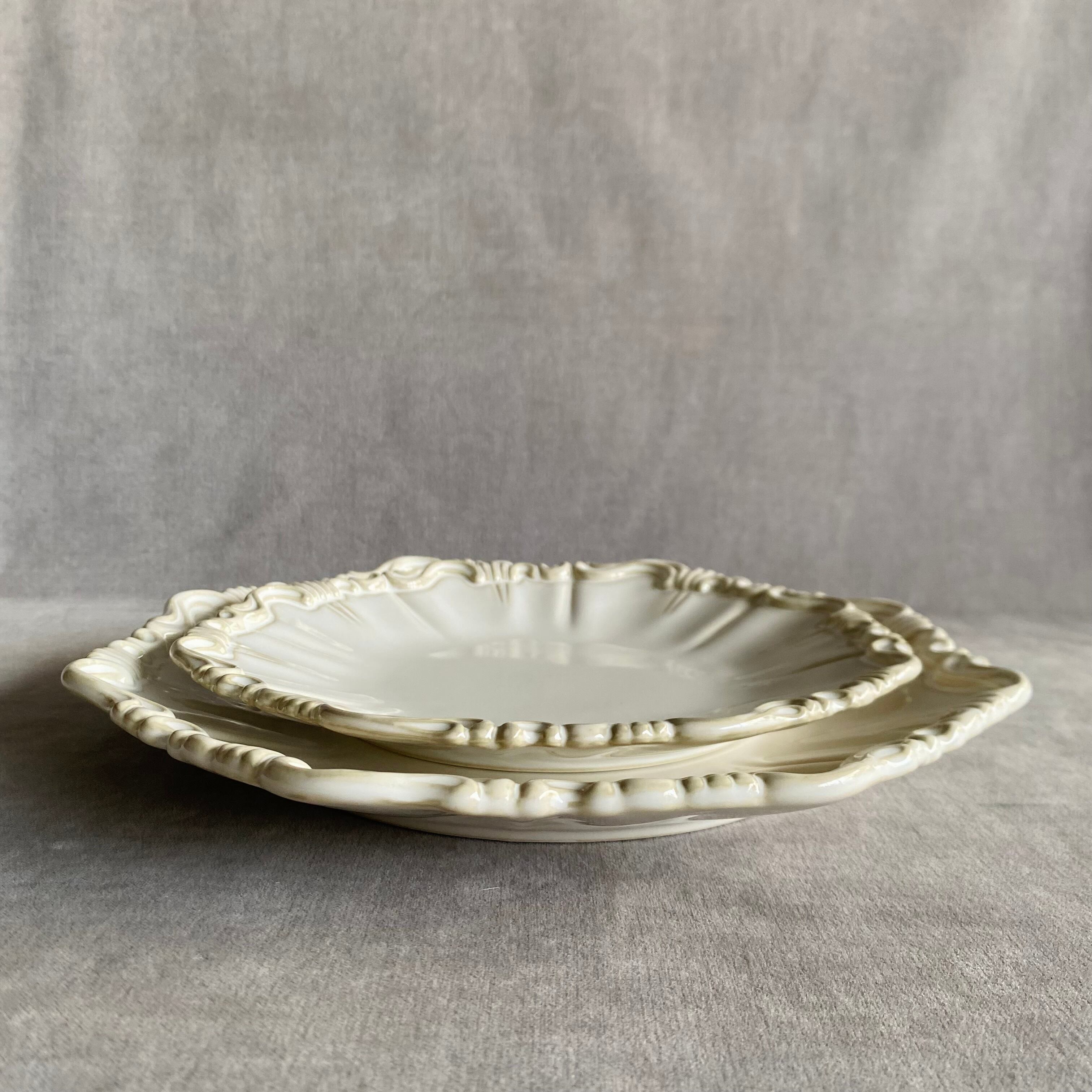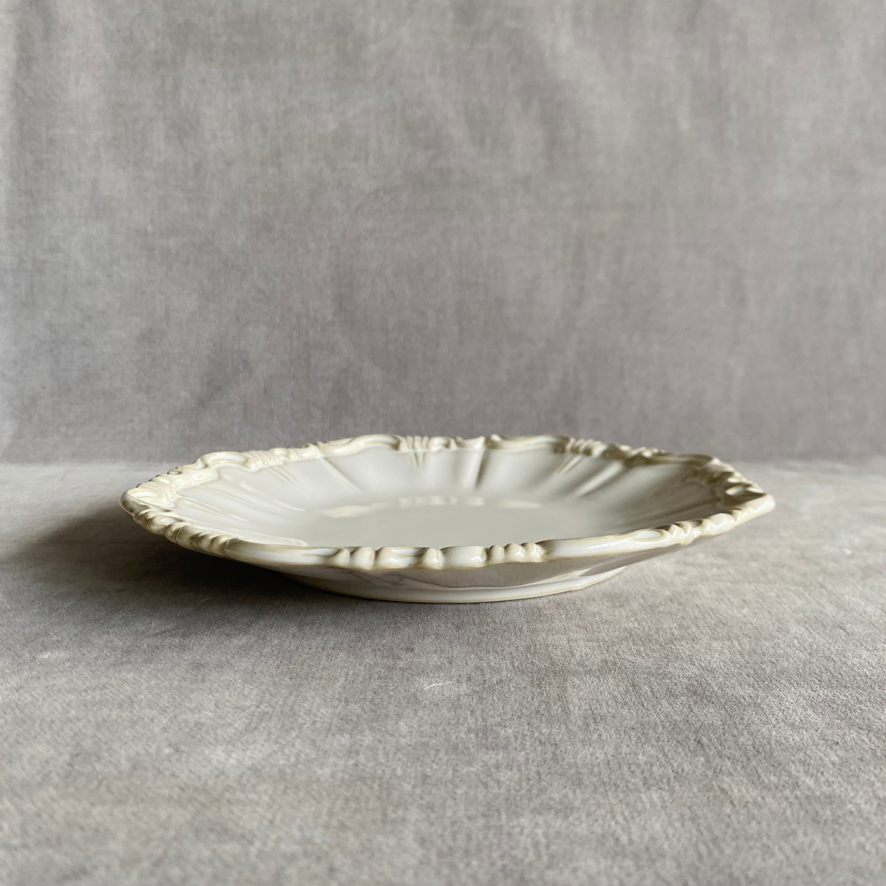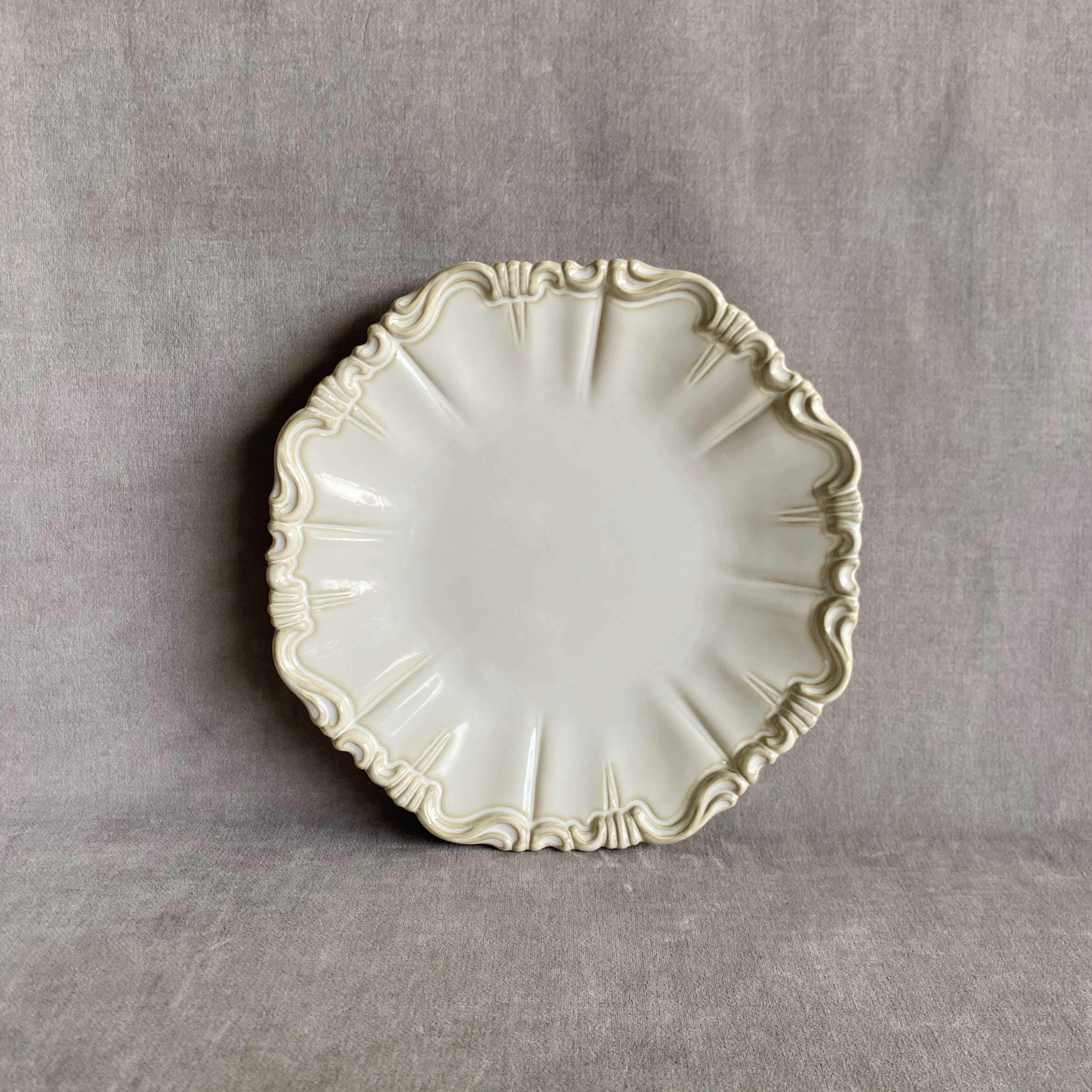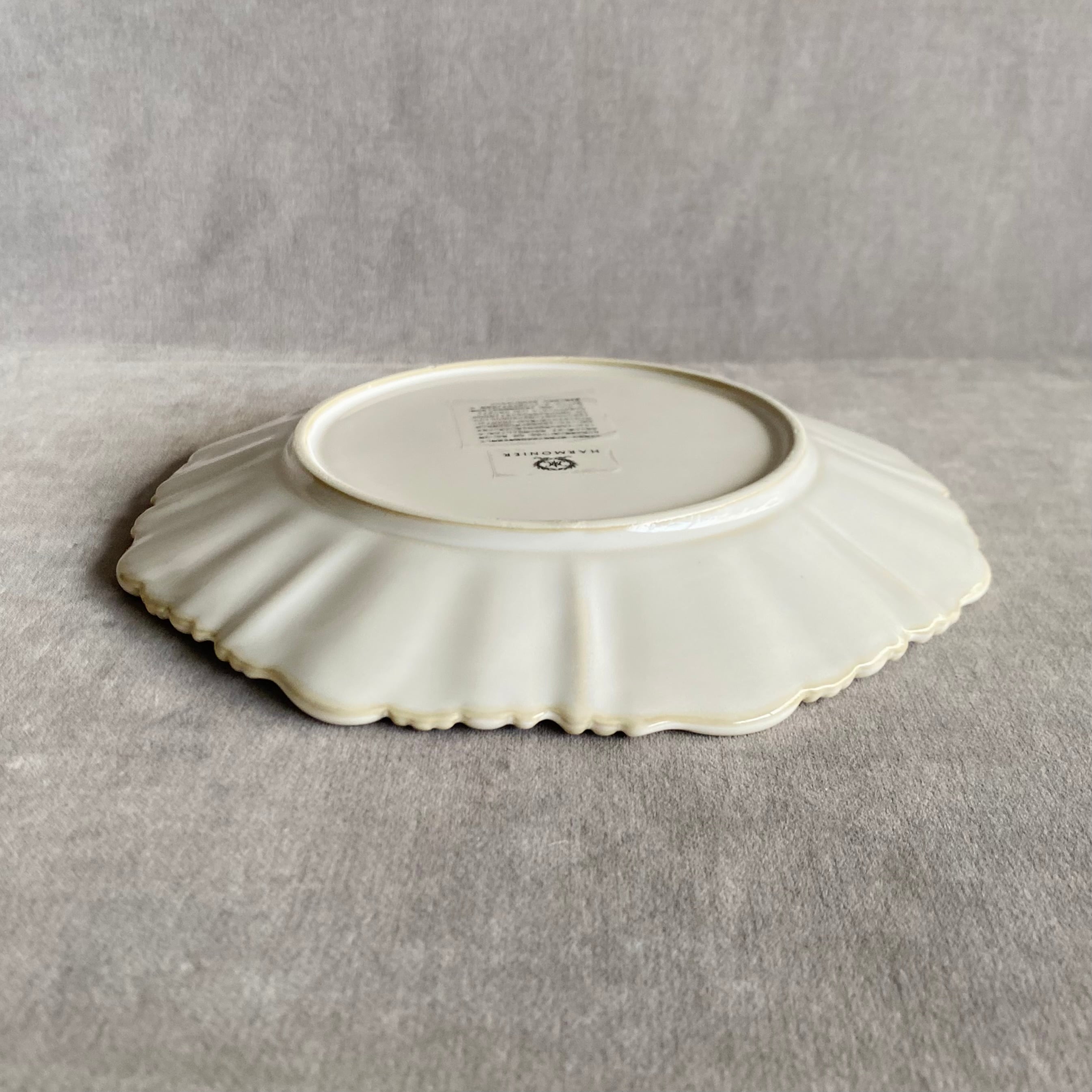 フリルプリーツを付けた可愛いらしいフォルムと縁取りがおしゃれなケーキプレート。