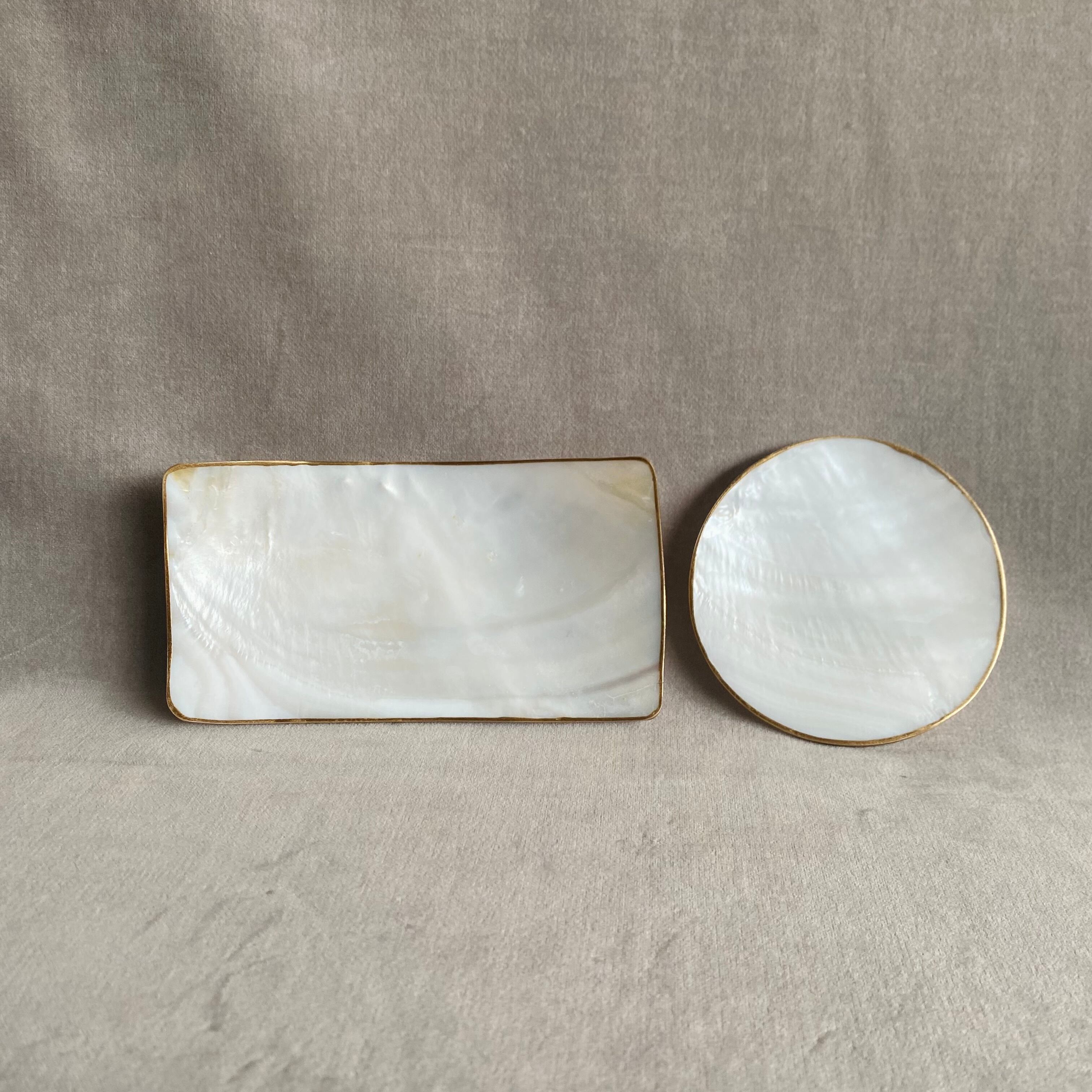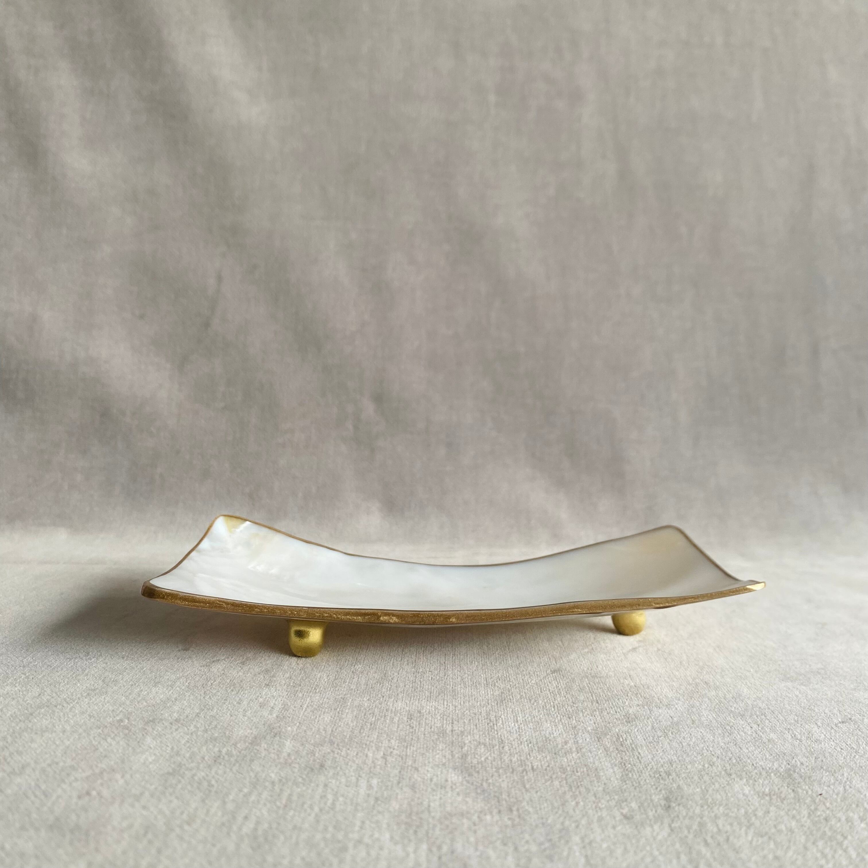 貝を磨き上げて生まれた、繊細なシェルのレクタングルトレー。