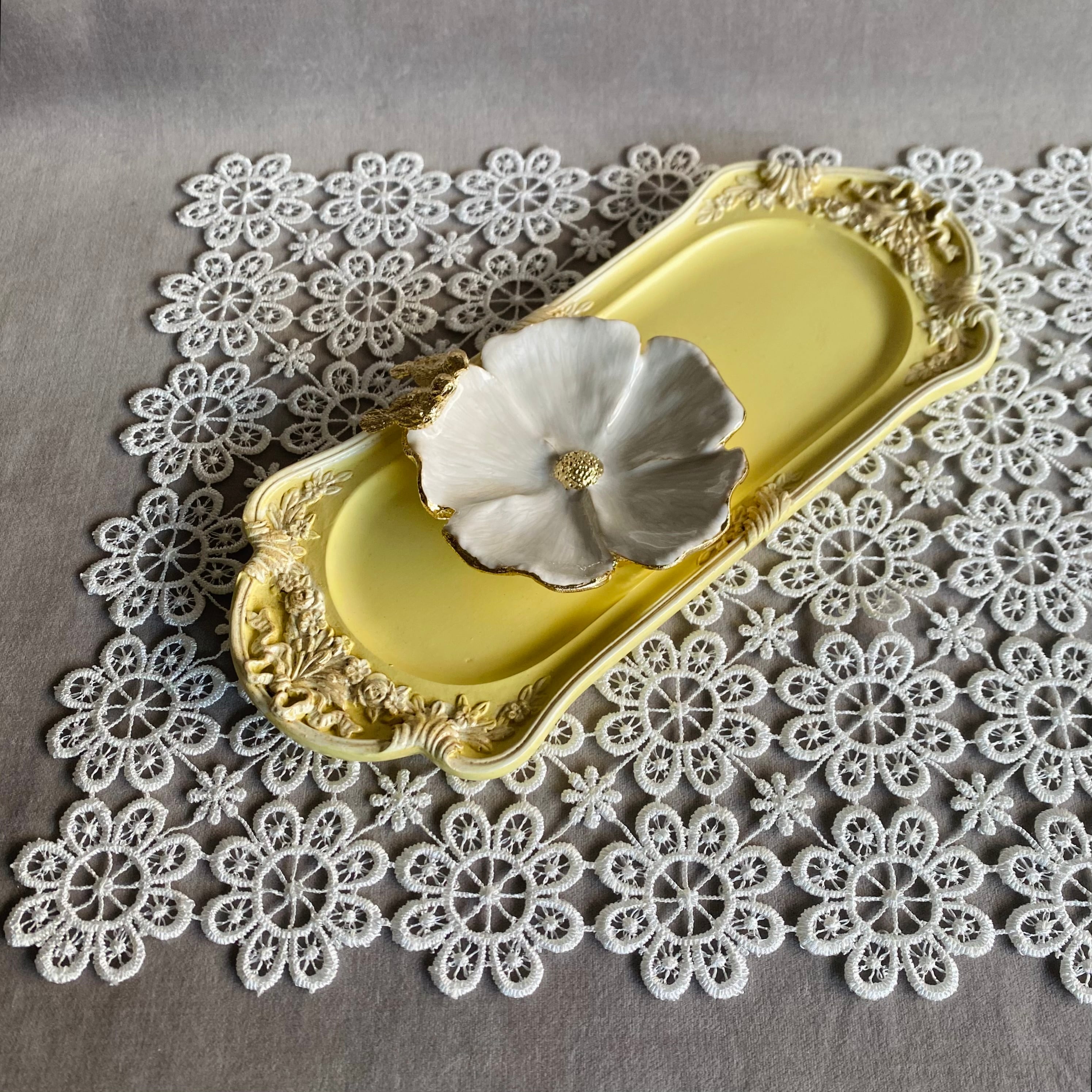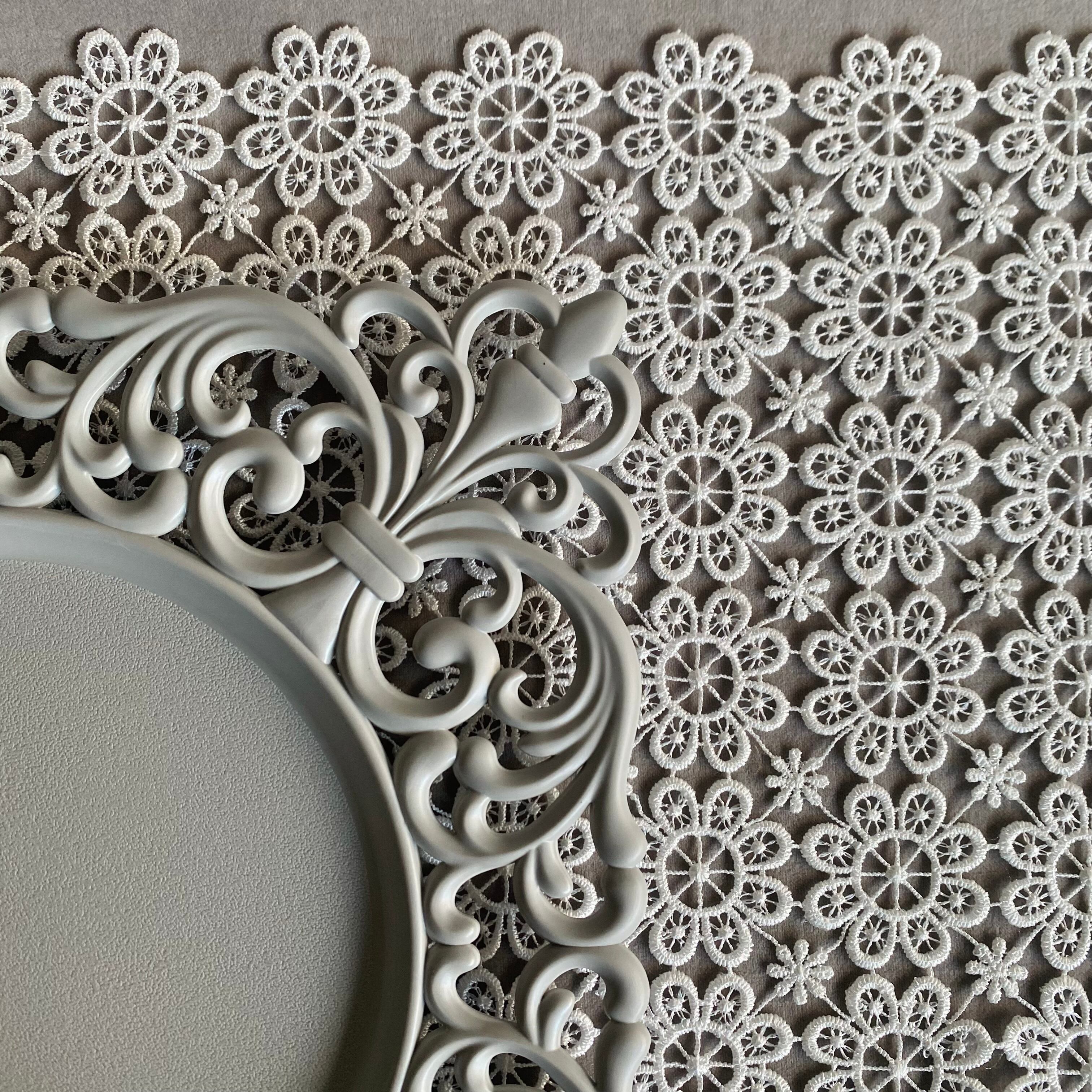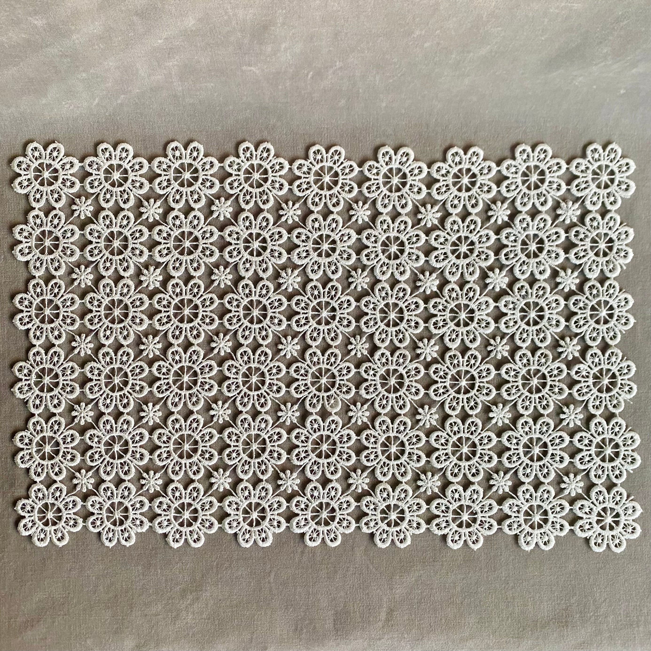 ギュピールレースとは、刺繍の技術を応用した機械レースの一種で、透かし模様や立体感のあるレリーフ状の模様が特徴です。