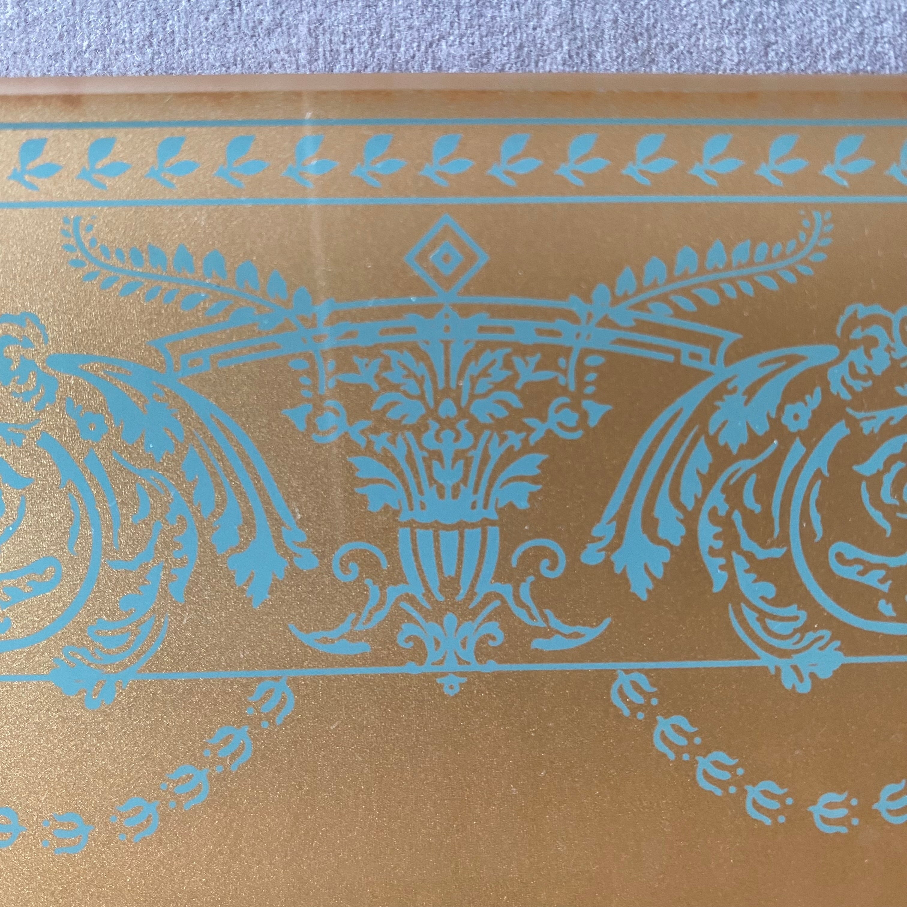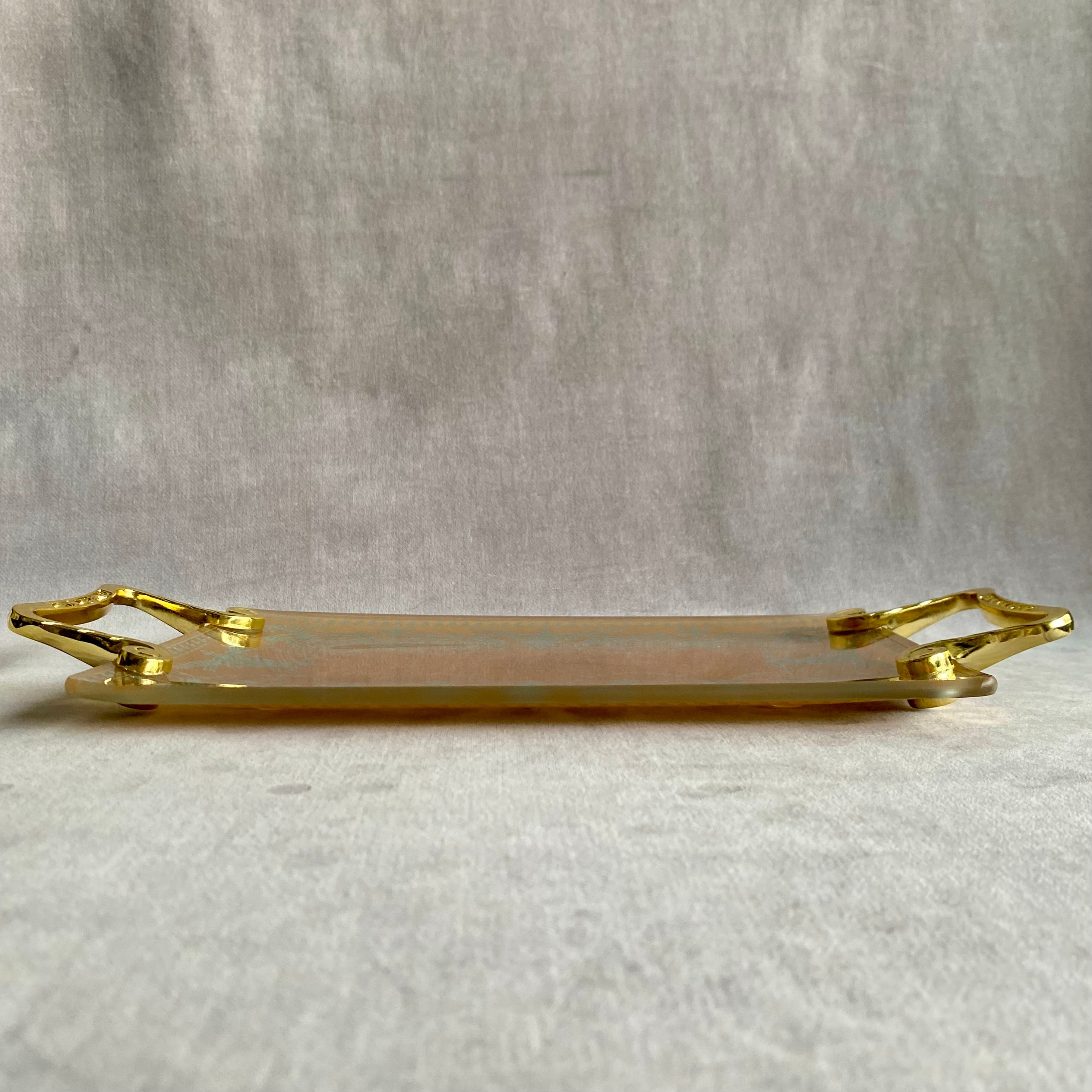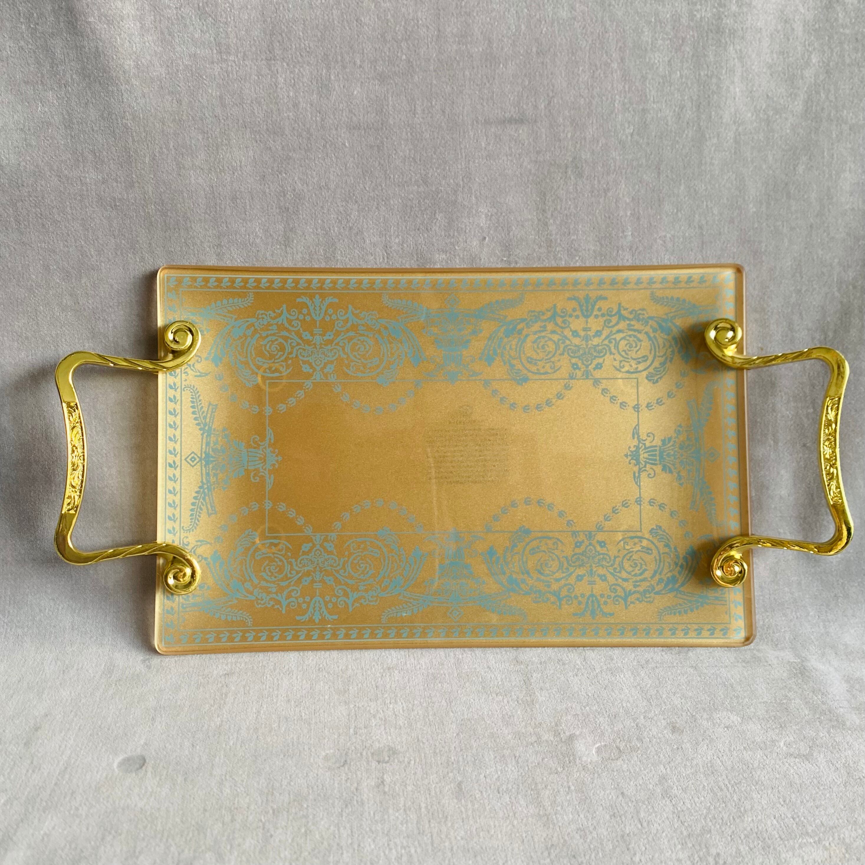 クラシカルなアラベスク模様のガラス皿に、華奢なゴールドのハンドルを合わせたおしゃれなプレート。