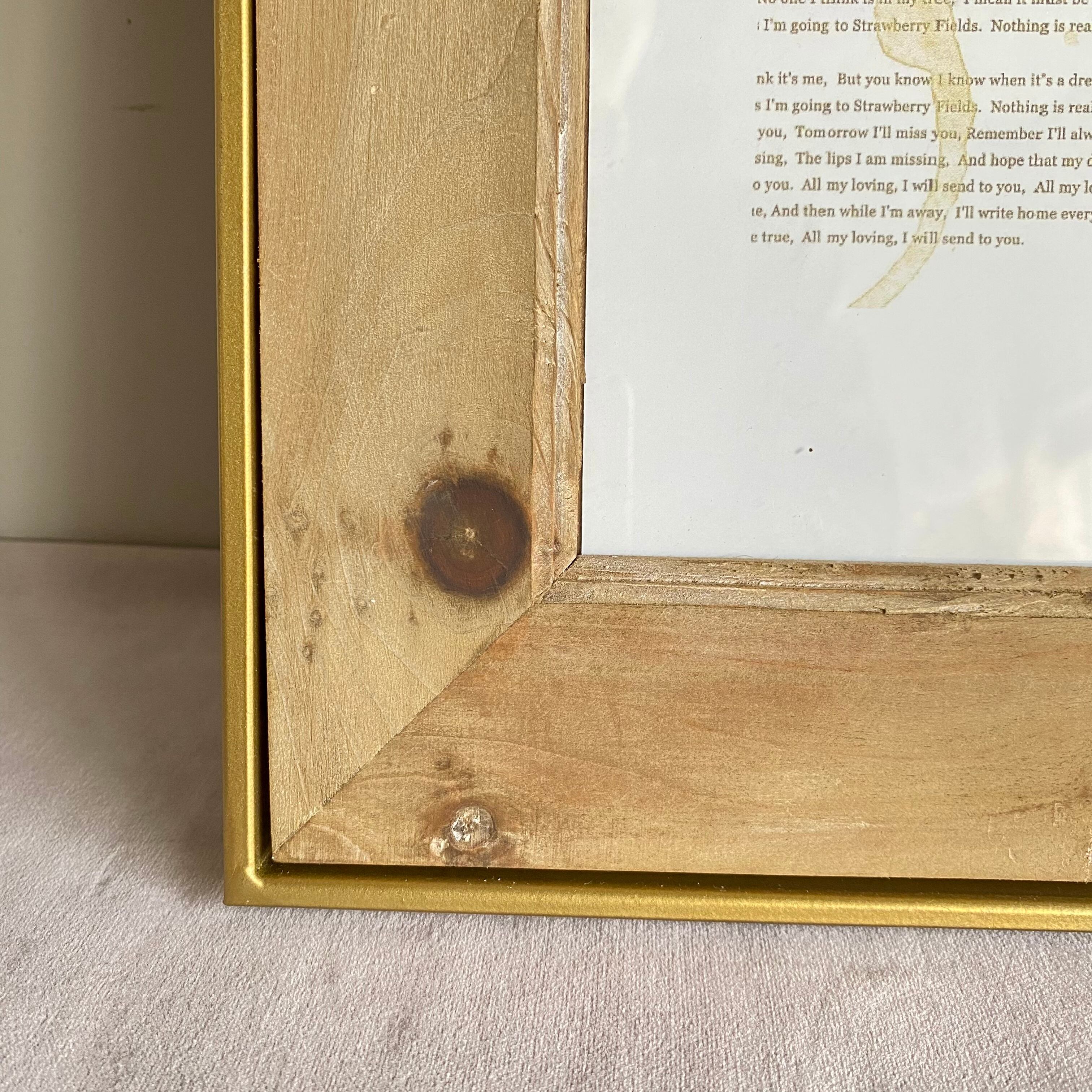 木を囲むゴールドのフレームが上品さもあり、入れた写真やアートをセンス良く飾れます。