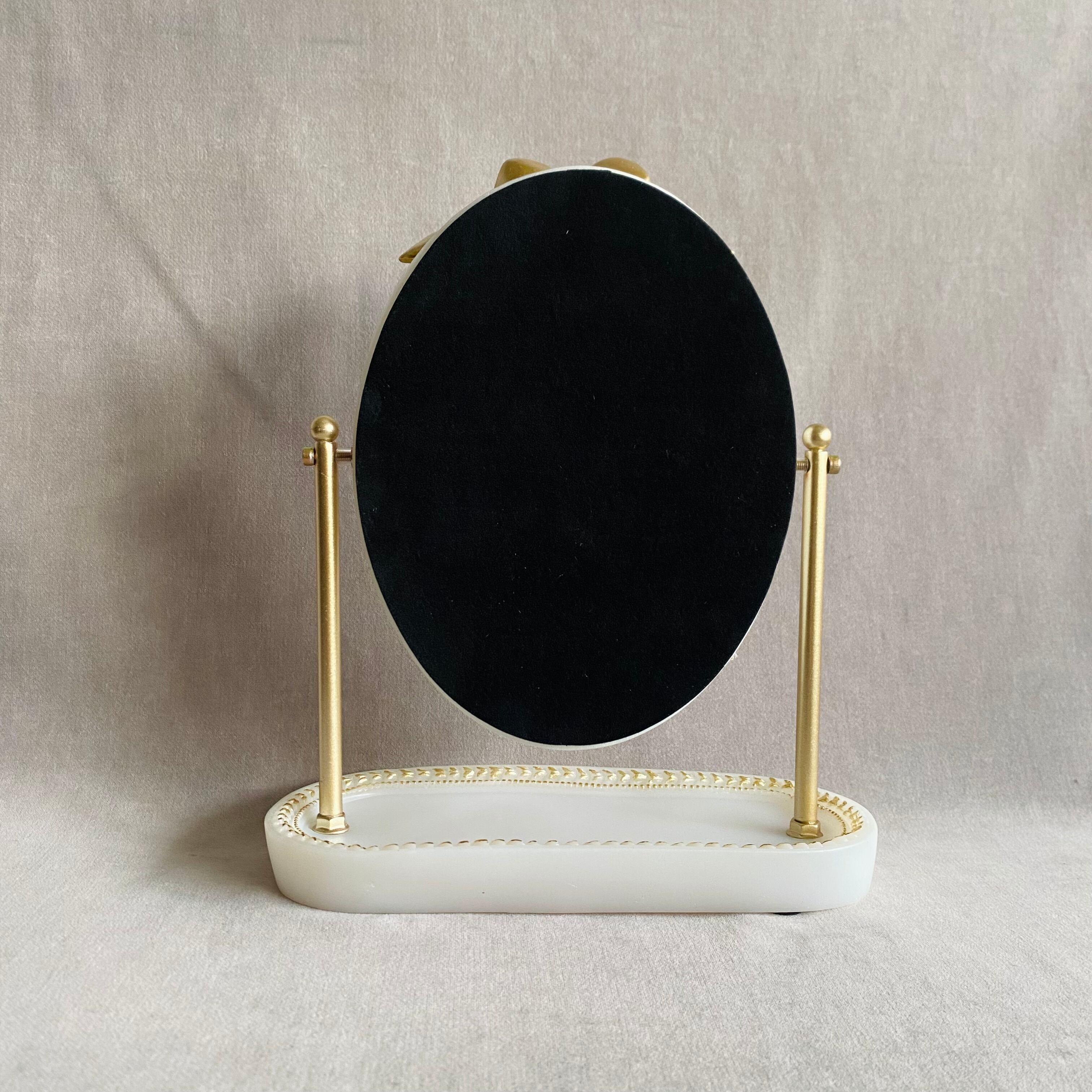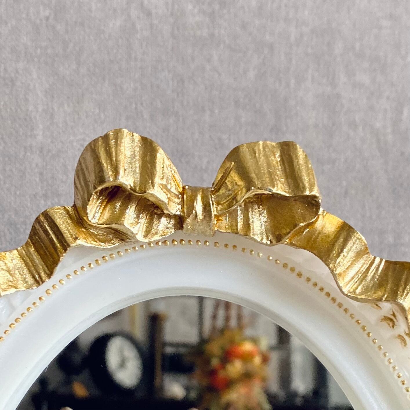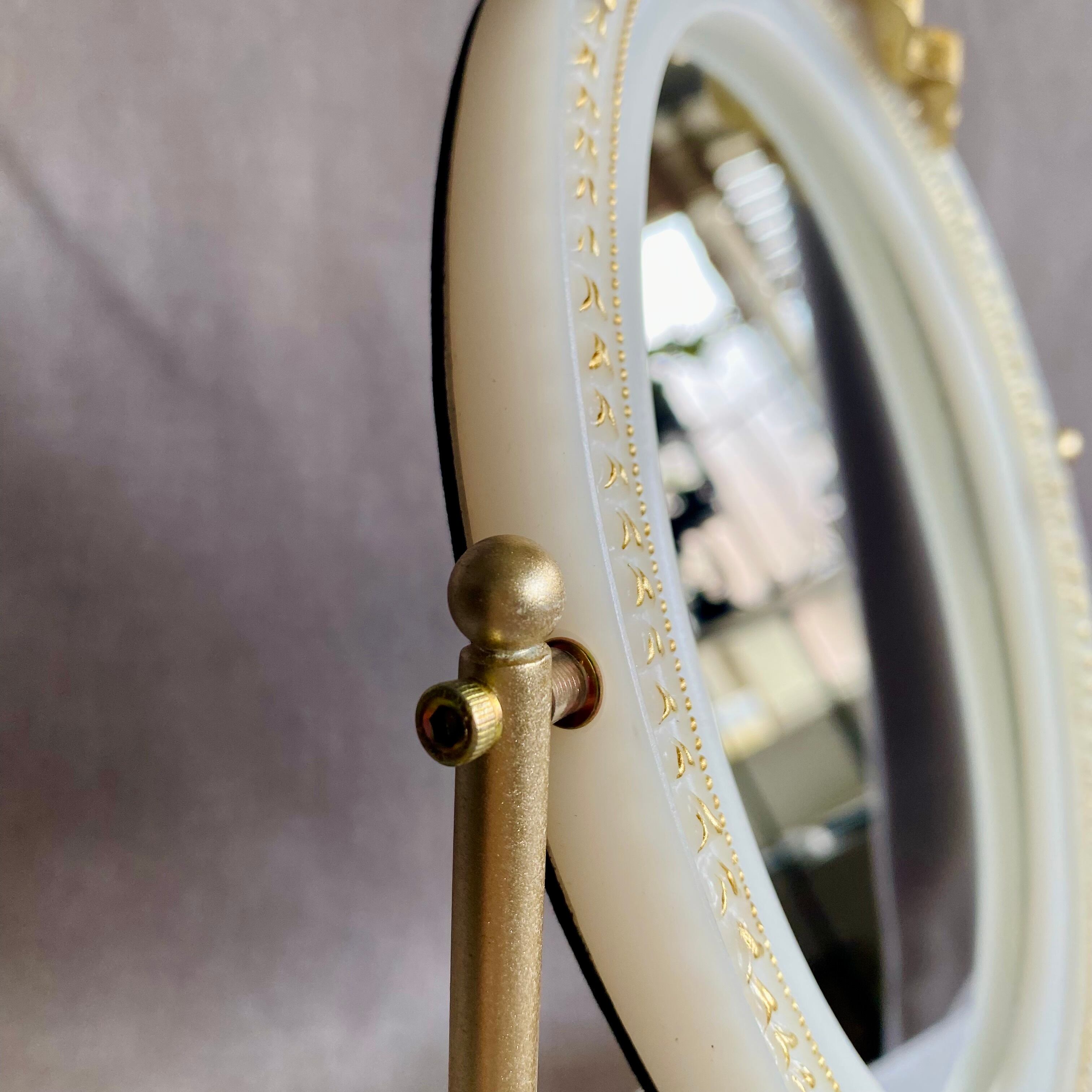 ゴールドと大理石風ホワイトのカラーリングが上品で華やかな雰囲気で、身支度が楽しくなる鏡です。