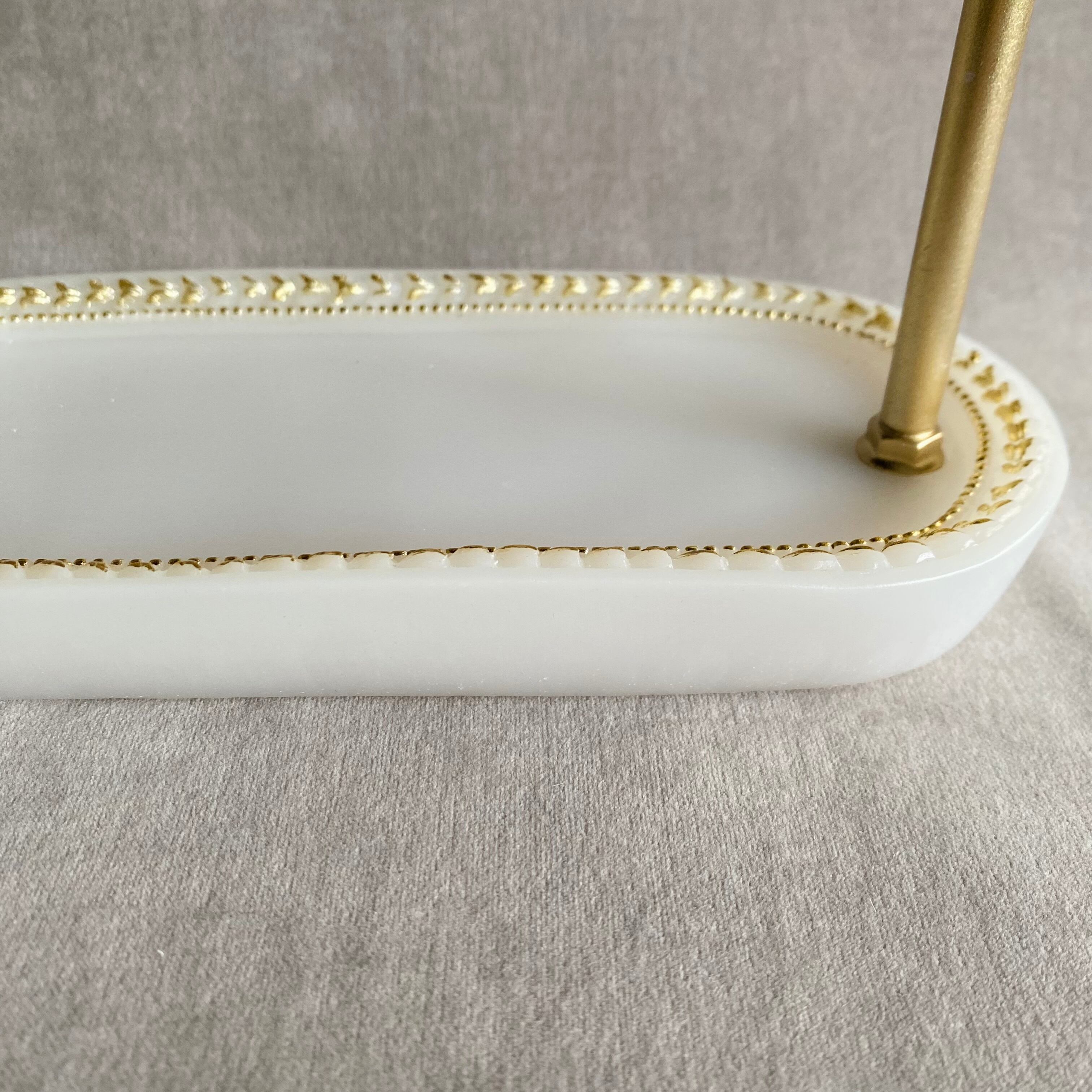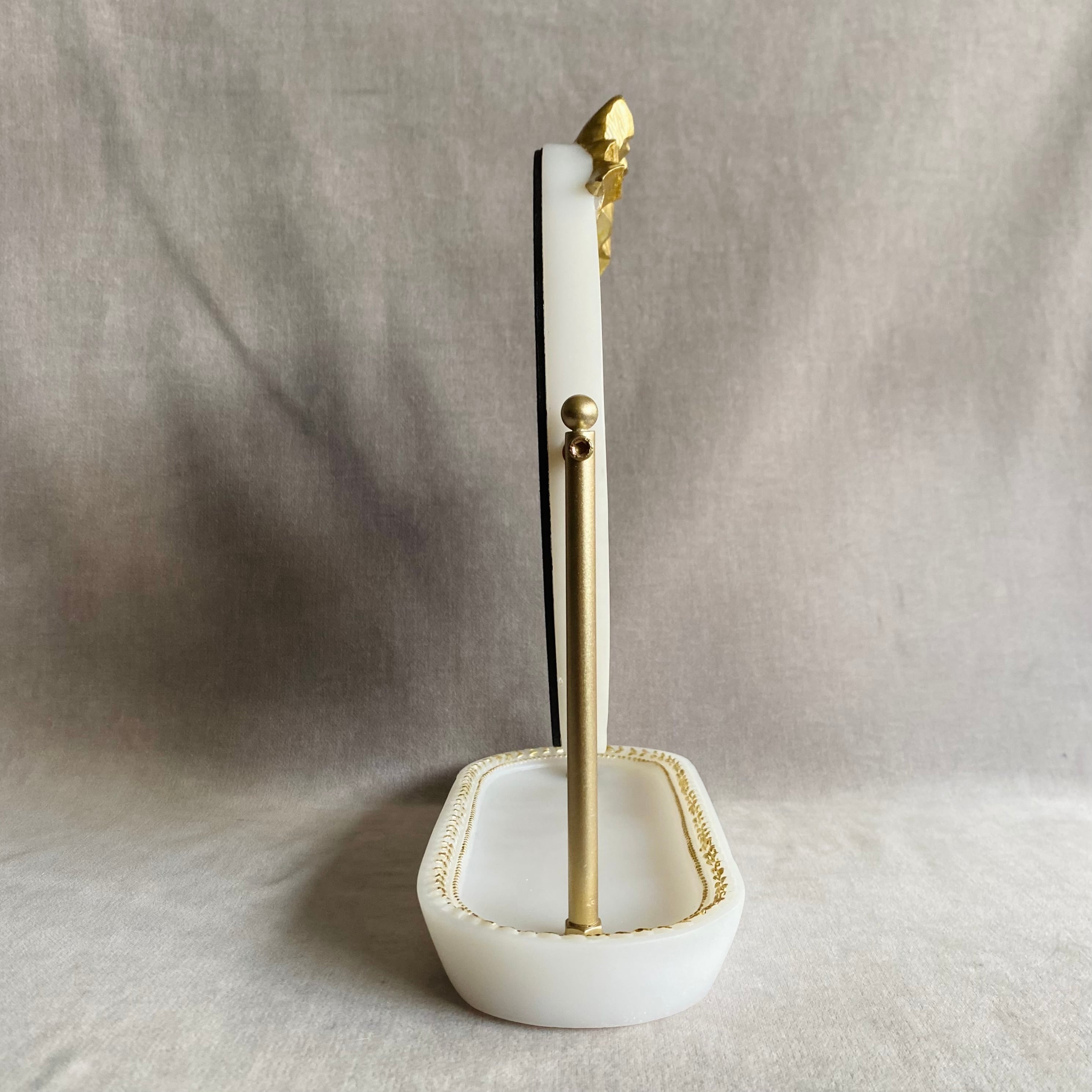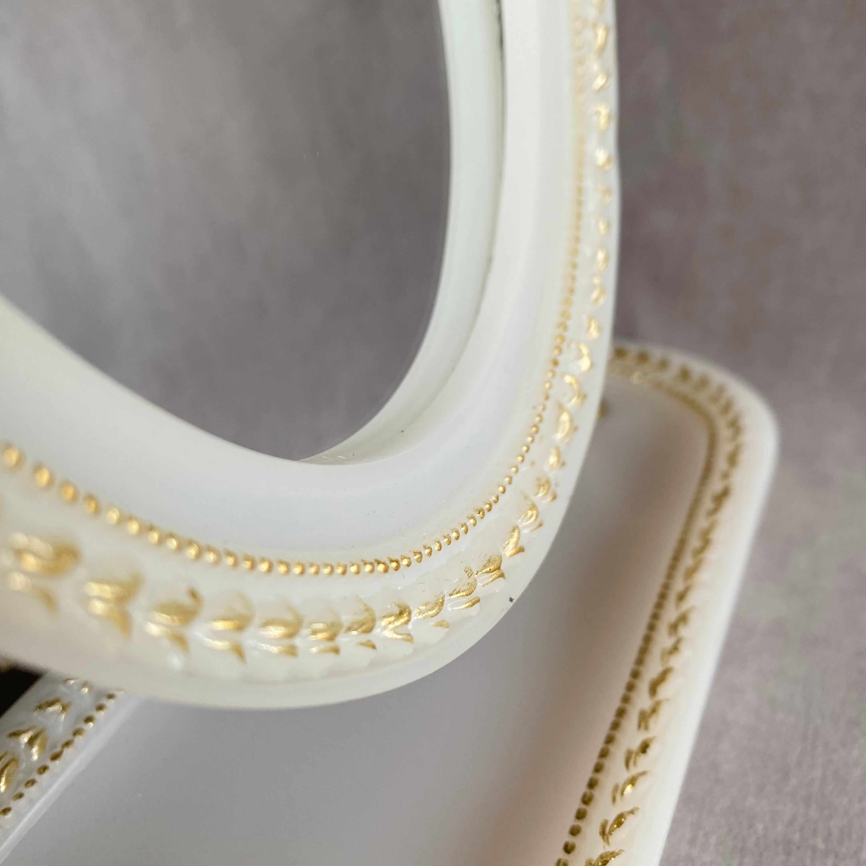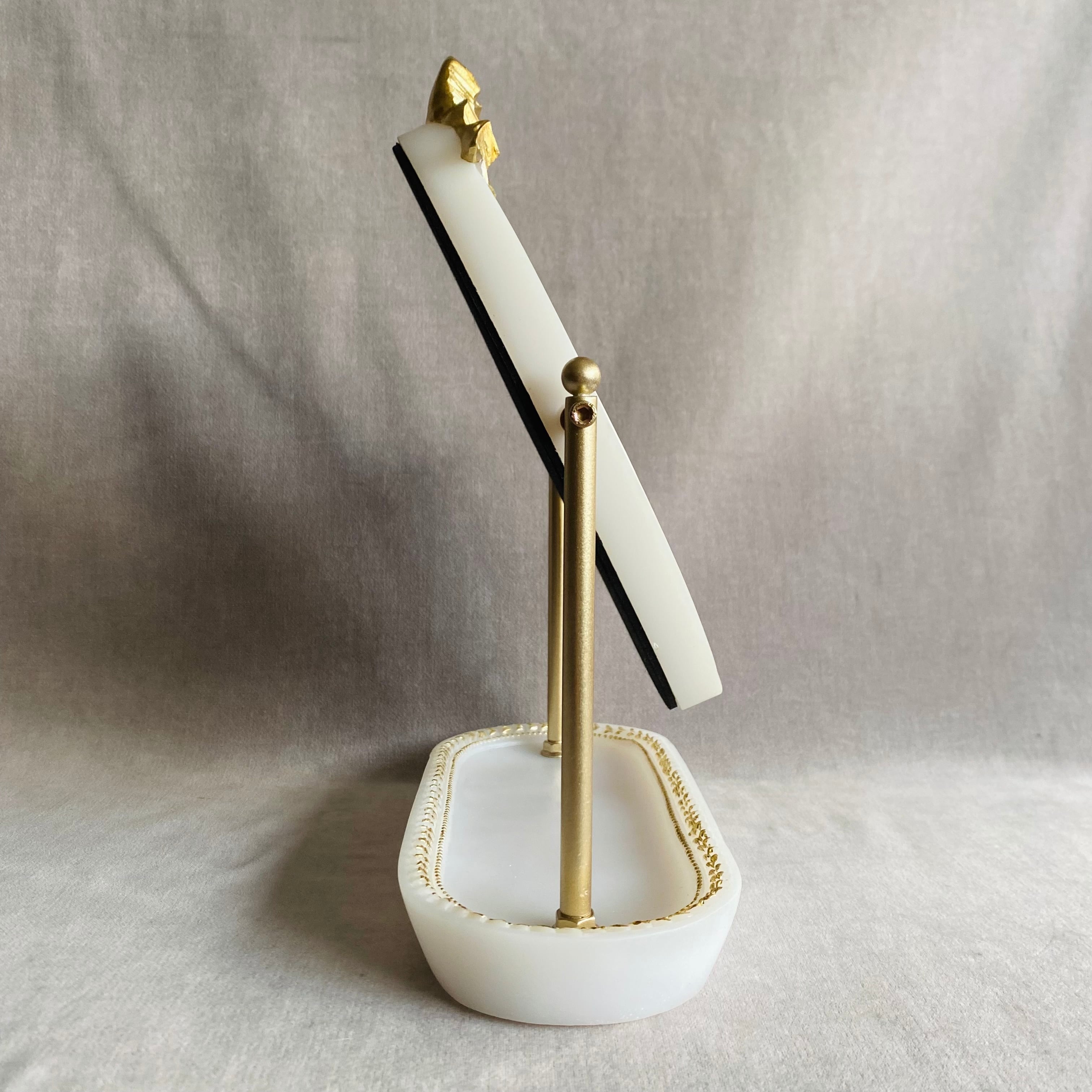 ゴールドと大理石風ホワイトのカラーリングが上品で華やかな雰囲気で、身支度が楽しくなる鏡です。