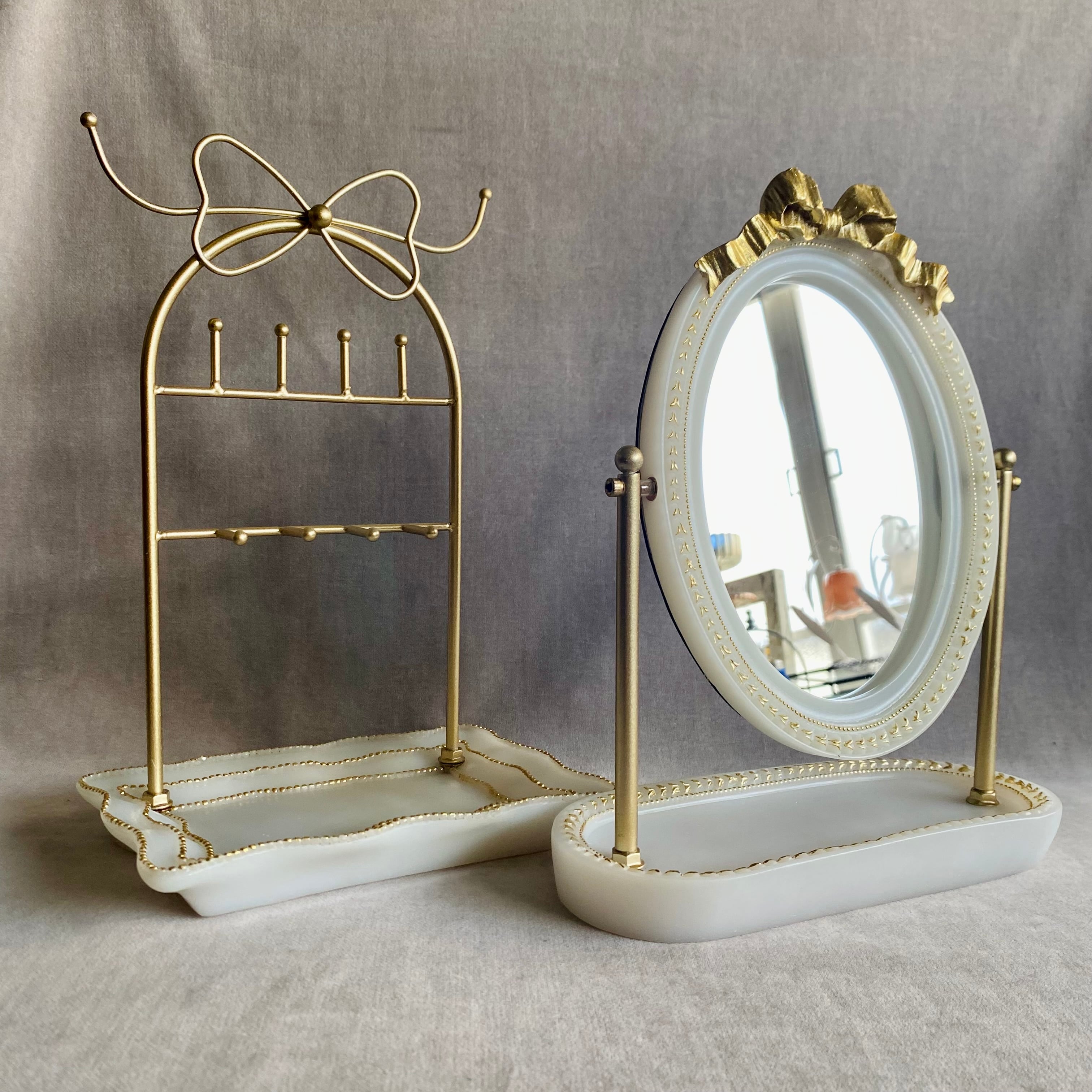 大理石風のトレイがベースになっていて、ネックレスやブレスレットにリングやピアスなどたっぷり収納できます。