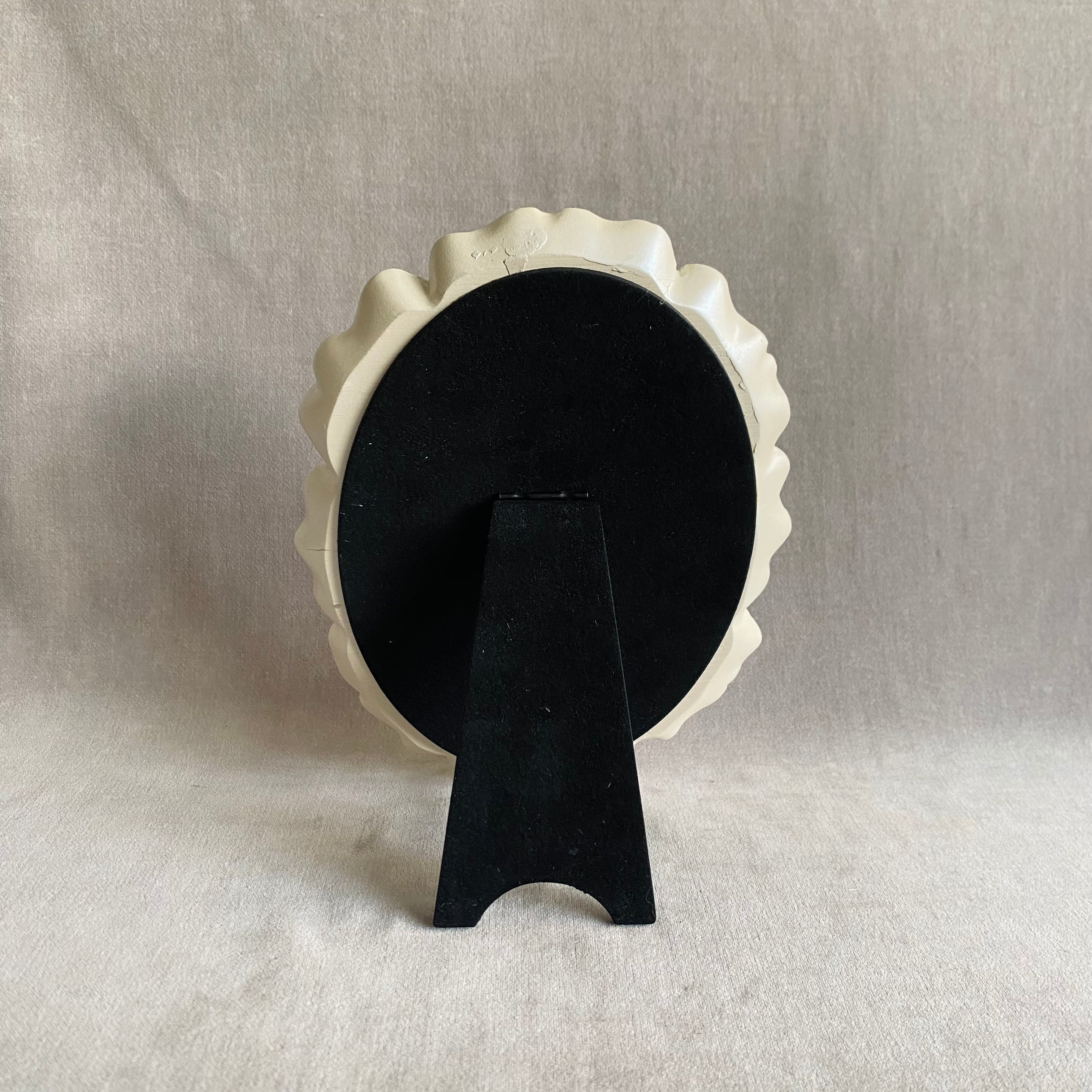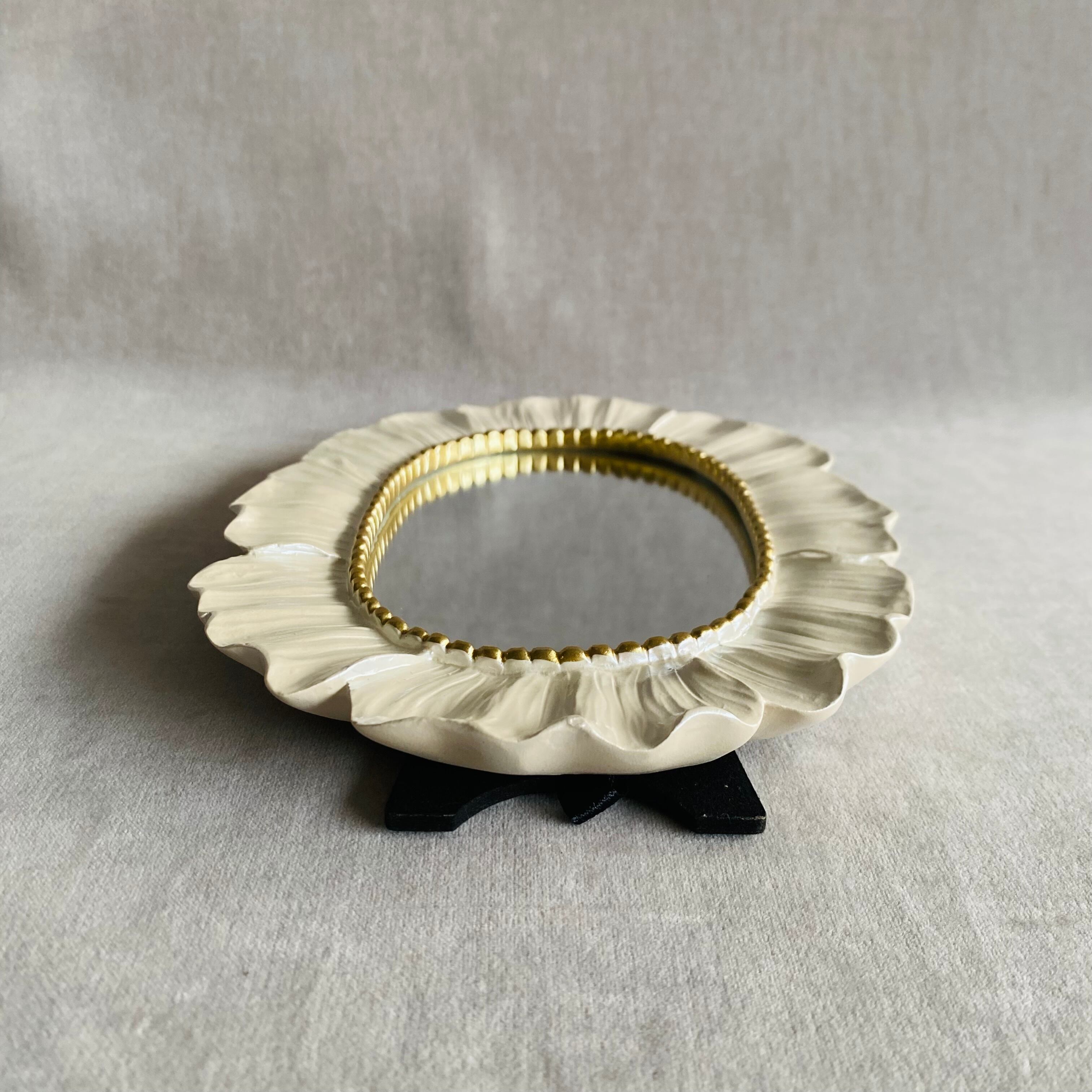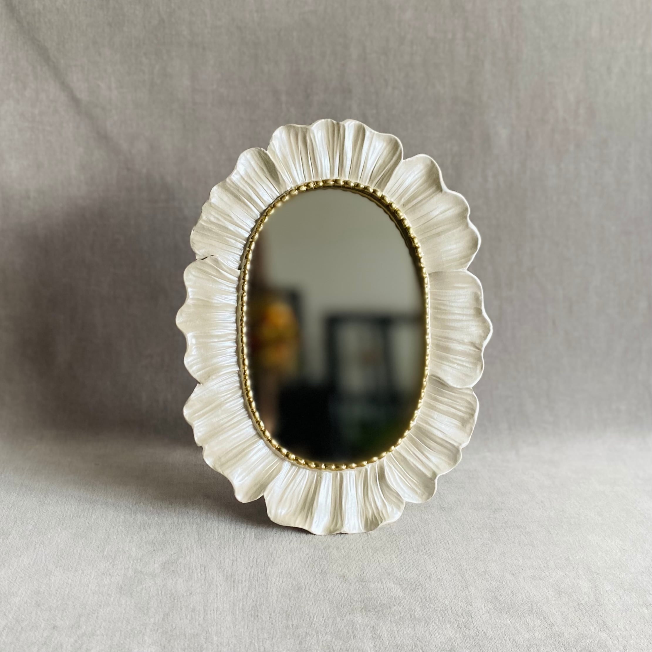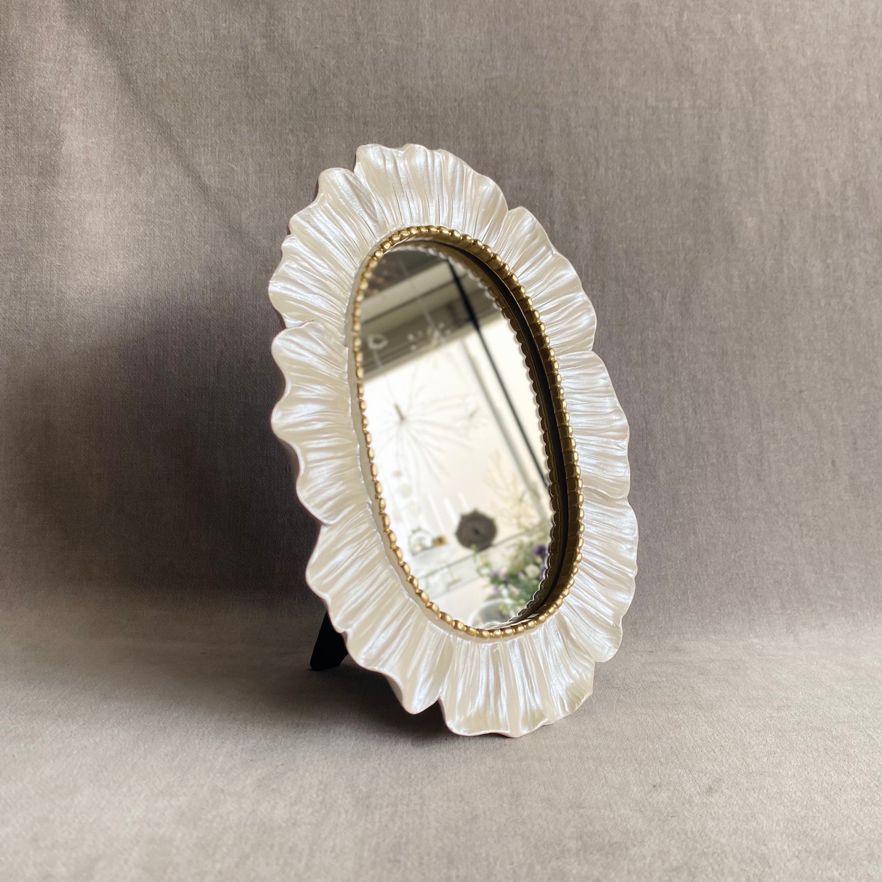 花びらのようなフリルのフレームがかわいいスタンドミラー。