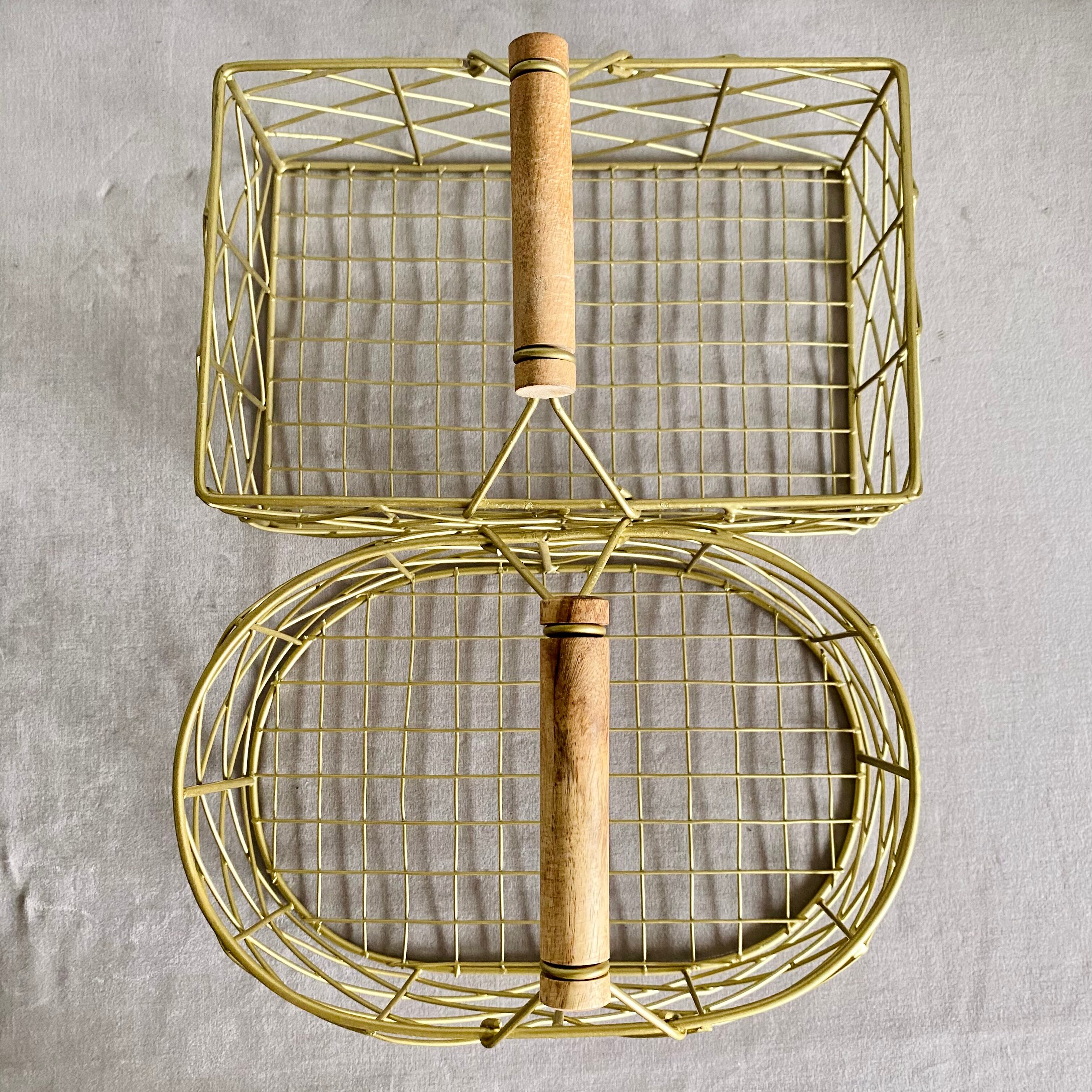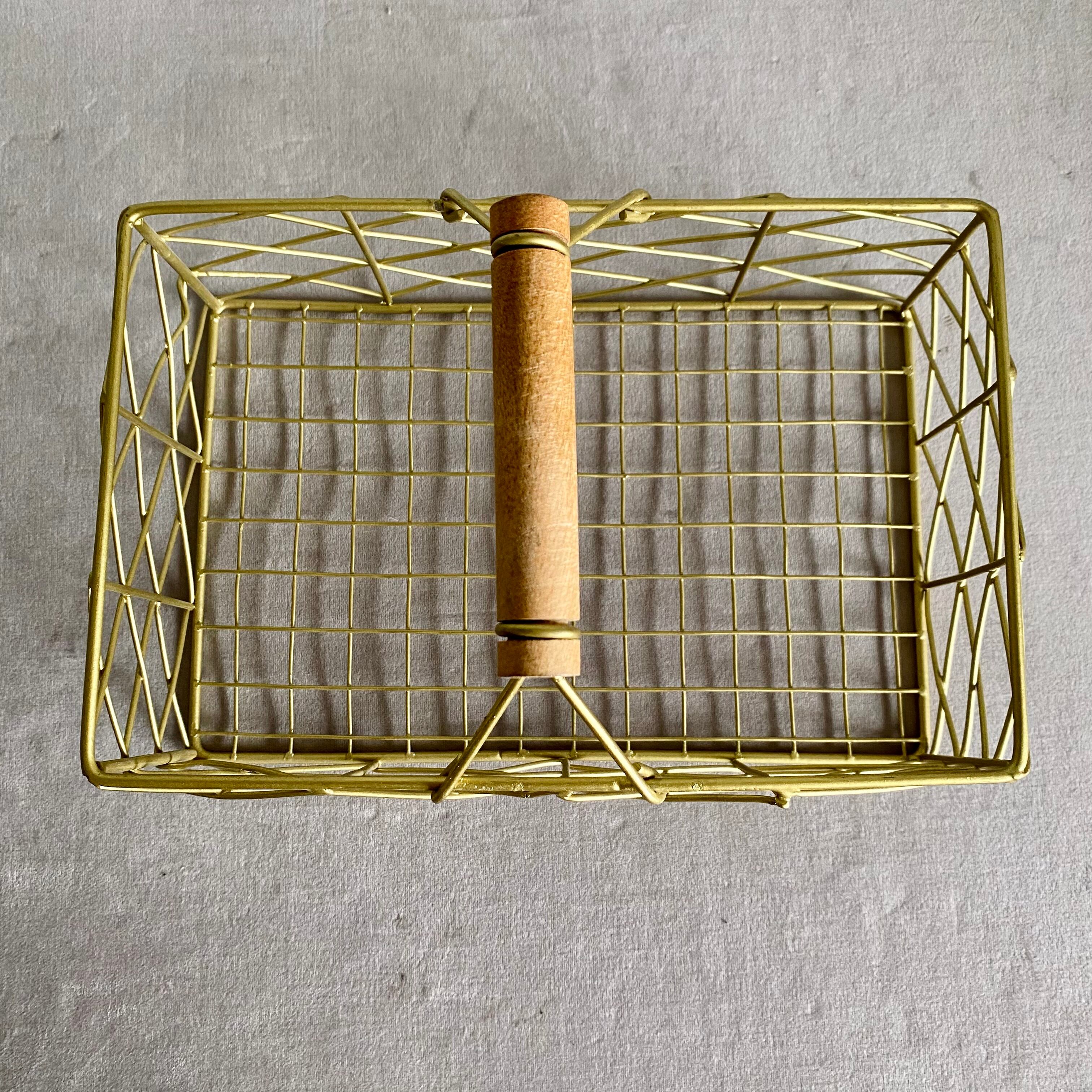 真鍮カラーのバスケットはシンプルながら上品で、持ち手もウッドなので高級感もあります。
