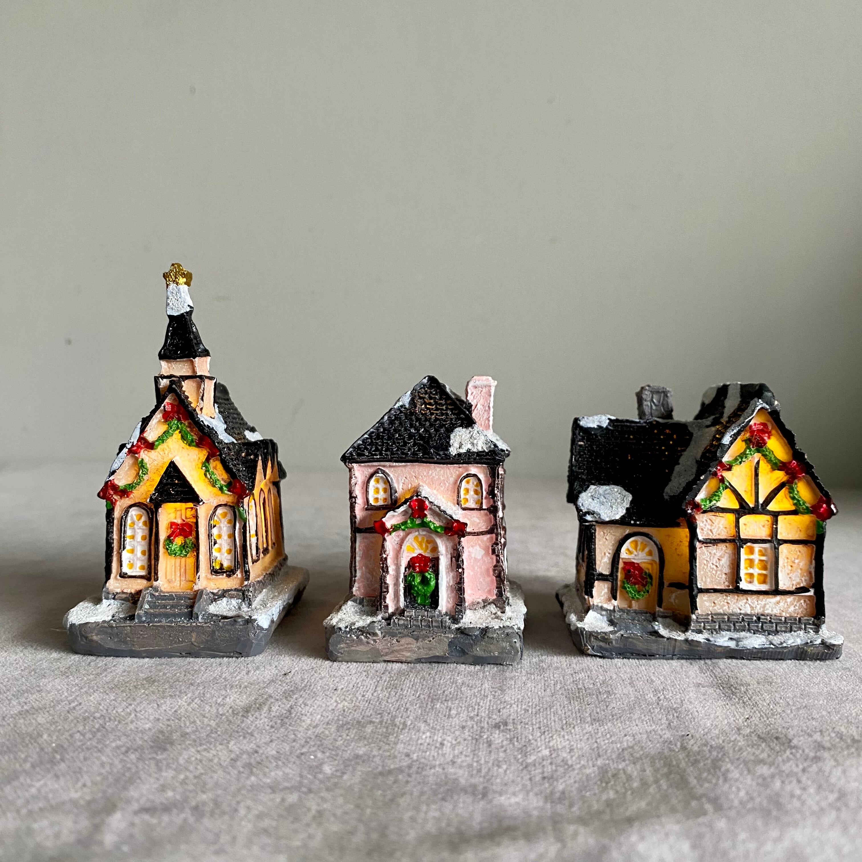 ヨーロッパの街並みをイメージしたミニチュアハウスのLEDライト付きクリスマスオブジェ。
