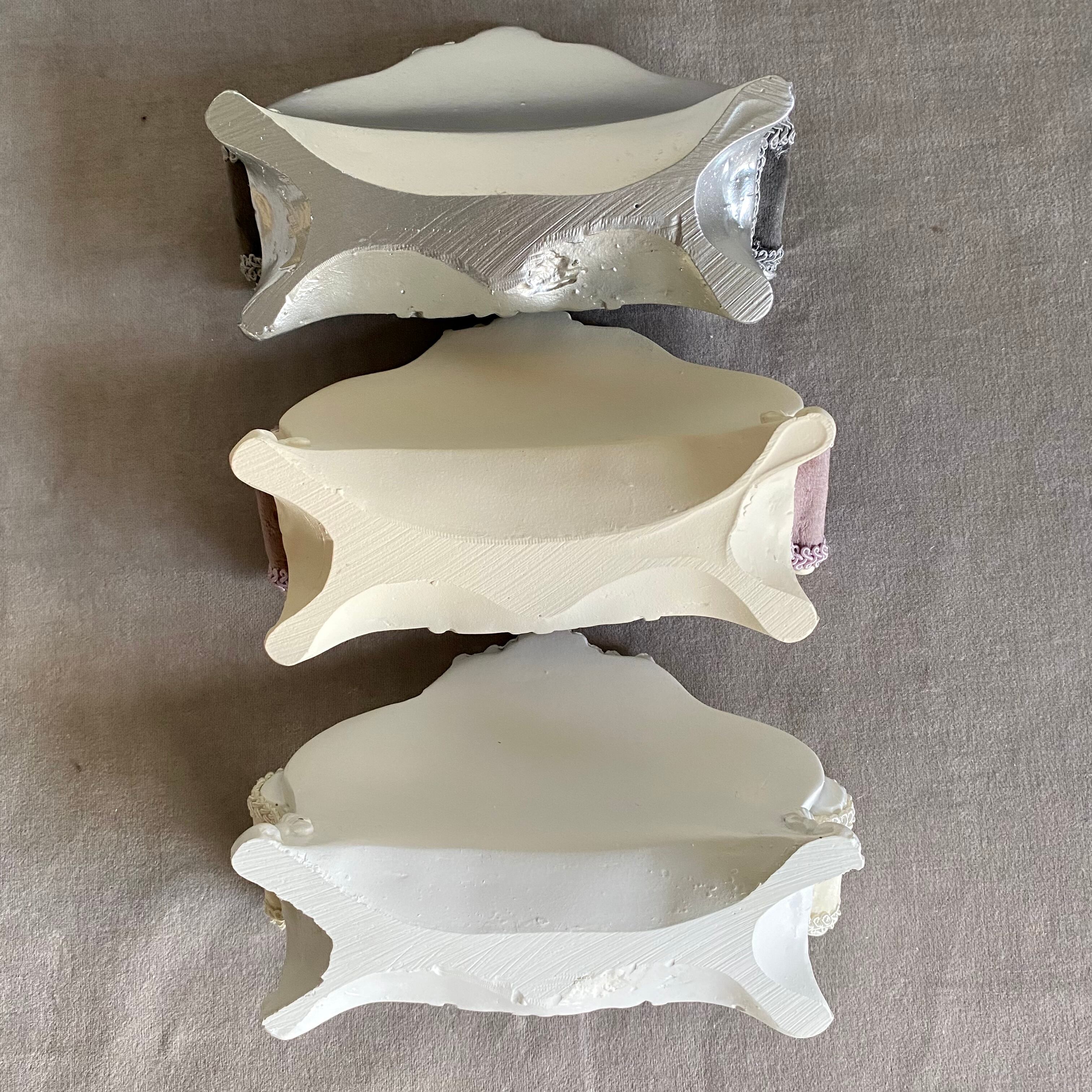 ソファ土台のカラーはクッションの色に合わせて、アイボリーは真っ白なホワイトカラーの土台、パープルはアイボリーカラーの土台、グレーはシルバーカラーの土台となっています。