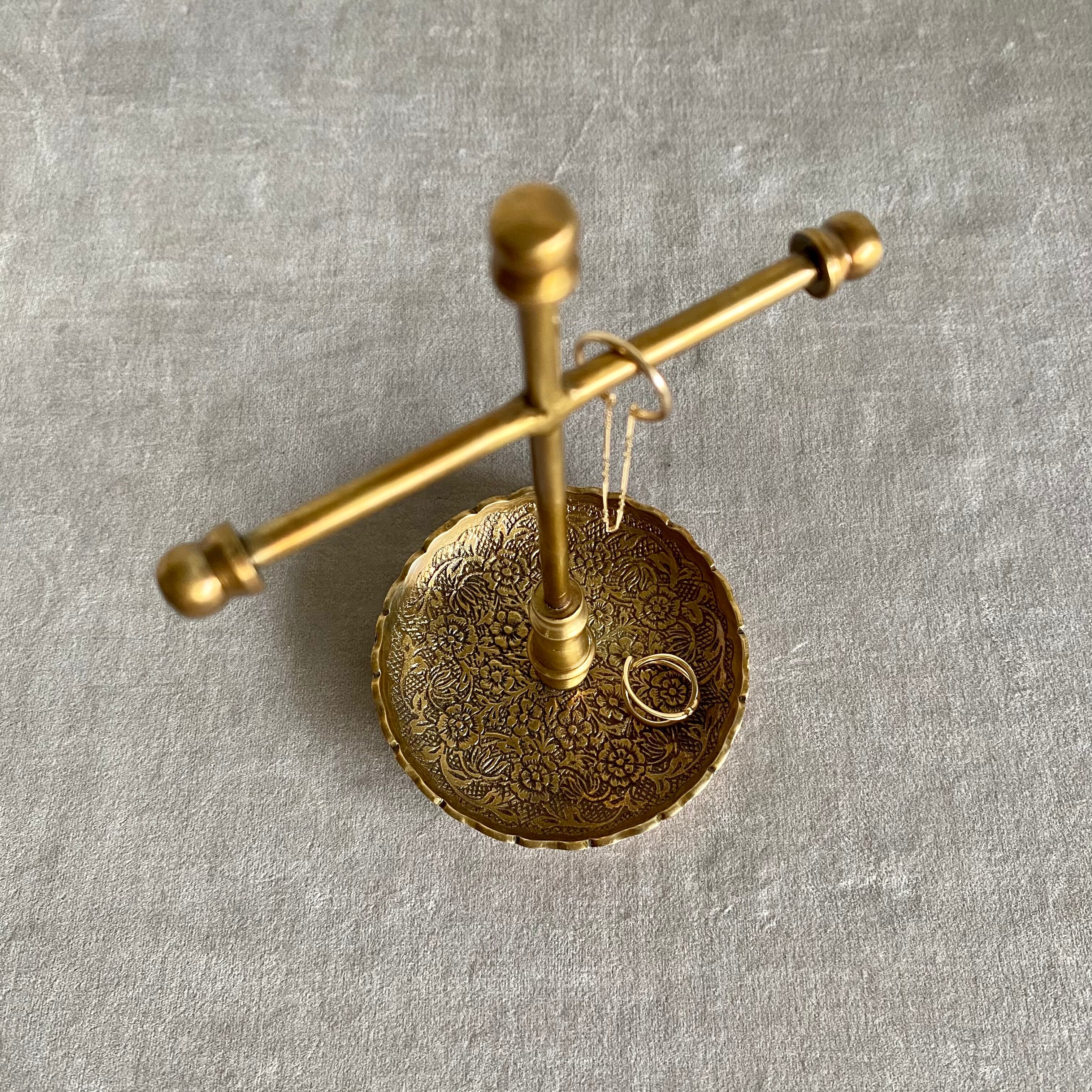 トレイ付きのインド製ブラスのアクセサリースタンド。