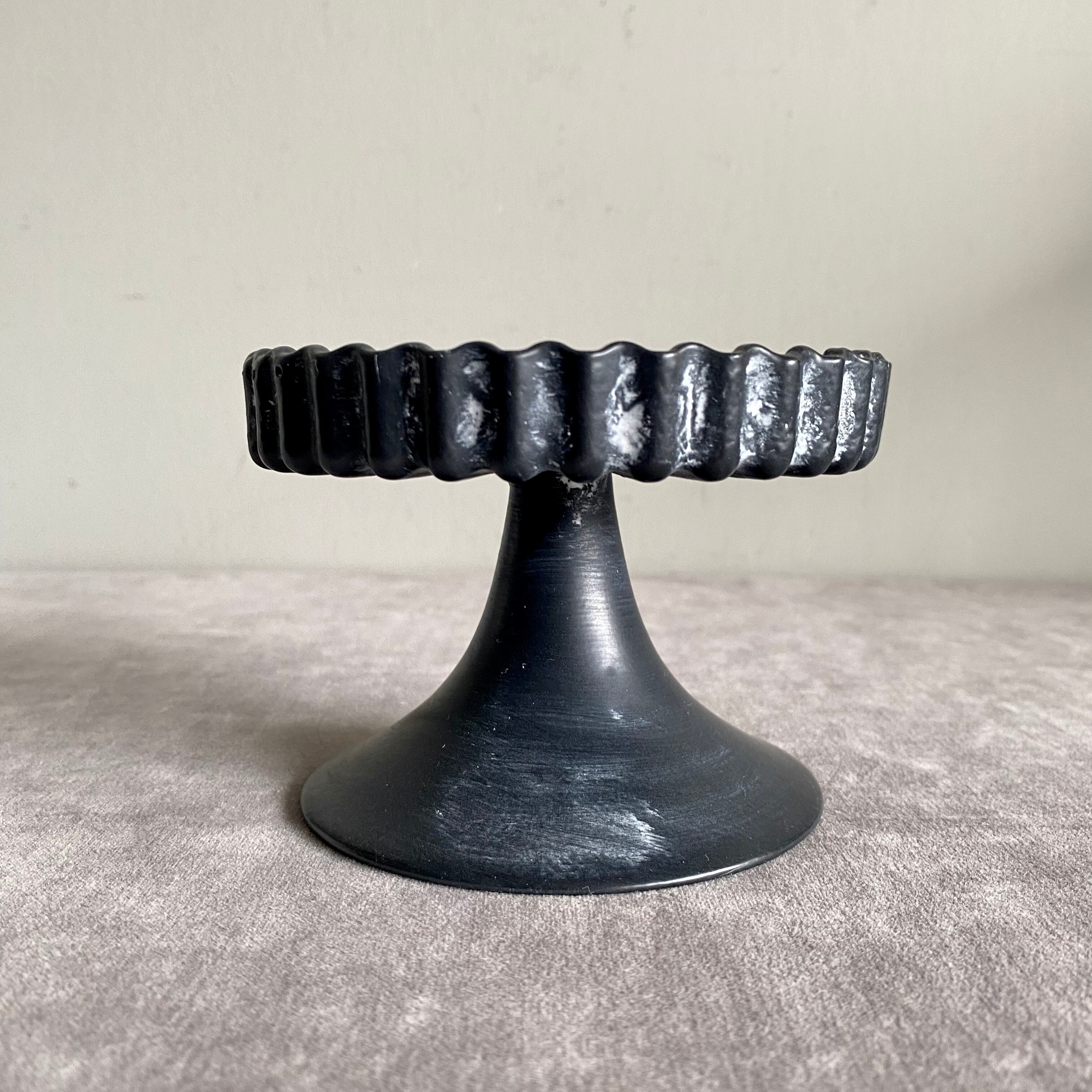 マットなブラックカラーに白のエイジング塗装がアンティーク感を醸し出している、重厚感あるクラッシックなデザインのスタンドです。