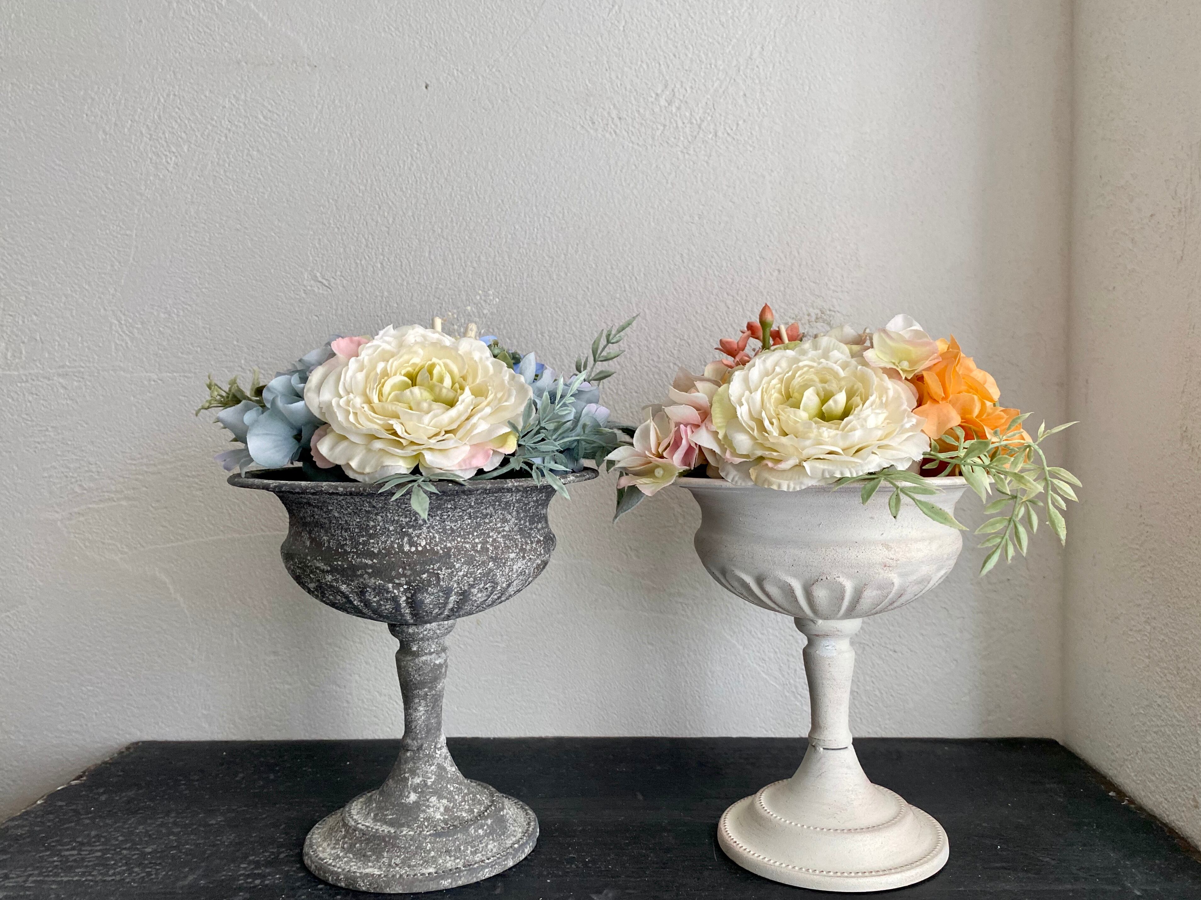 フラワーアレンジメントのベースとして使われるブリキ製カップ。