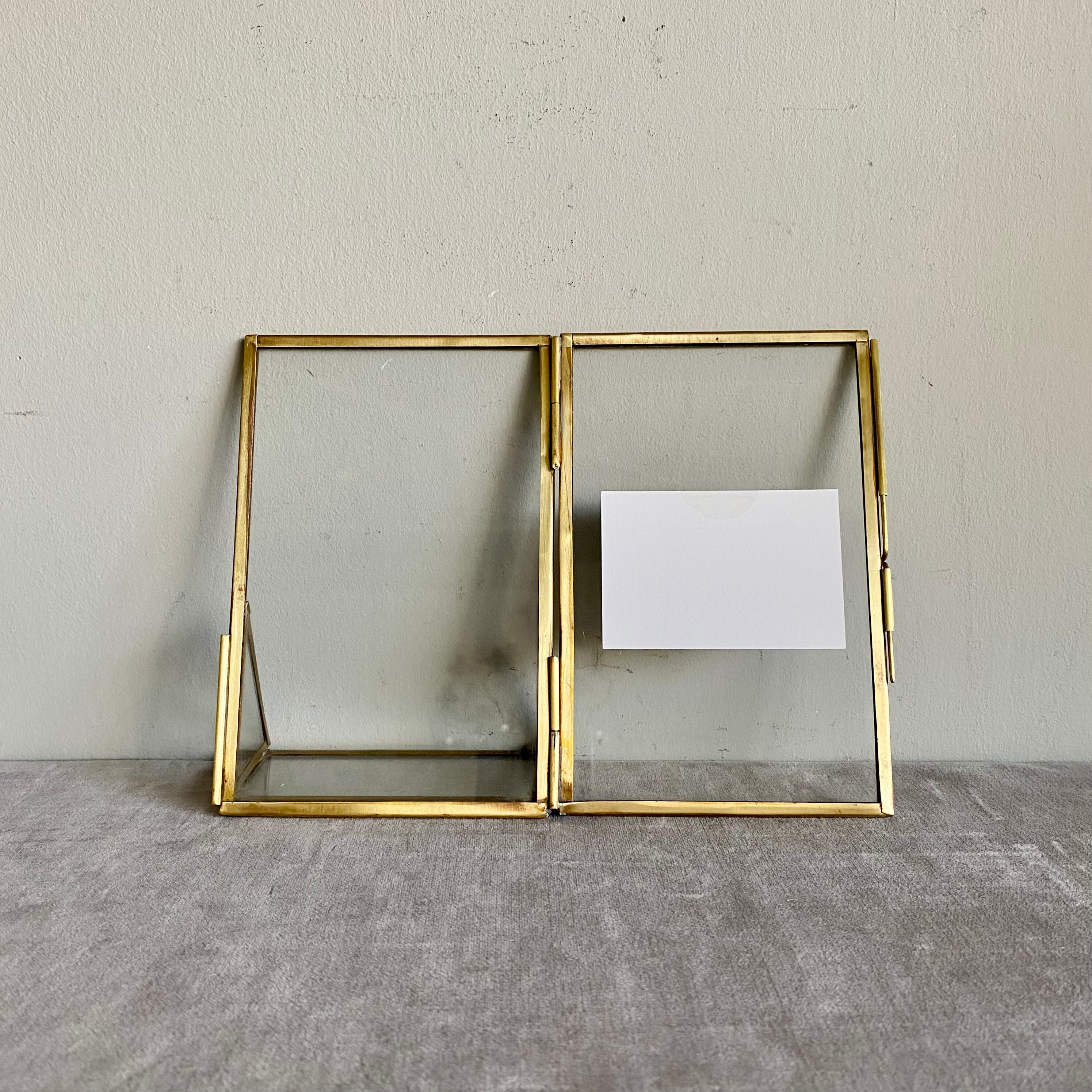 ブラスとガラスの異素材を組み合わせたフォトフレーム。