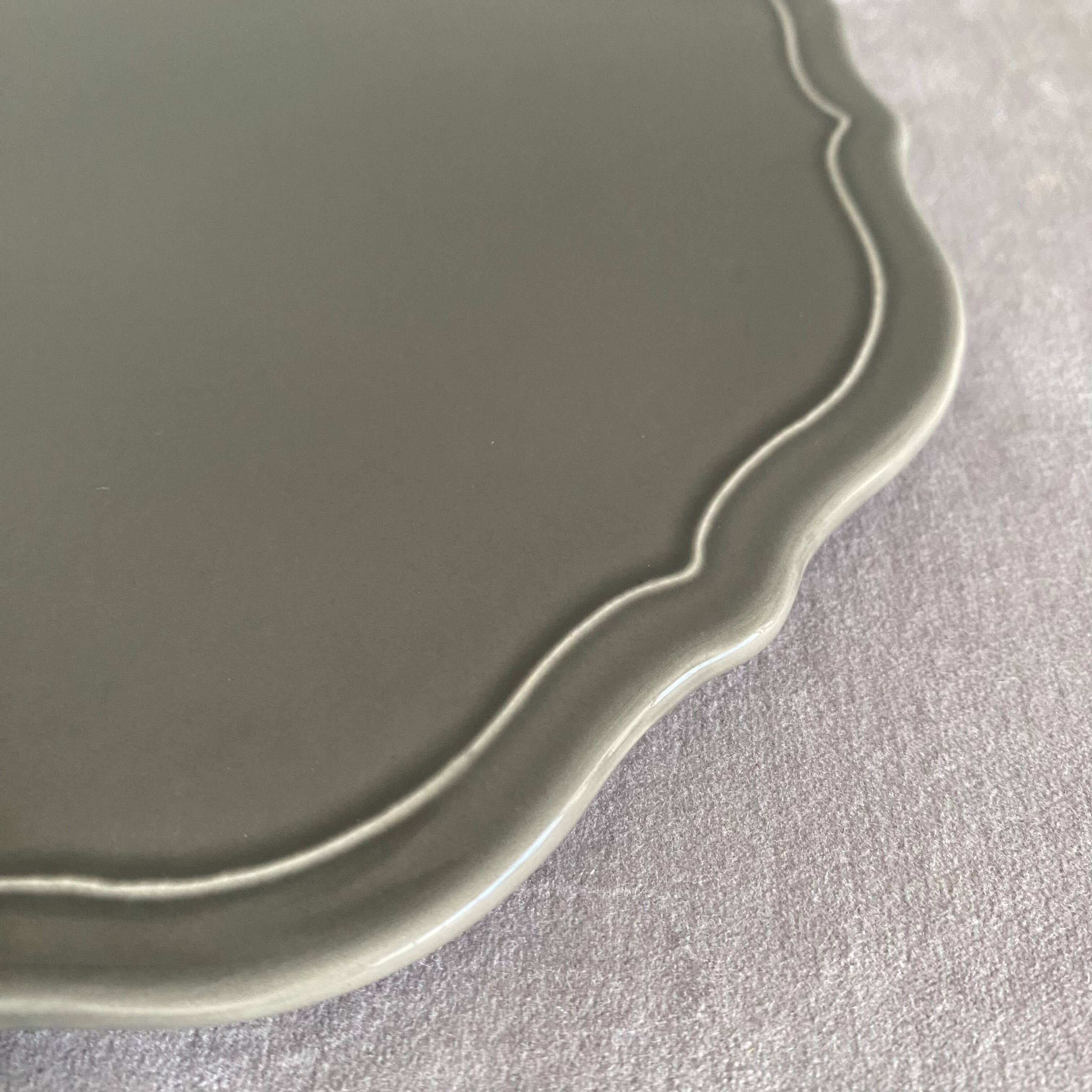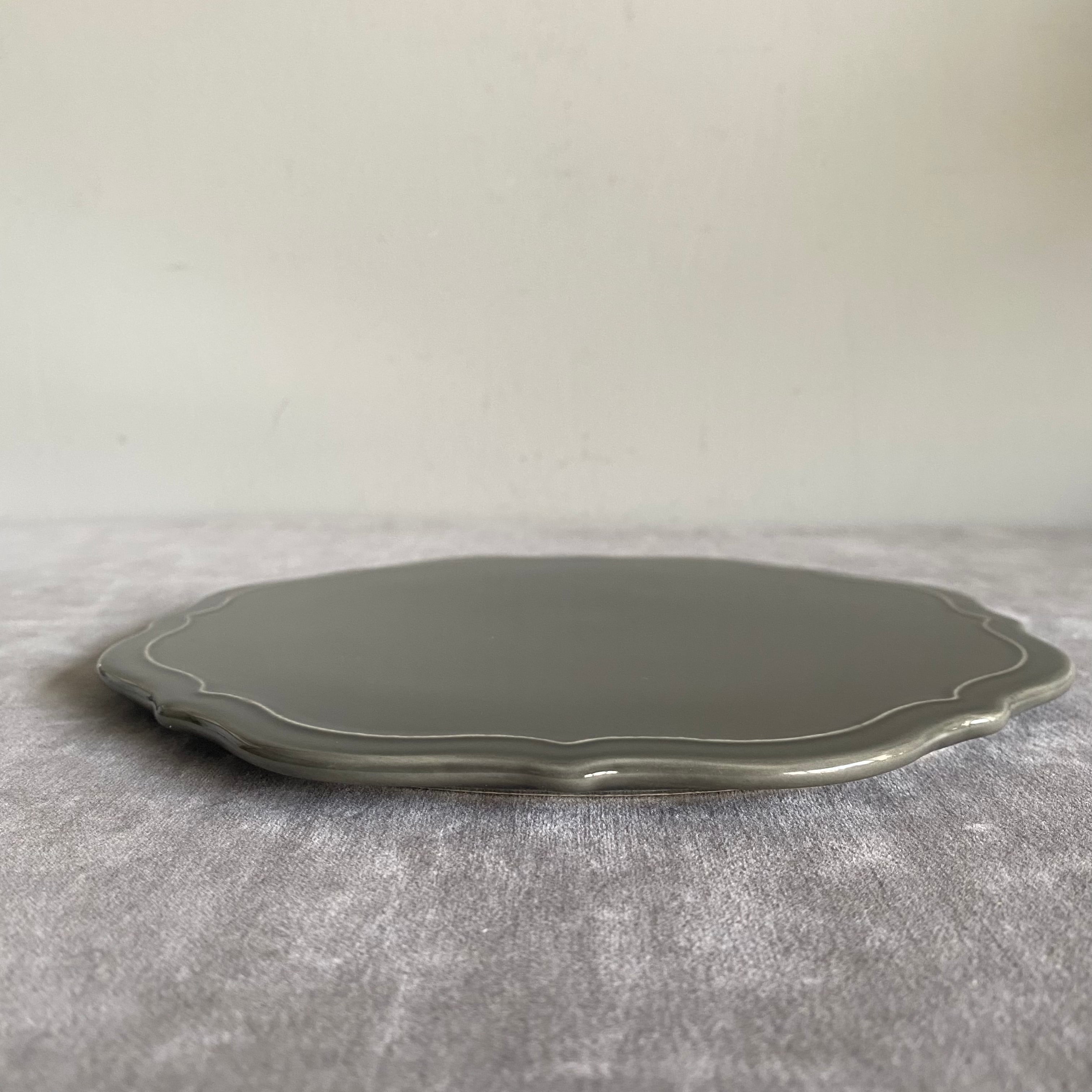 こっくりとしたグレーに白い縁取りのフラットプレート。