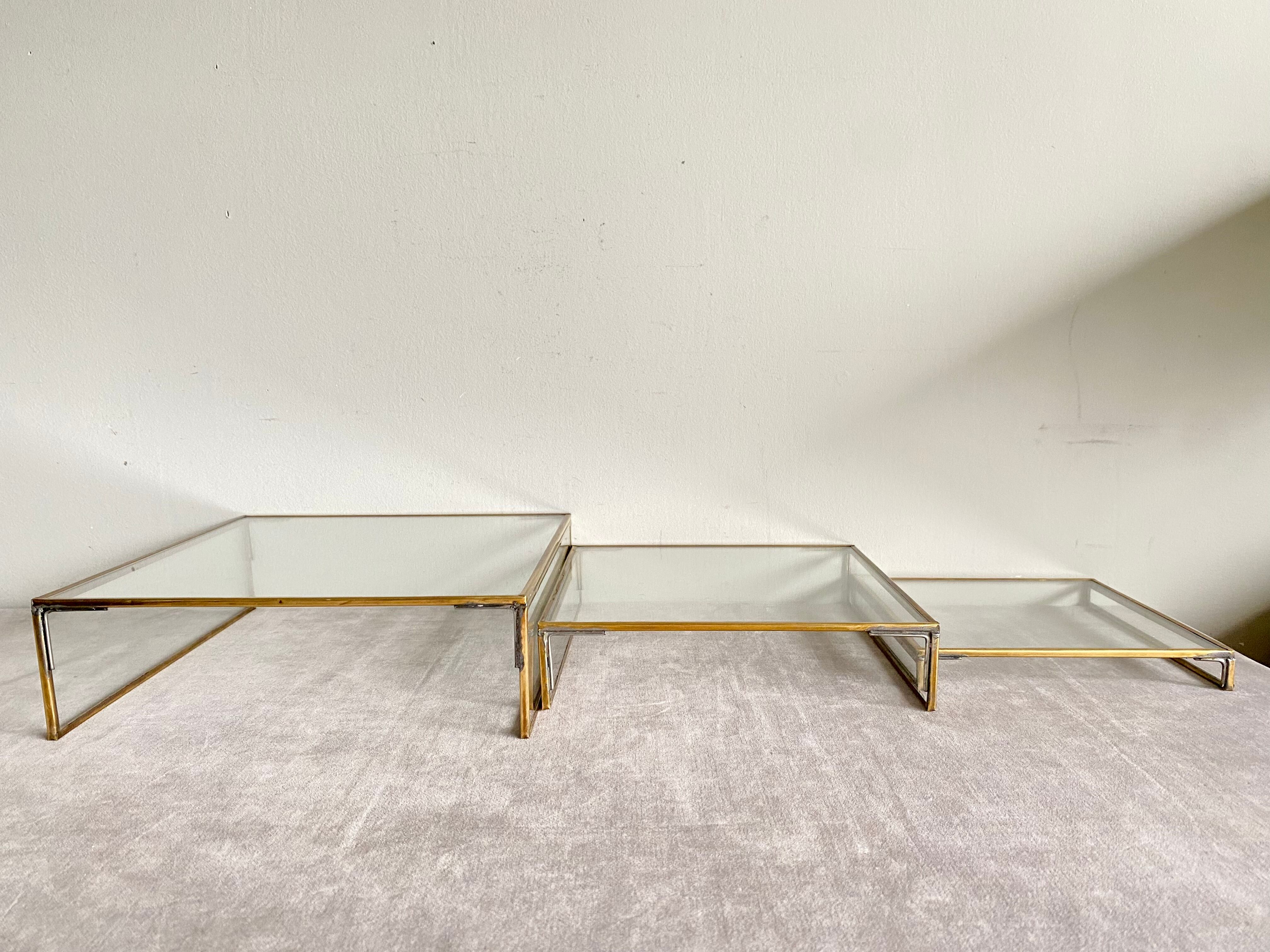 ブラスとガラスの異素材を組み合わせたディスプレイスタンド。