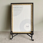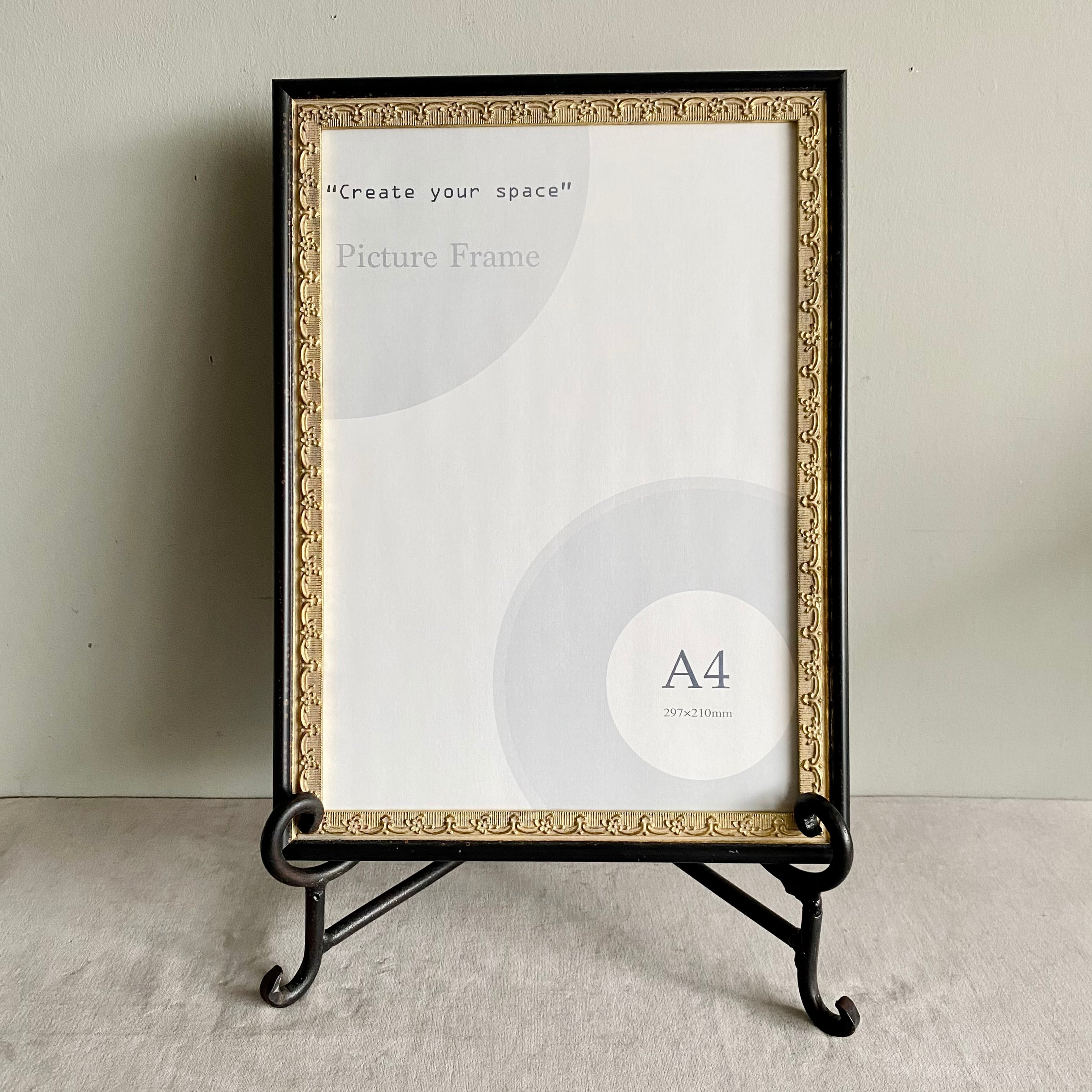 ※写真中のフレームはA4サイズ、黒いプレートはLサイズには23cmを立てていますので、大きさの参考にしてください。