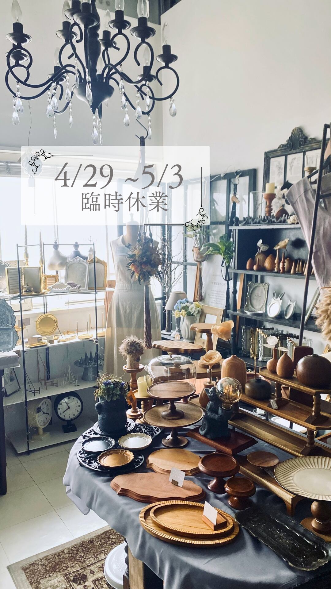 4.29㈬~5.3㈰までと、5.11㈪~5.16㈯は店舗は臨時休業とさせていただきます。