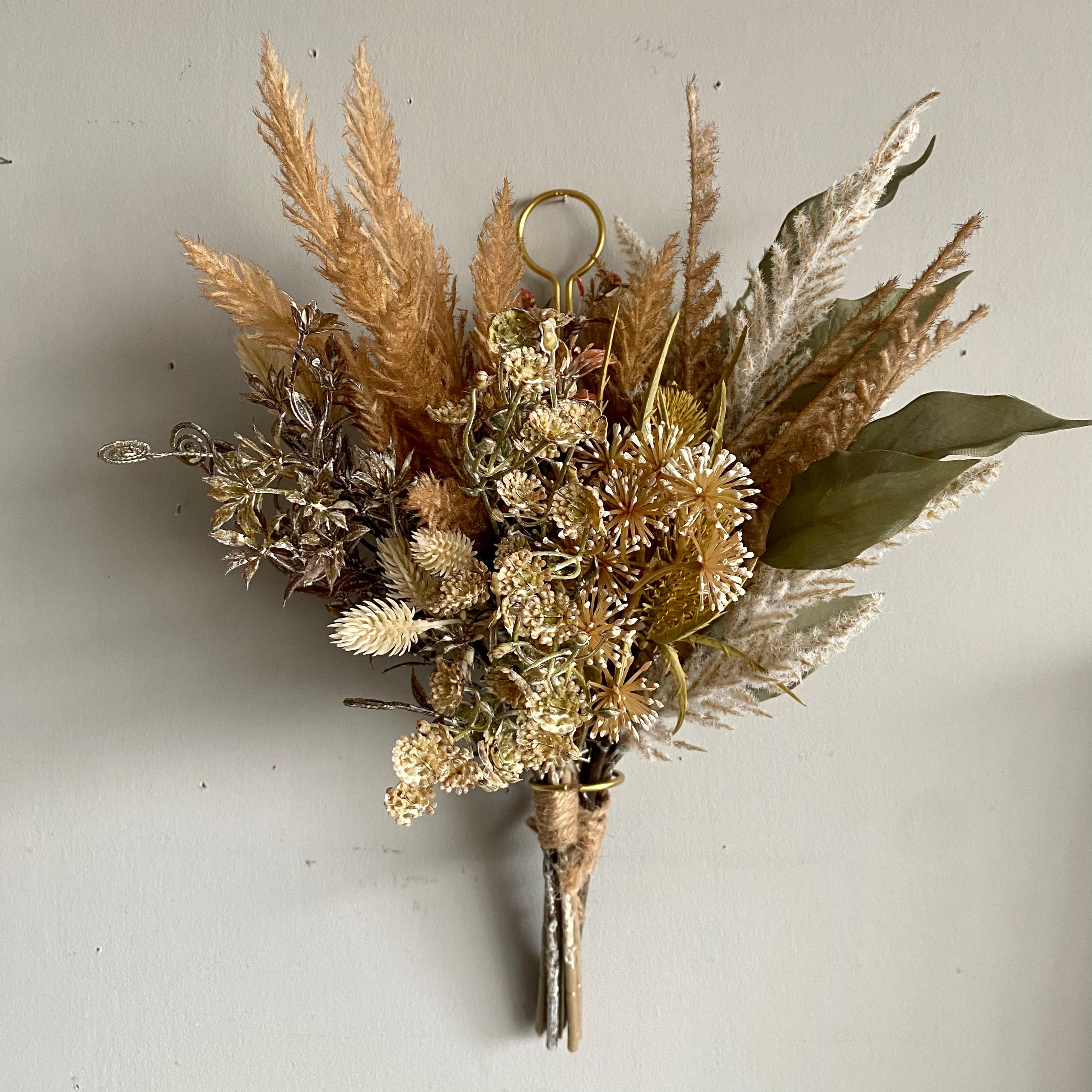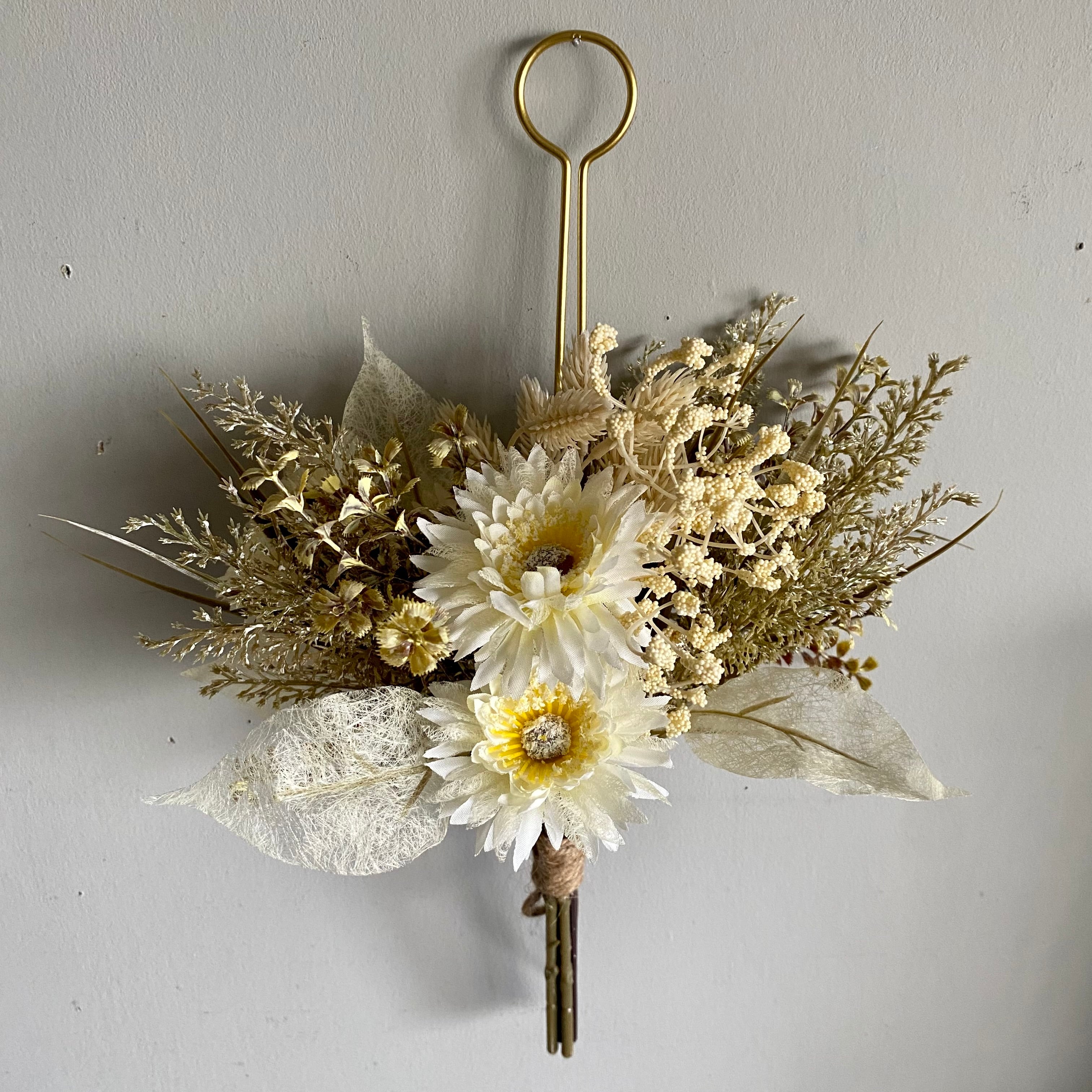 ドライやアーティフィシャルのブーケを挿して壁に吊るすことができます。