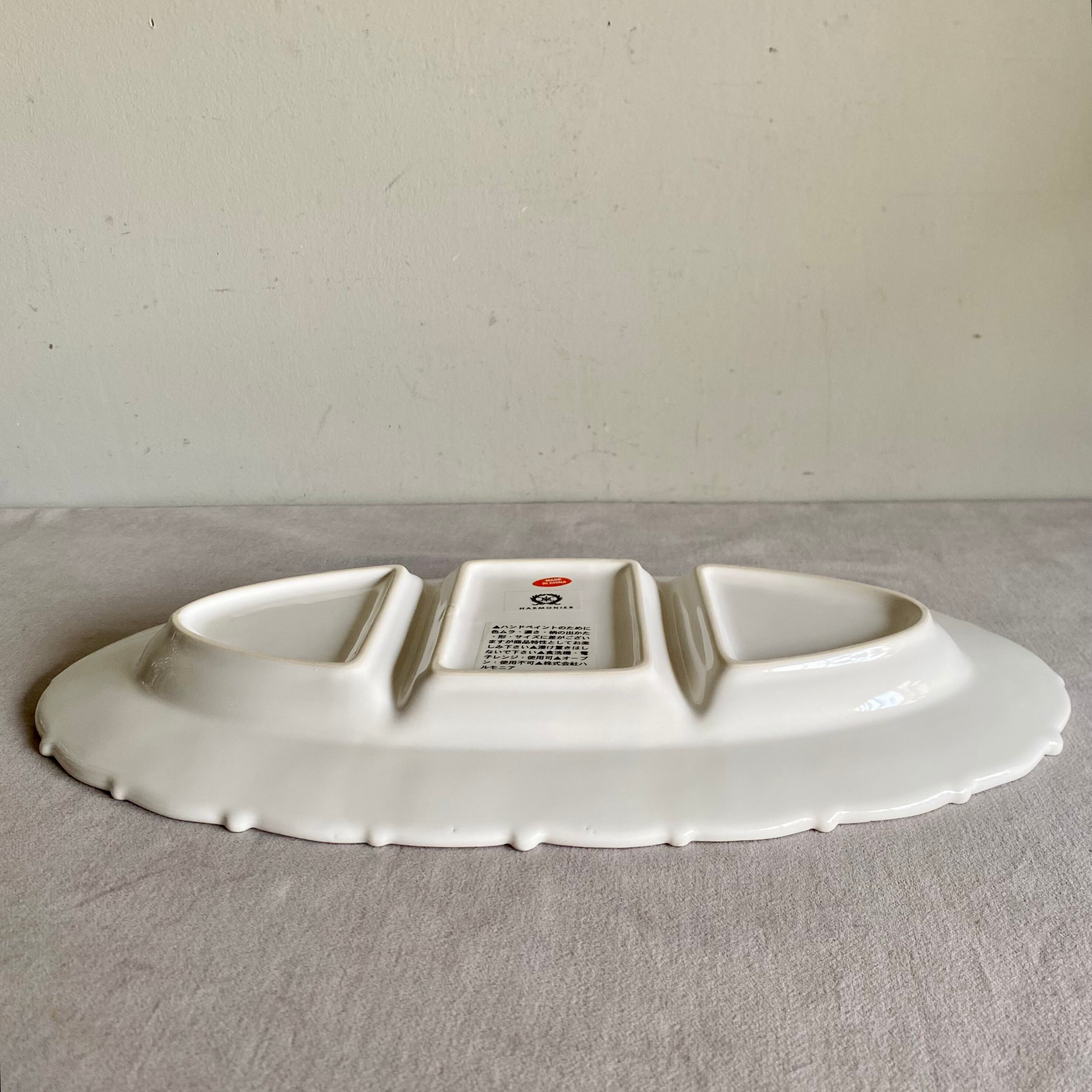 3分割の仕切りが付いて前菜やスイーツなどを綺麗に盛り付けできるプレートで、おもてなしの食卓に活躍します。